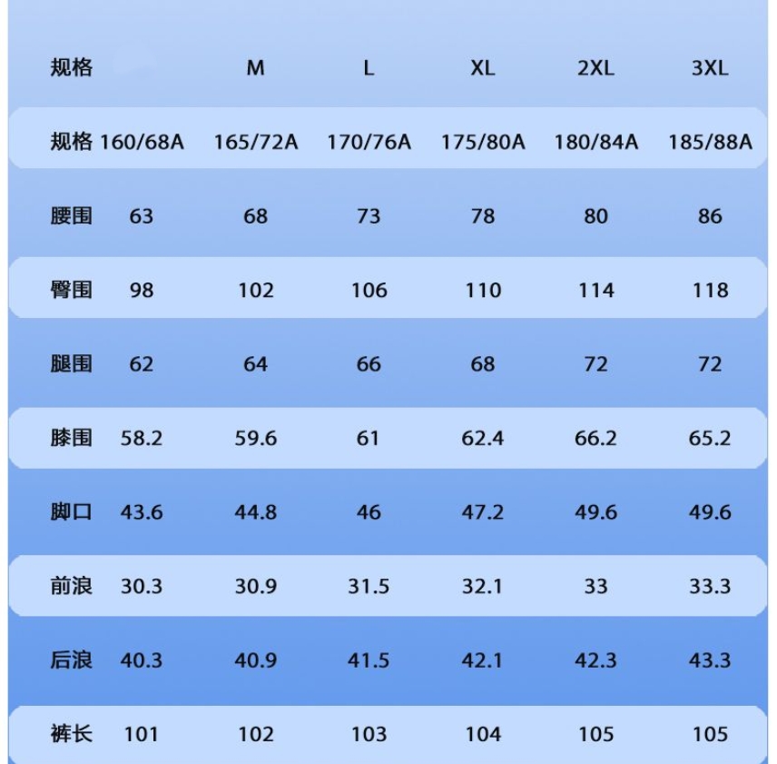 尺码 M 3XL
