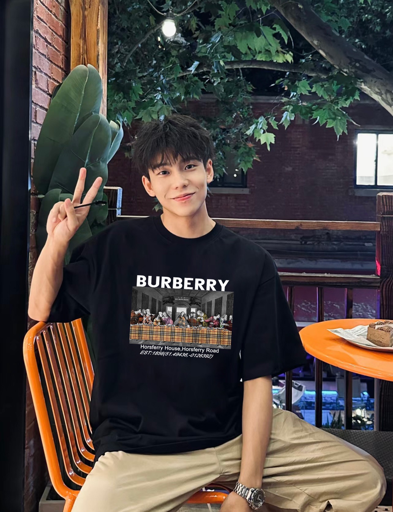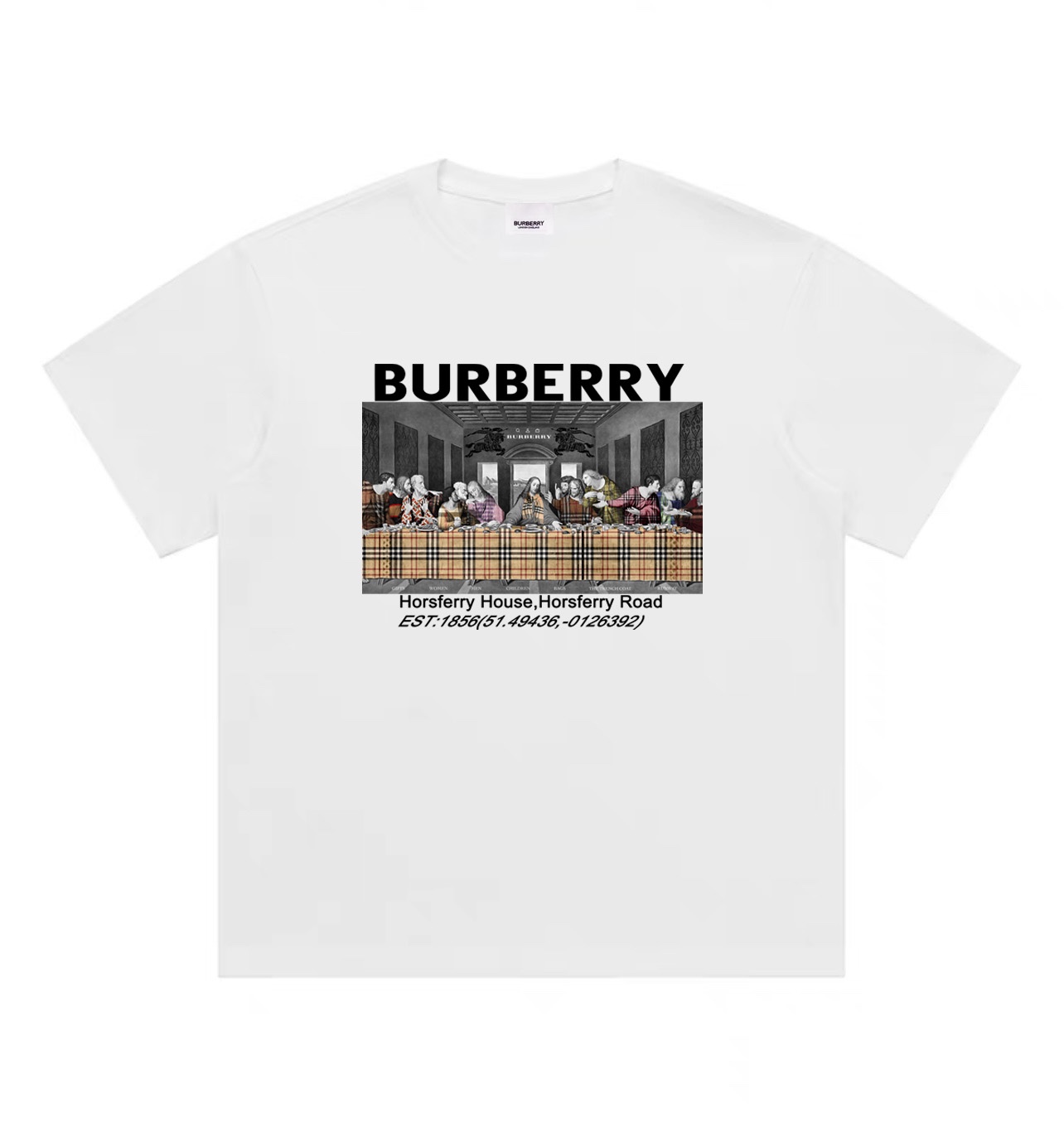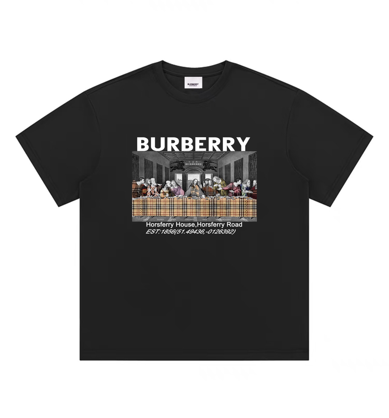 Burberry 巴宝莉最后的晚餐圆领短袖半袖T恤 面料采用260克纯棉双纱食毛面料 双线二本针压线 久洗不变形 原版定制三标 高端进口印花 随意水洗 情侣可穿 男女同款 黑色 白色 M XL M 衣长70肩宽51胸围112 L 衣长72 肩宽54胸围116 XL衣长74肩宽57胸围120