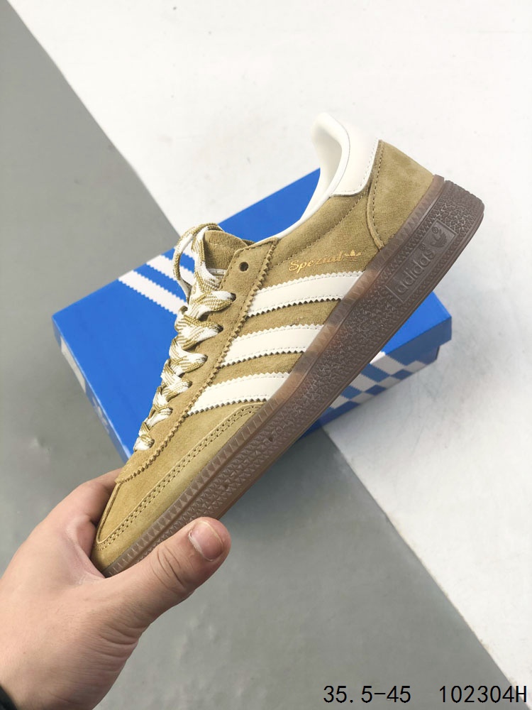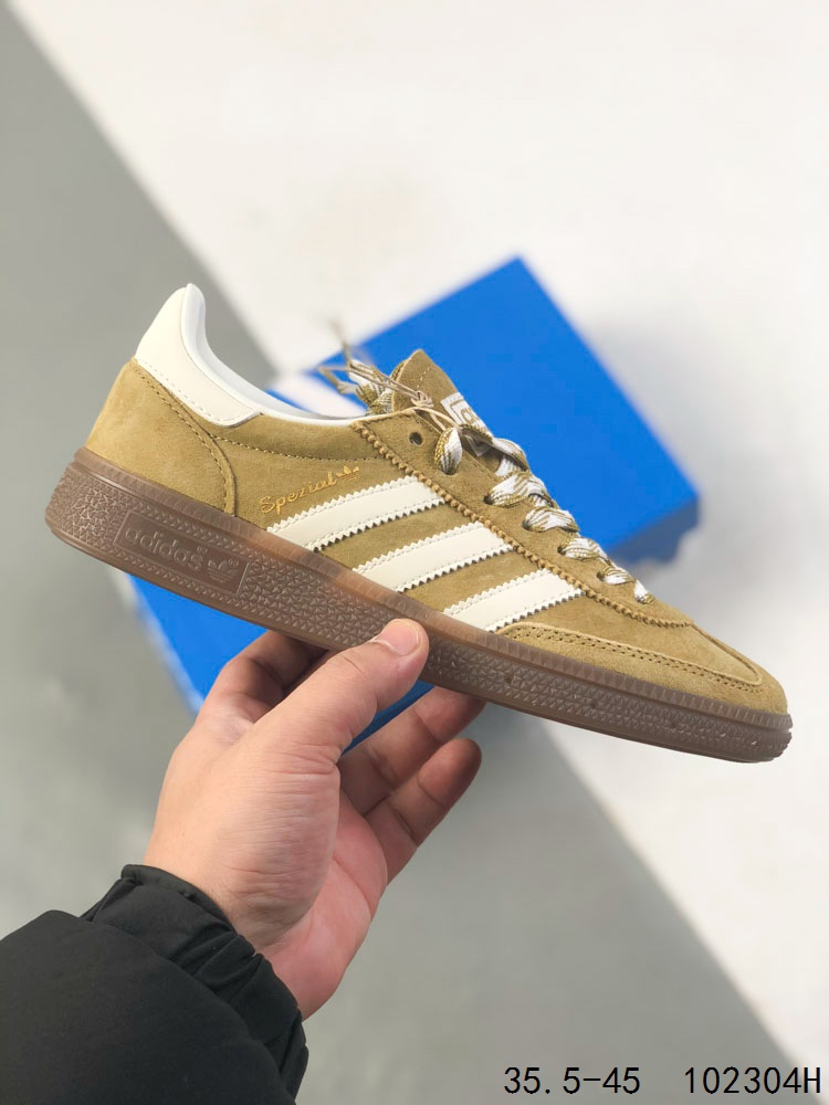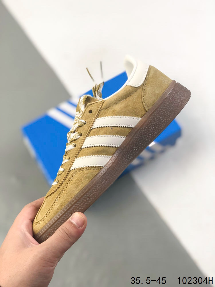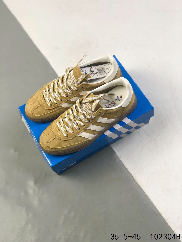 真标带半码 Adidas Handball Spezial 阿迪达斯经典款 德训复古休闲板鞋 全鞋采用反毛皮制作 牛筋耐磨大底 承载青春情怀的板鞋 经典三条杠装饰鞋侧 品牌辨识度清晰 ID 102304H