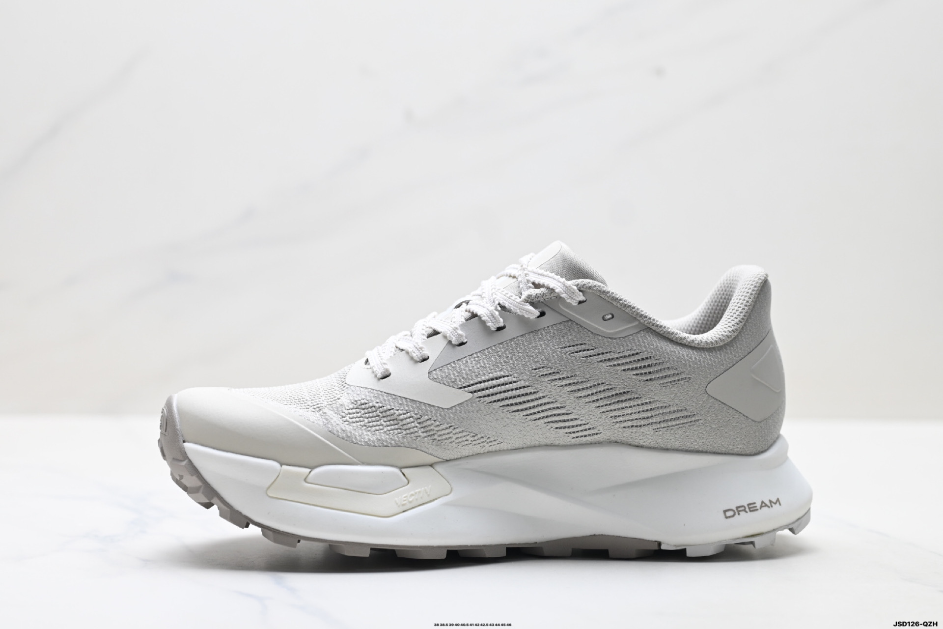 贴合性鞋舌及后跟 增强后跟和中足的贴合性 一体式防沙鞋舌还可有效抑制泥沙碎石落入鞋内