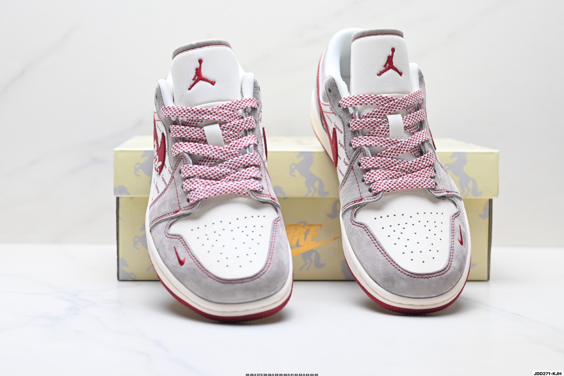 原厂皮料 原档冲孔鞋头 正确满胶鞋垫 四线拉帮 原厂织唛标 鞋舌高弹海绵填充