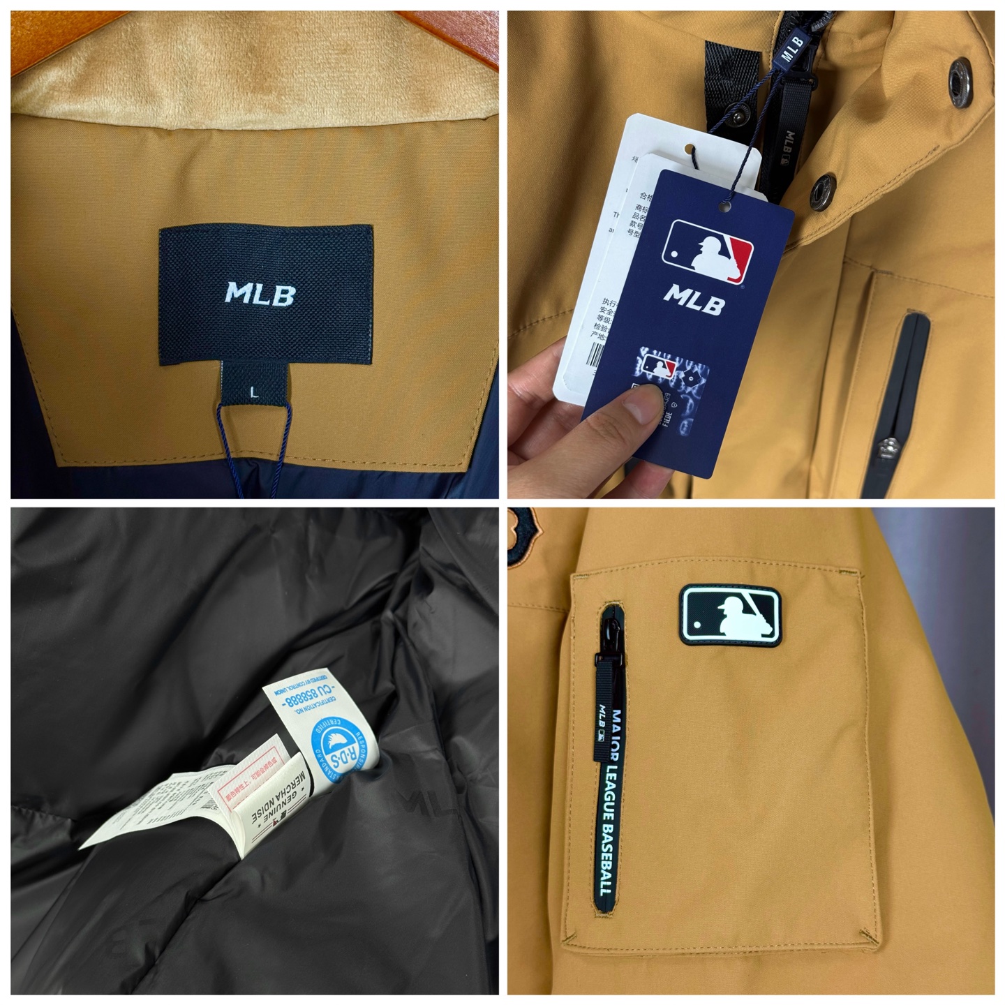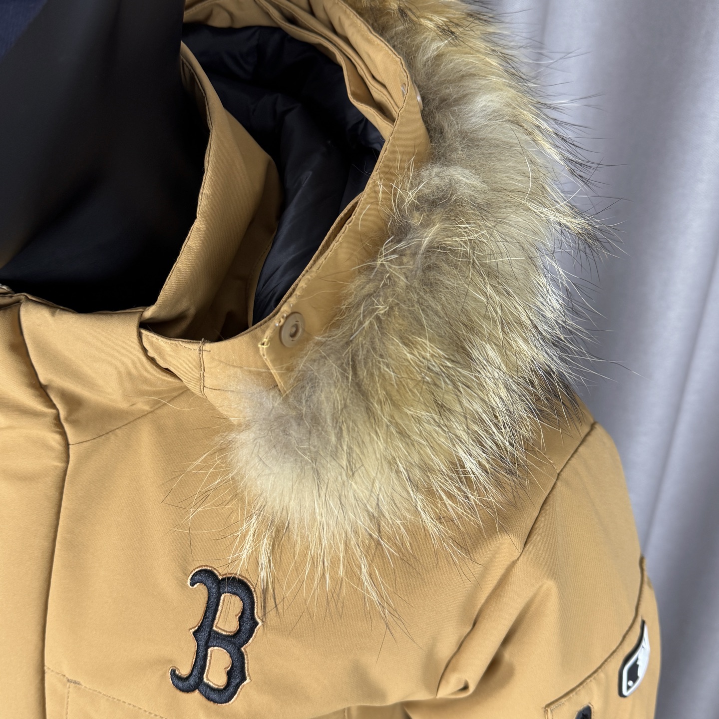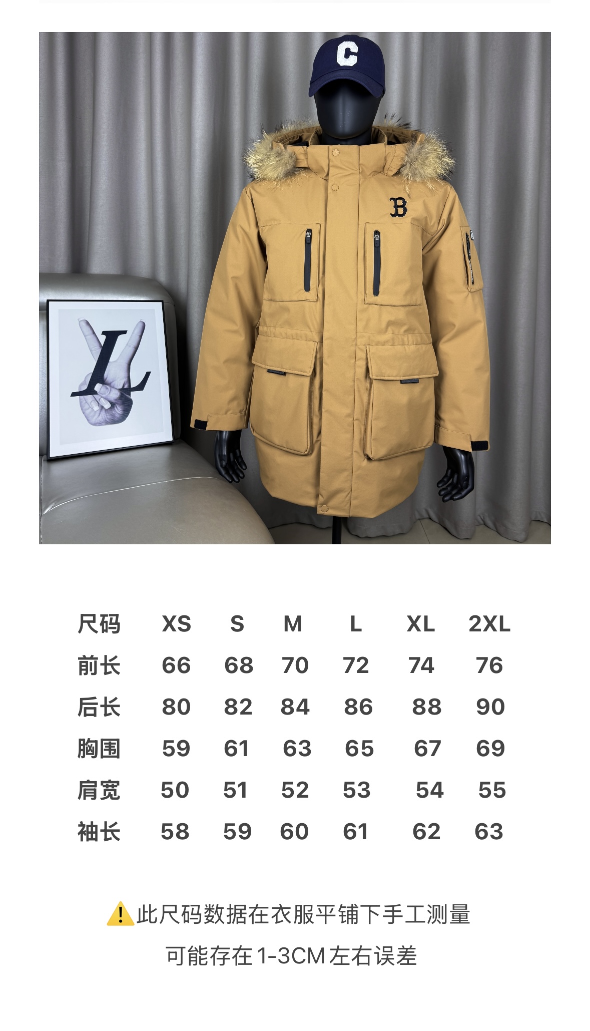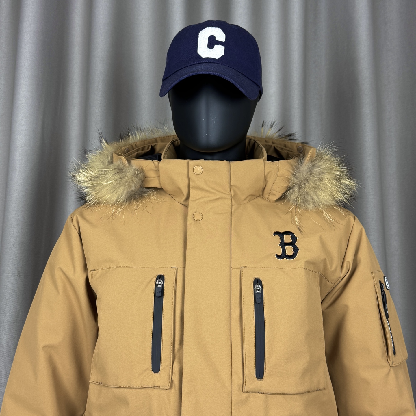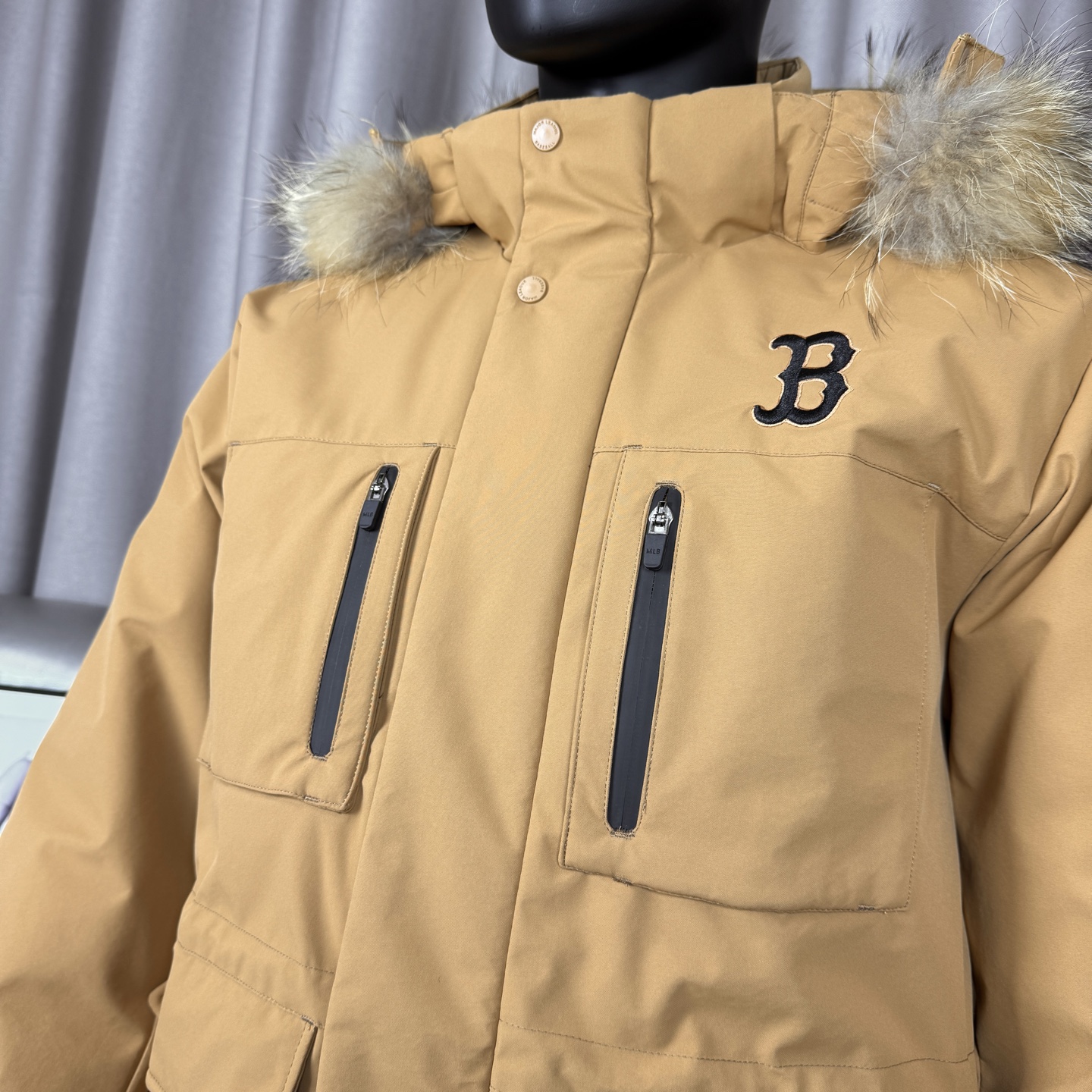 𝑴𝒍𝒃 𝑴𝒐𝒏𝒐𝒈𝒓𝒂𝒎 纽约洋基队工装风大毛领派克羽绒服张凌赫同款多口袋拉链中长款可拆卸连帽外套男女同款