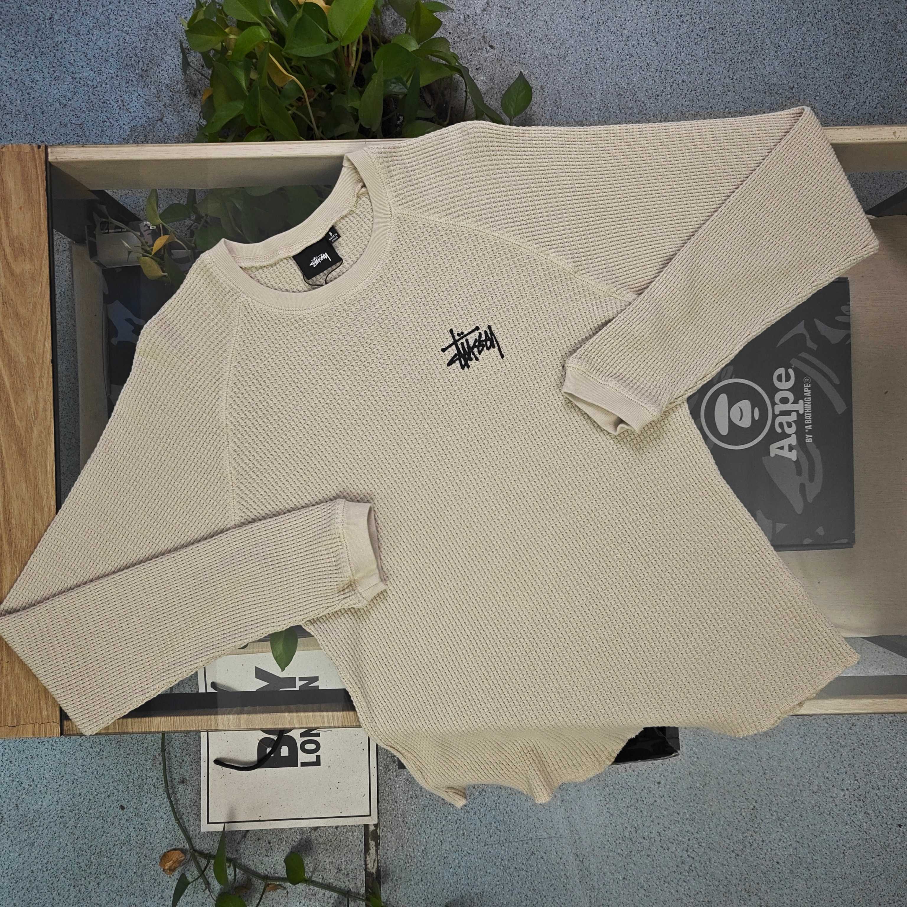 2025秋冬新款Stussy斯图西经典字母图案logo提花情侣华夫格长袖 长袖T恤卫衣 定制纱线 上身百搭 高克重不起球 小码克重600以上 秋冬内搭外穿无敌单品必入款 超高克重定制级羊毛混纺 定织高克重纱线 拼接处为手工定做辅料 上身垂感十足 版型到位细节满满 前后呼应大幅满身的提花 与衣服形成撞色 构建了stussy的品牌文化 涵盖了两侧袖子到大身的连体图案 视觉效果十分的震撼 拥有不羁个性的街头风格 也有夸张的时尚范儿 外穿内搭都能凸显stussy的浪潮 冬季百搭不可或缺 男女同款