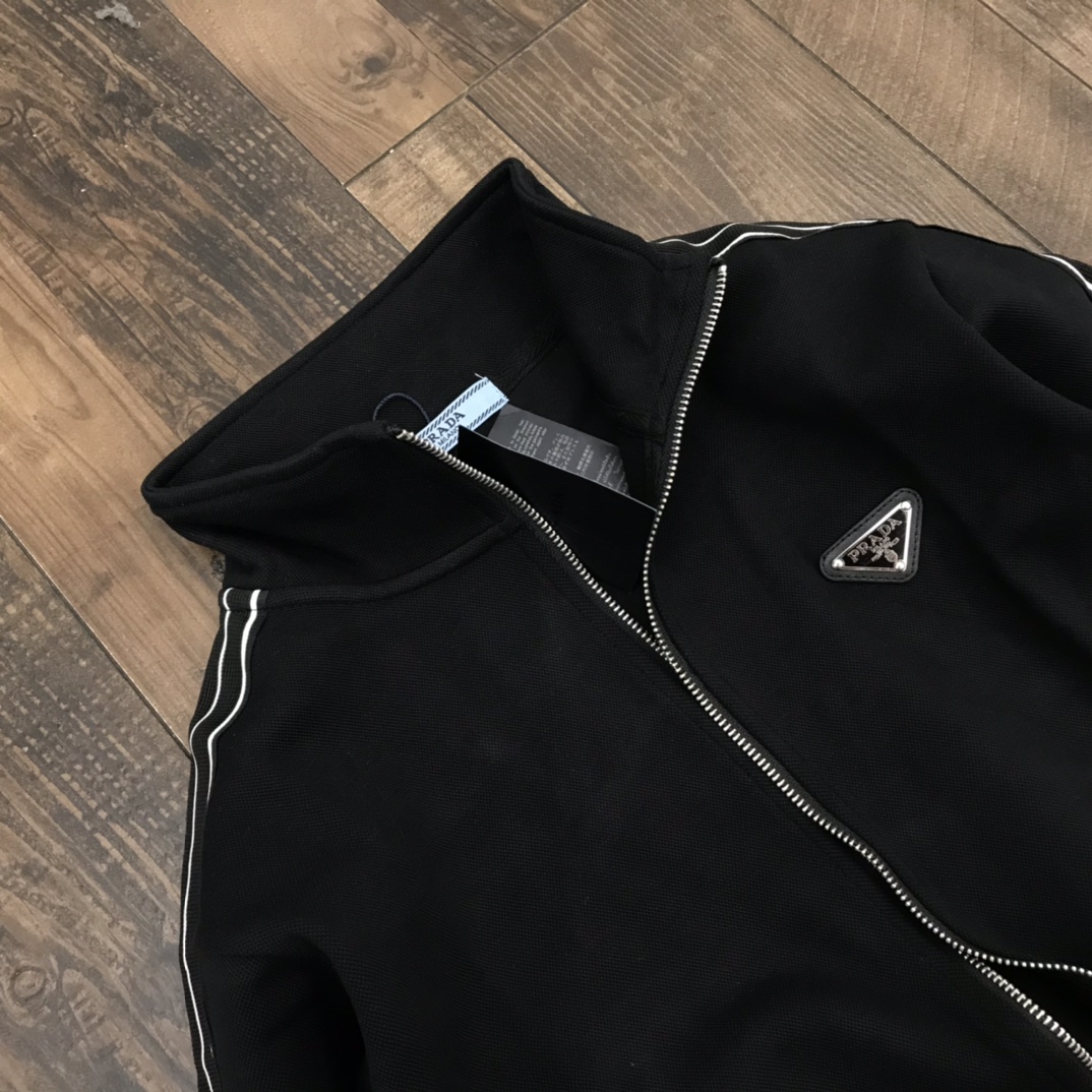 Prada情侣款侧边织带高端外套 整妆