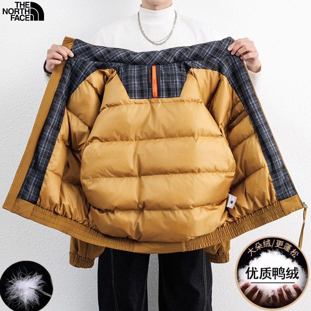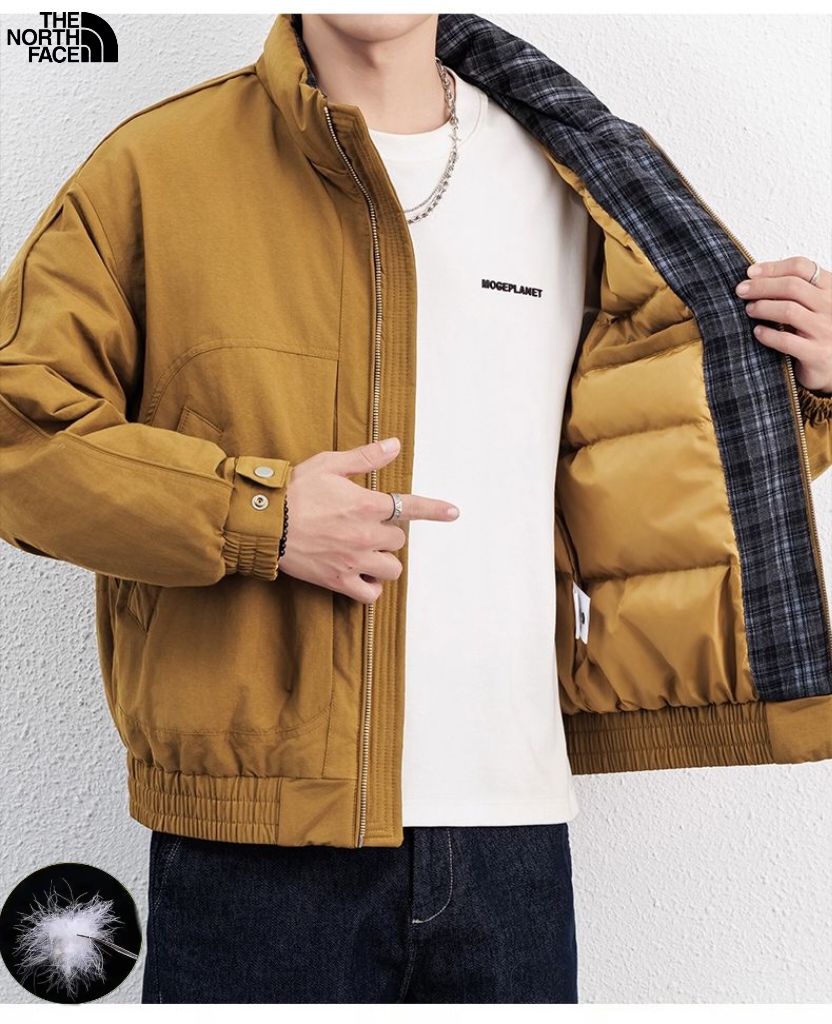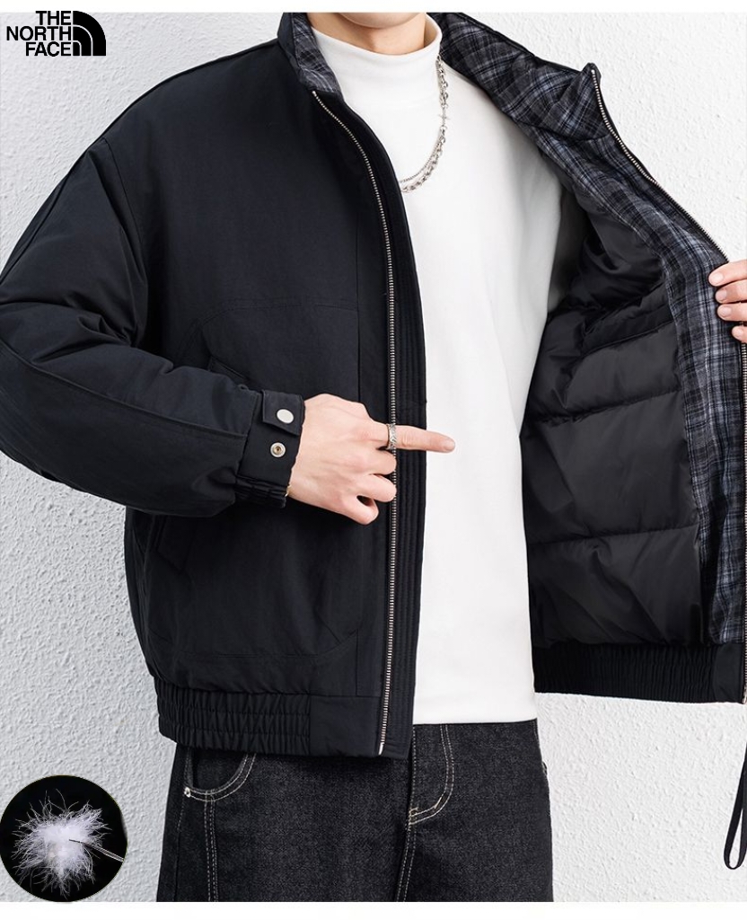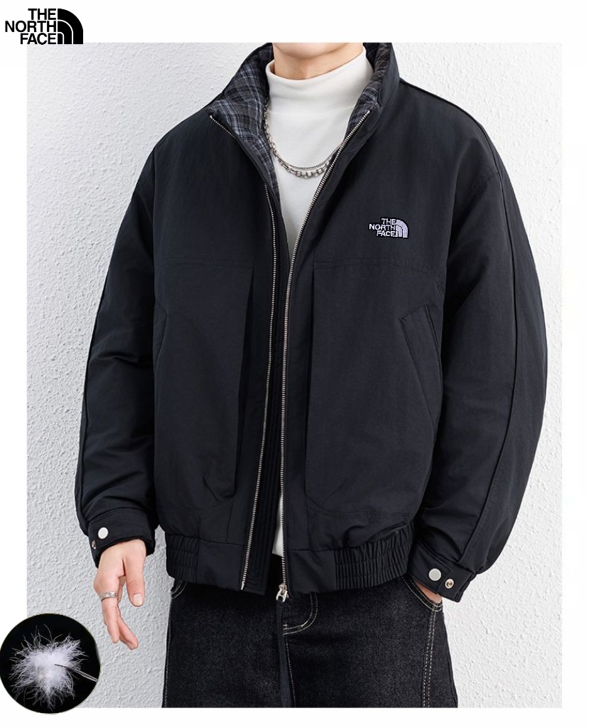 北面The North Face冬季新款 男士撞色拼接领中古风羽绒立领格子领潮牌羽绒服 男士羽绒外套