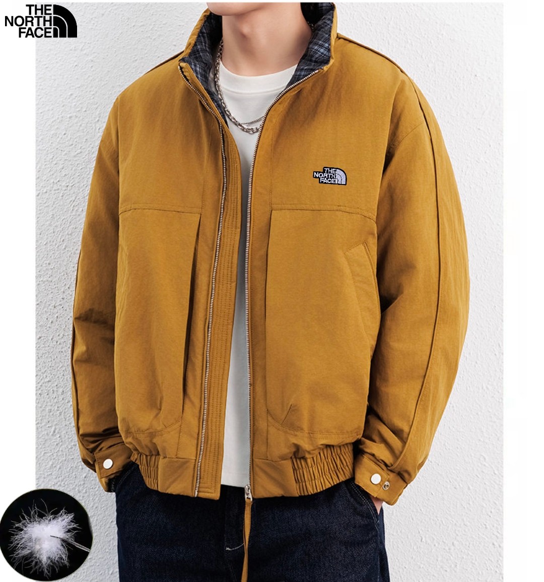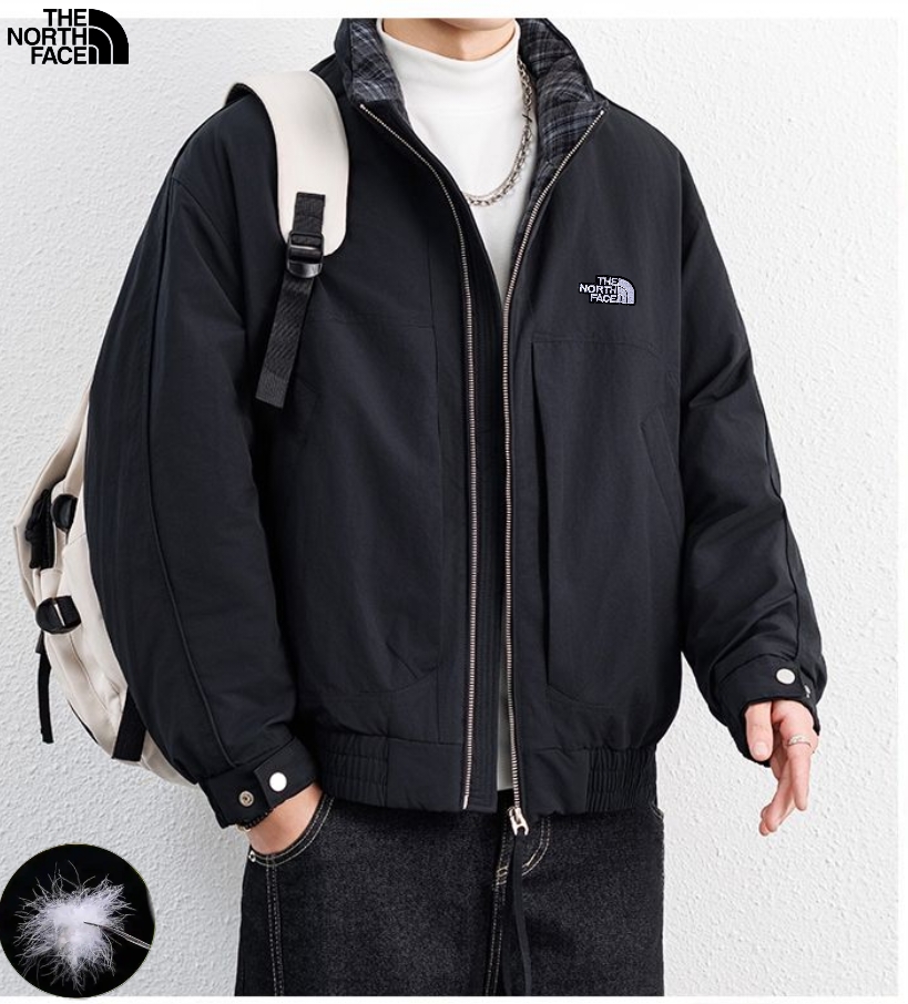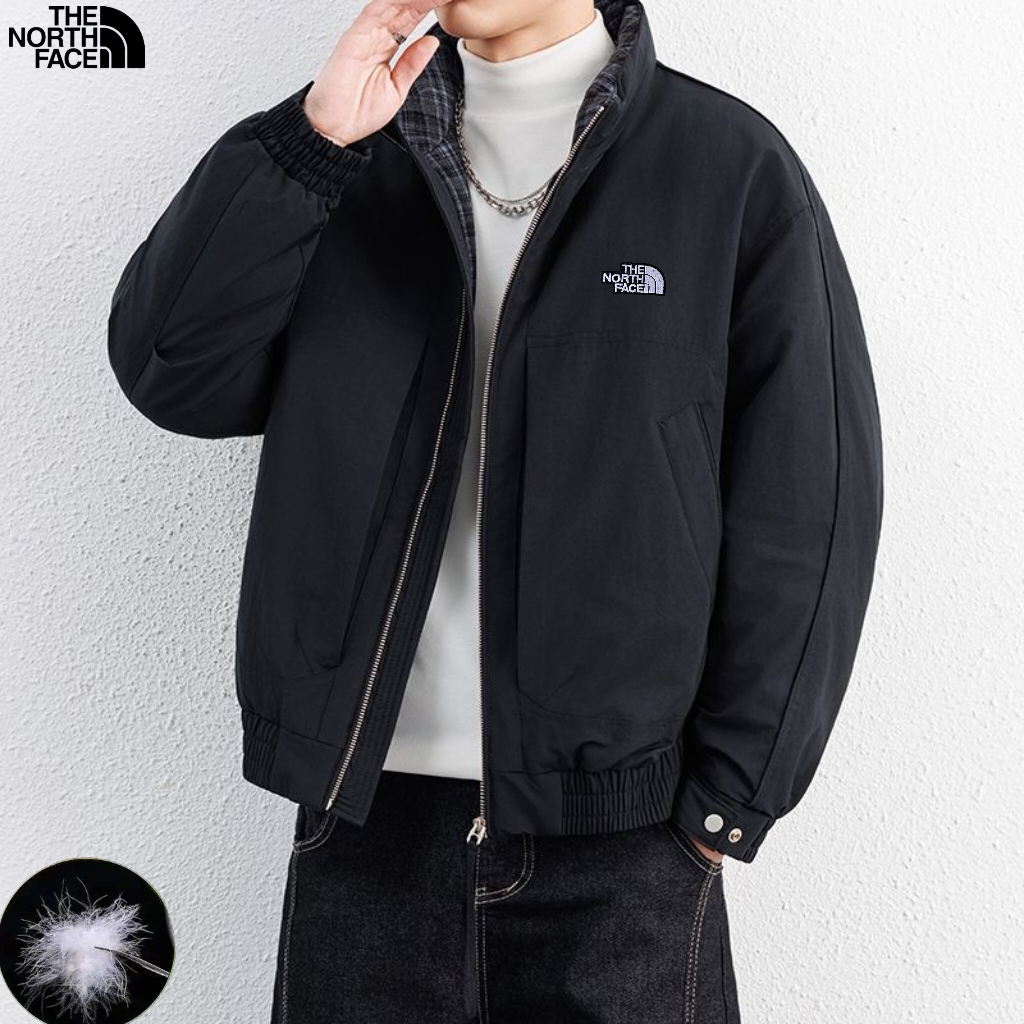 北面The North Face冬季新款 男士撞色拼接领中古风羽绒立领格子领潮牌羽绒服 男士羽绒外套