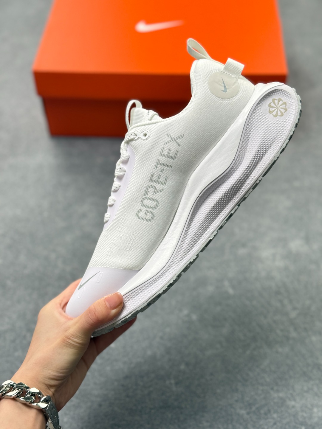 细节设计 采用Flyknit材质鞋面 结合Gore Tex防水材质 既保证了鞋子的轻盈感 又具备良好的防水性能 同时 鞋身可能带有反光细节 提升在低光照环境下的可见度