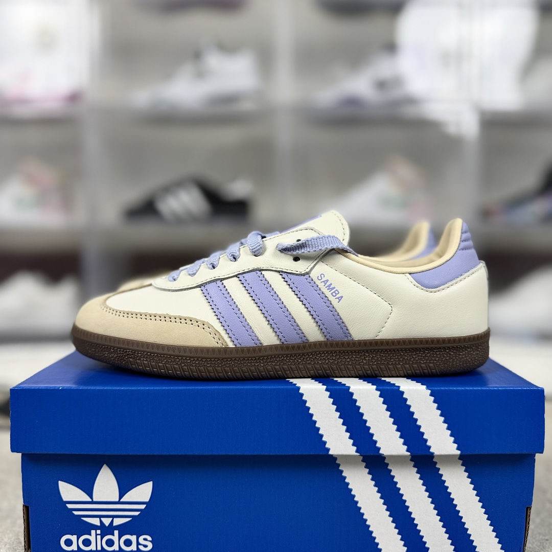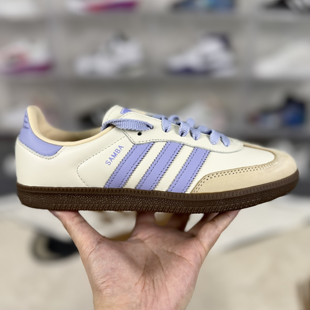 adidas originals Samba 舒适 圆头系带 防滑耐磨 低帮 板鞋 女款 星黛露米紫色 德训鞋