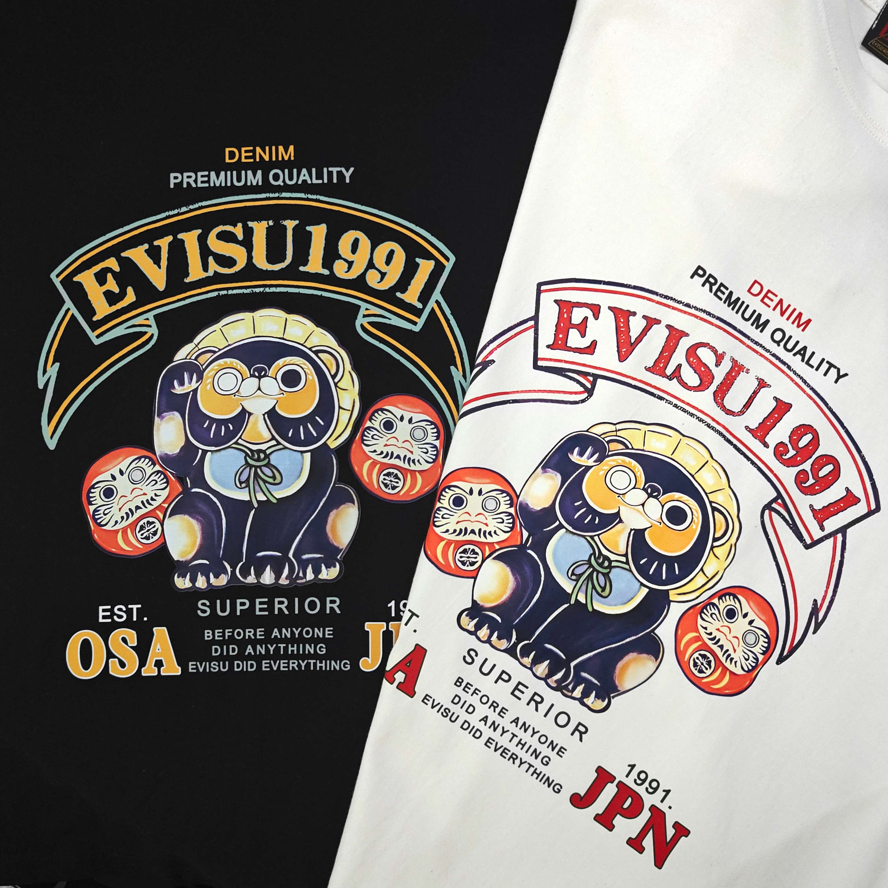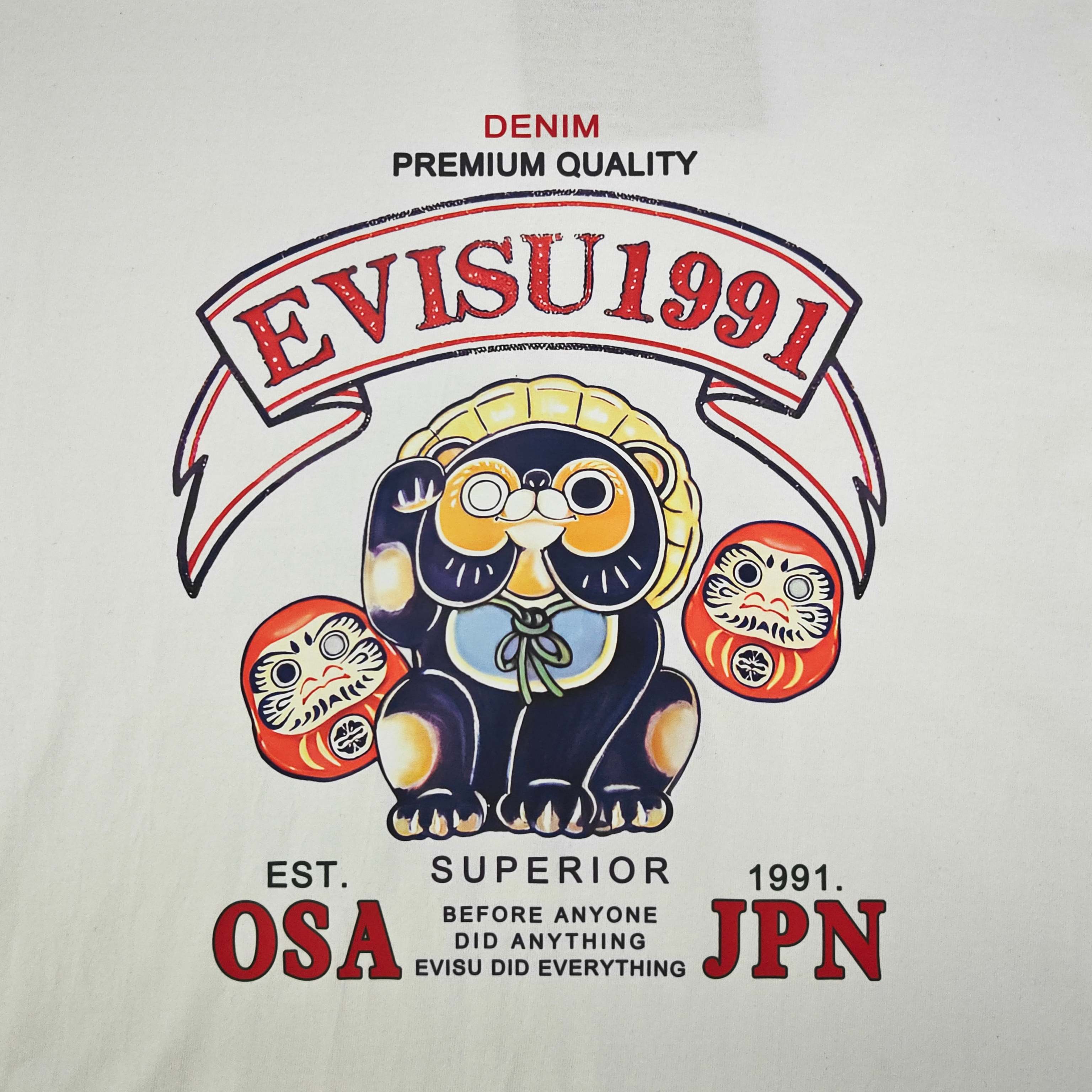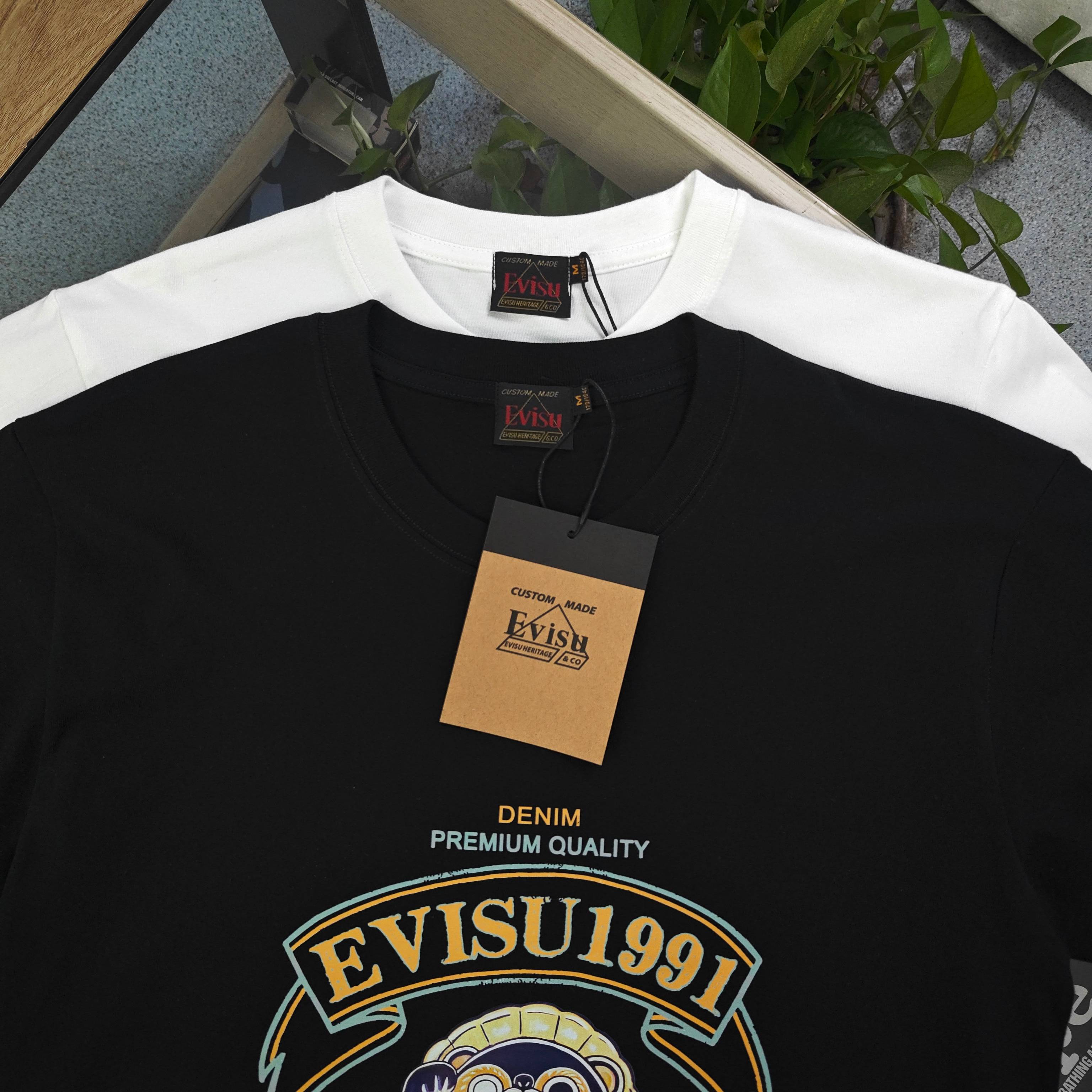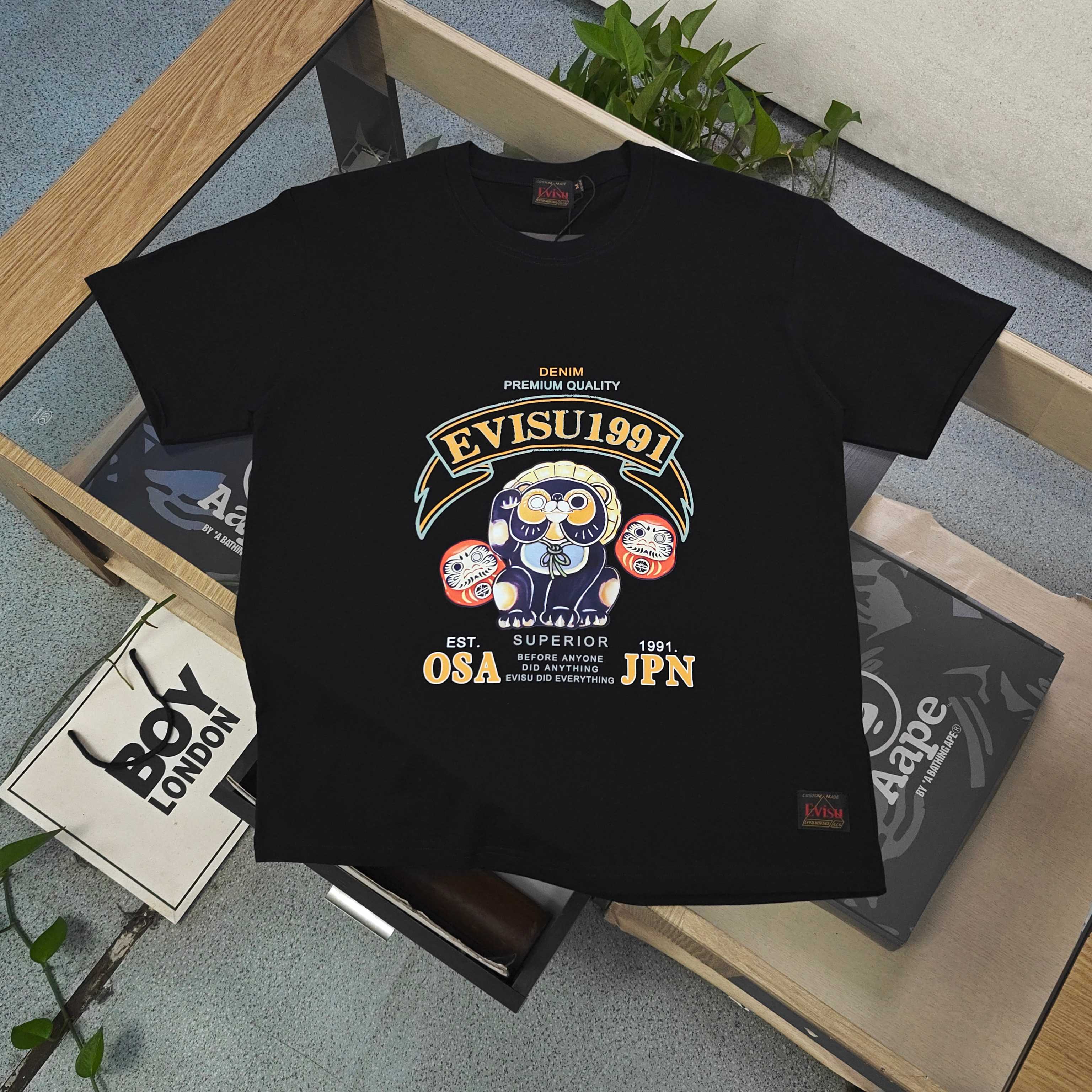 2025新款Evisu福神蓝色招财猫不倒翁达摩图案logo字母印花休闲情侣短袖T恤 经典永远不会过时 人手必备款 230g纯棉精梳棉不起球不起毛 上手质感绝对可对比 环保进口印花浆料 质量保证 原厂面料 定制定染 包浆印刷环保不开裂 欢迎对比质量 男女同款