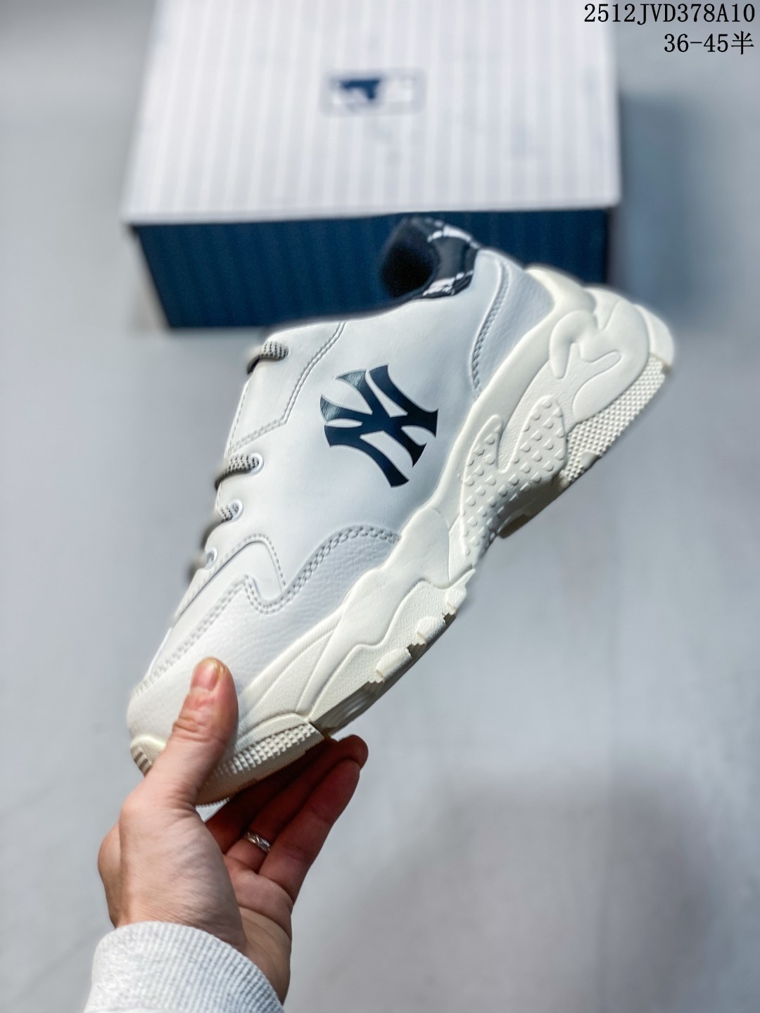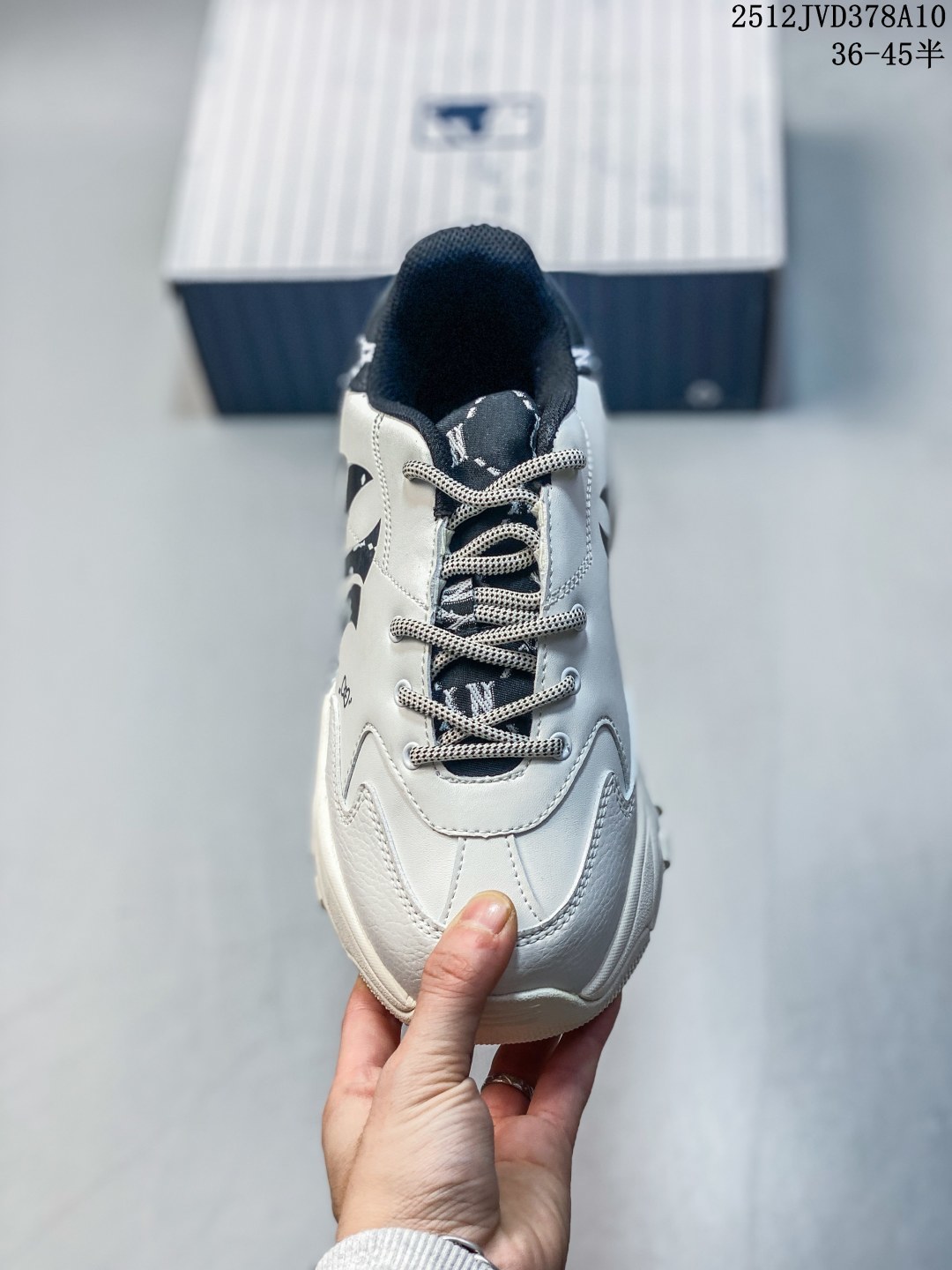 公司级Korea韩国限定发售 NY美国榄球洋基队限定 x MLB Big Ball Chunky Mesh 厚底老爹联名系列低帮网织轻量休闲运动慢跑鞋 网眼象牙白黑NY印花