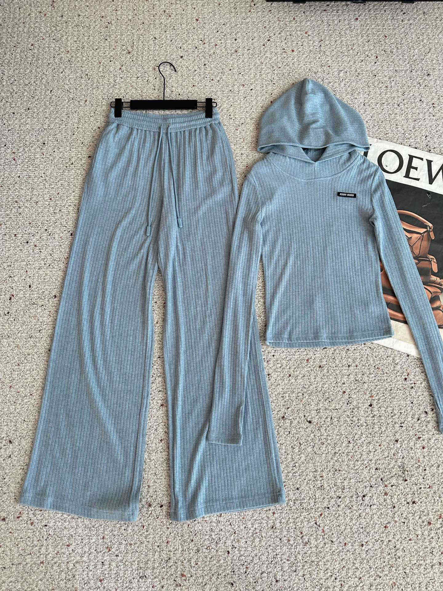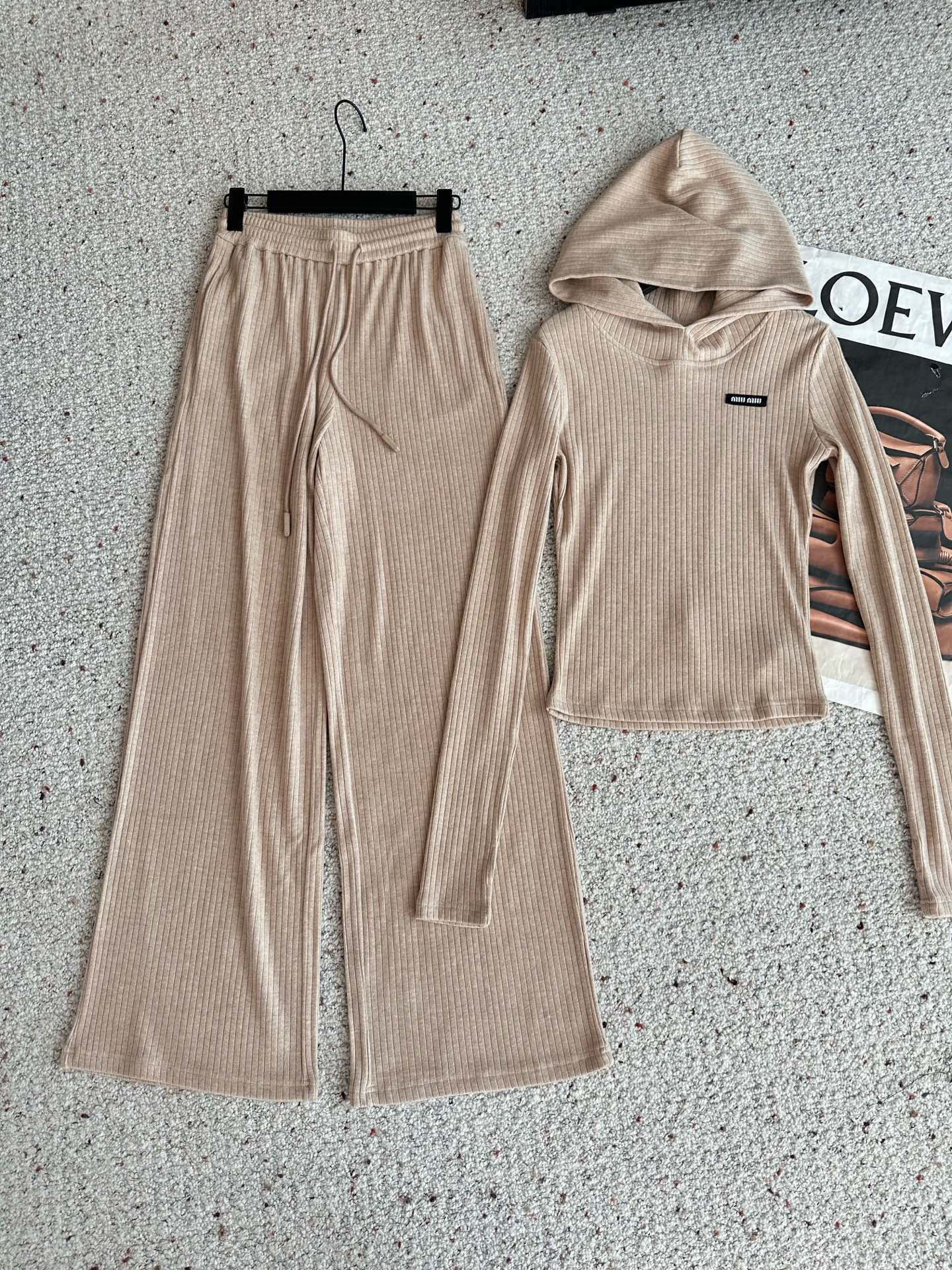 165126499 - Miumiu缪缪定制字母小标修身连帽上衣抽绳松紧腰长裤套装 355030