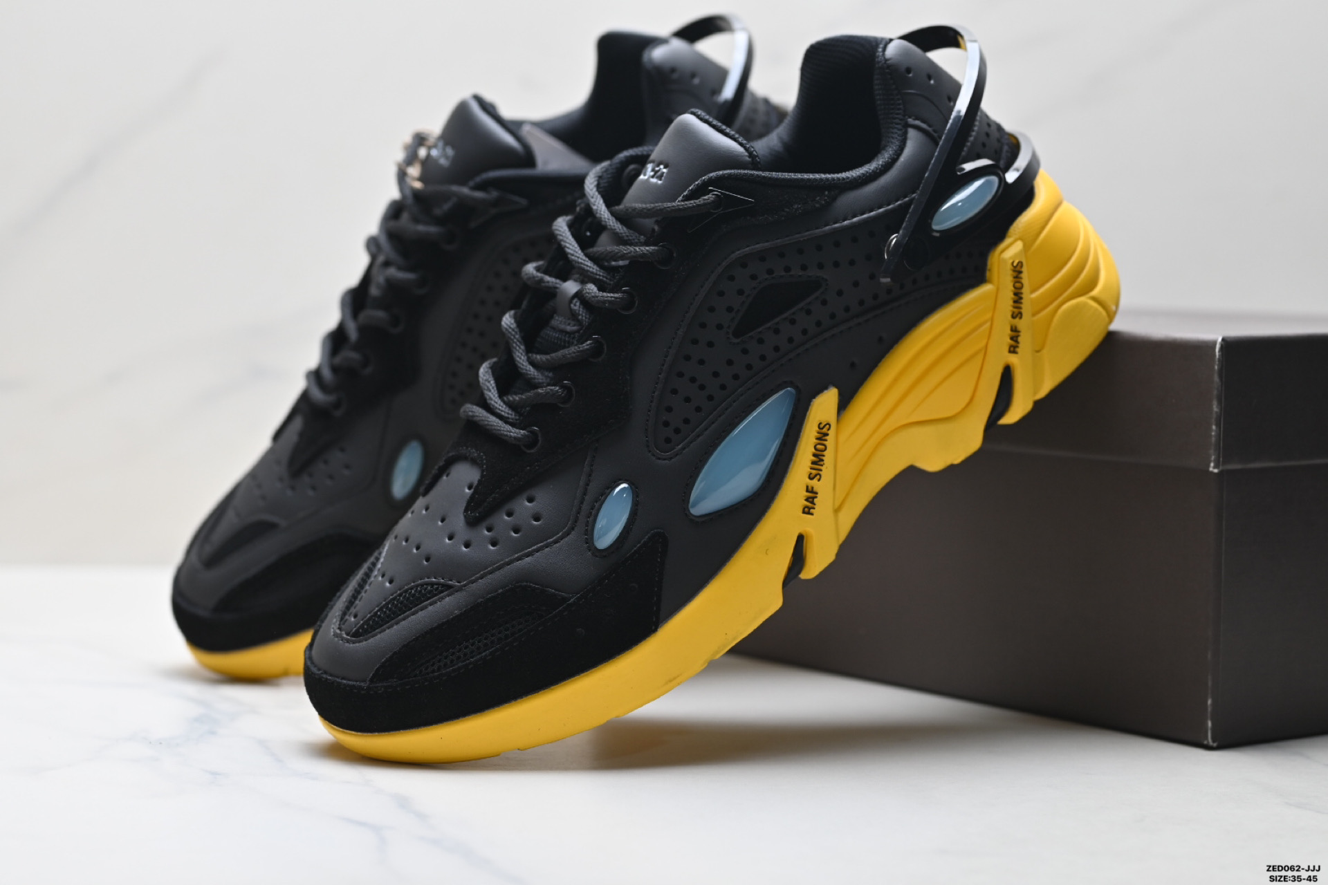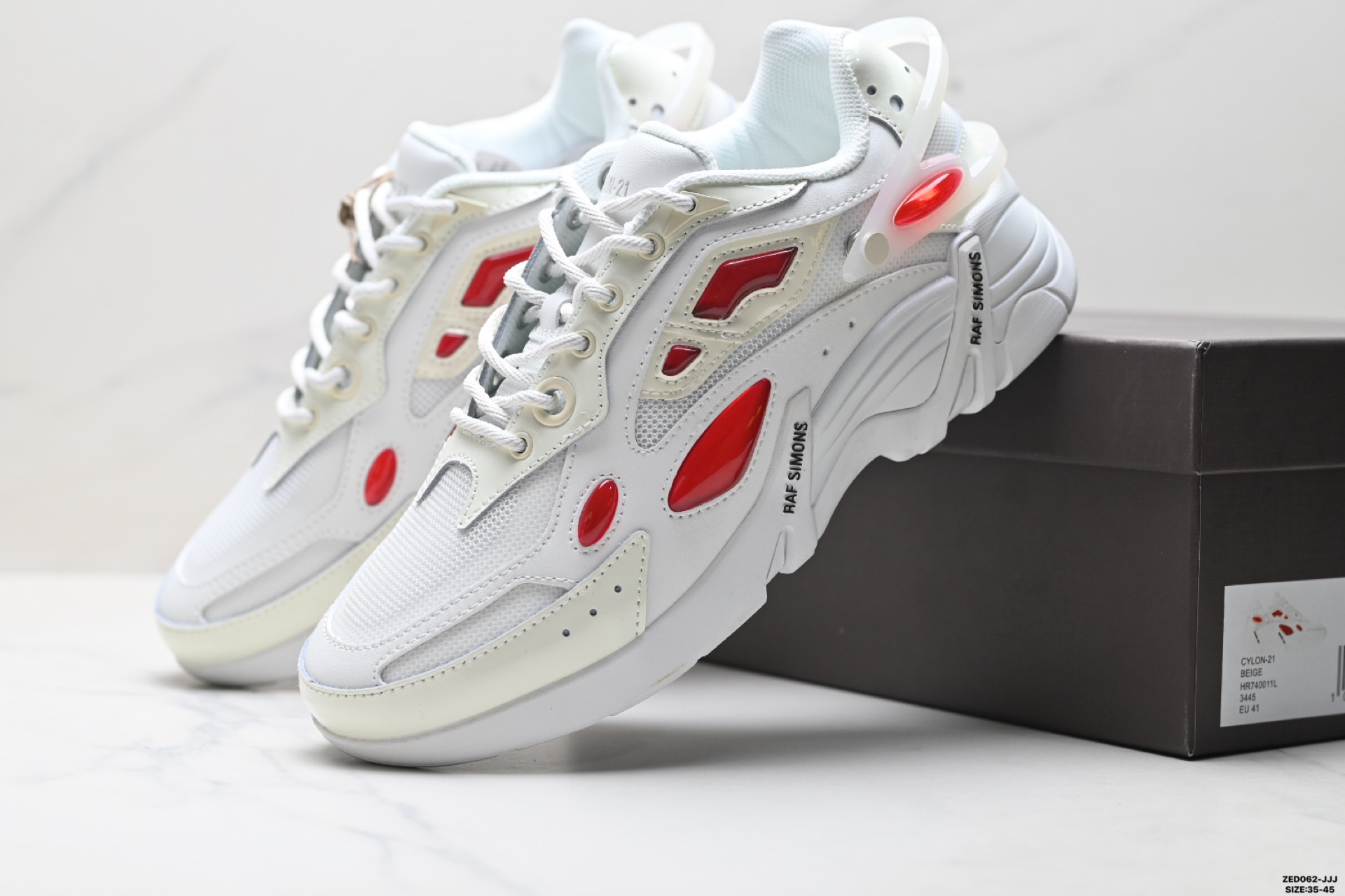 公司级RAF SIMONS CYLON 21 潮流运动 织物皮革 圆头系带 低帮休闲鞋 采用光滑皮革 网眼和绒面革制成 饰有橡胶细节 具有系带封口 圆头款式 织物衬里和带凸起徽标的橡胶鞋底 鞋舌上的印花和鞋跟处的可互换塑料配件完善了设计 货号 HR740010L 3301 ID ZED062 JJJ