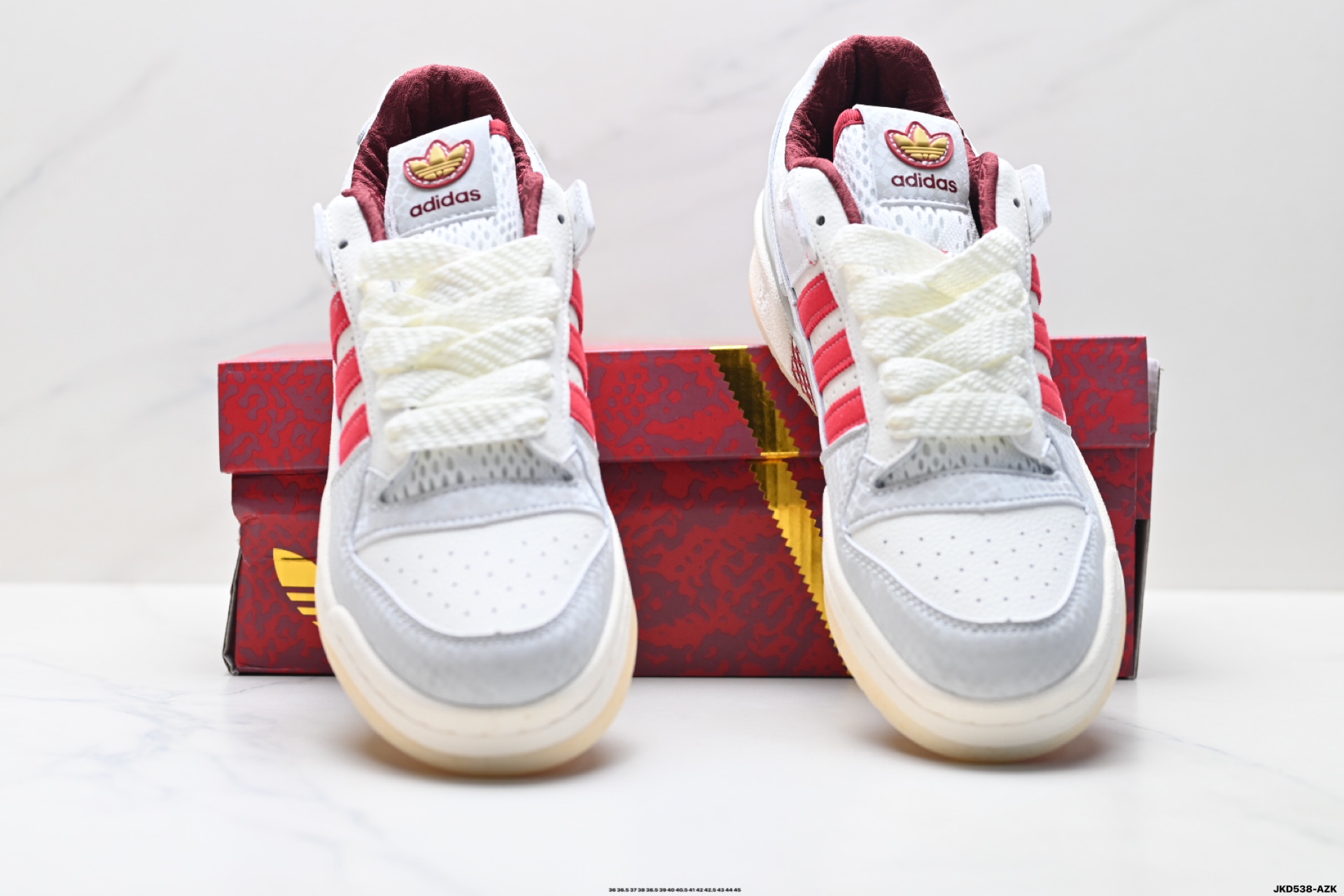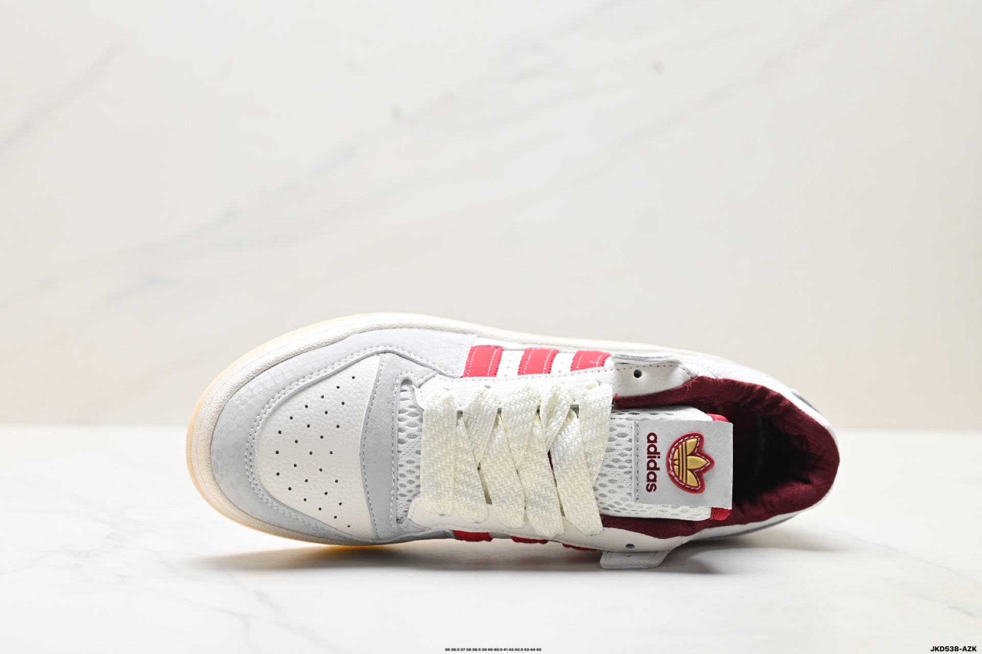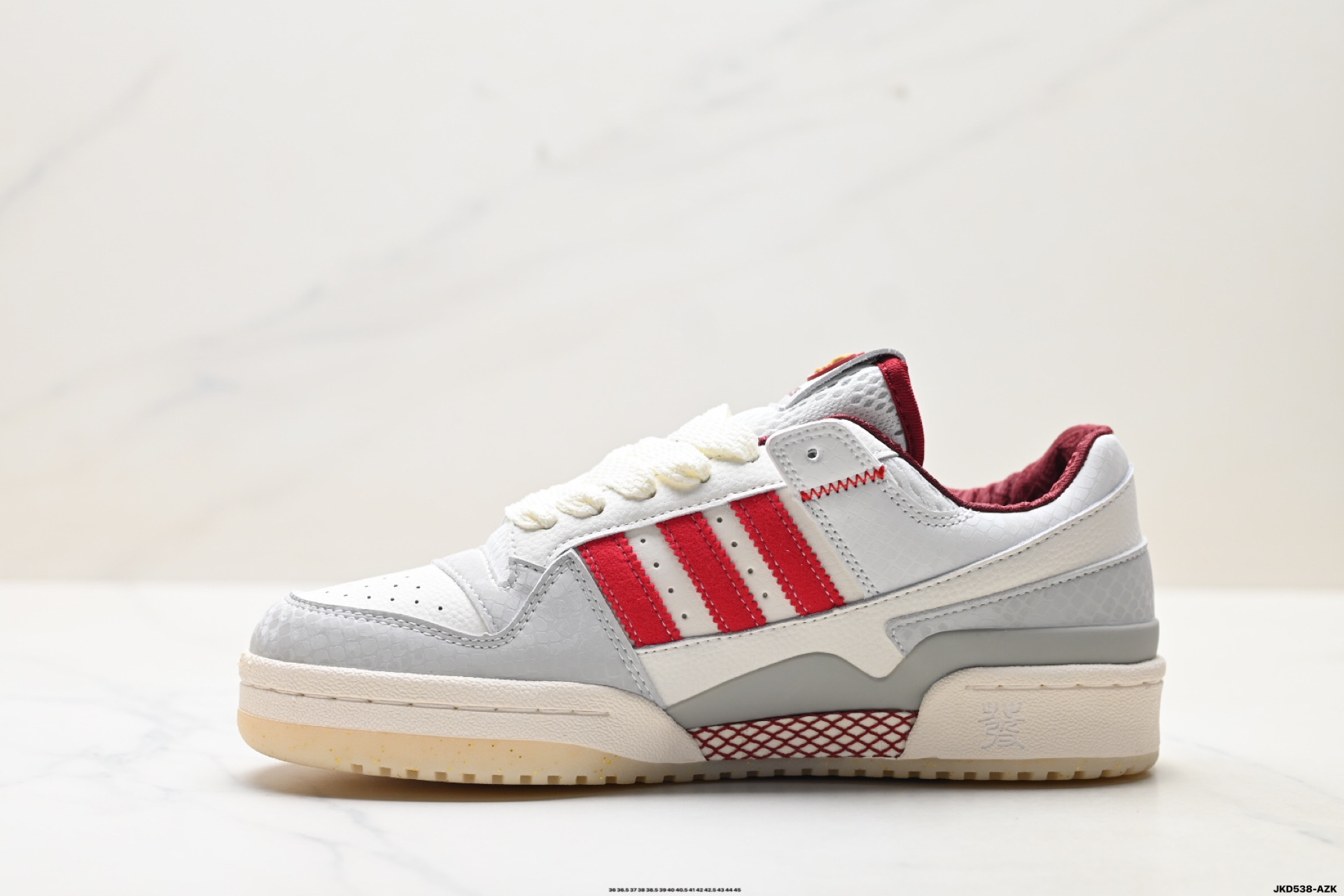 以复古篮球鞋的外形为基础 采用皮革拼接 简约百搭 更加贴合舒适 中底内侧网格造型起到点睛之笔 外底橡胶 更显复古