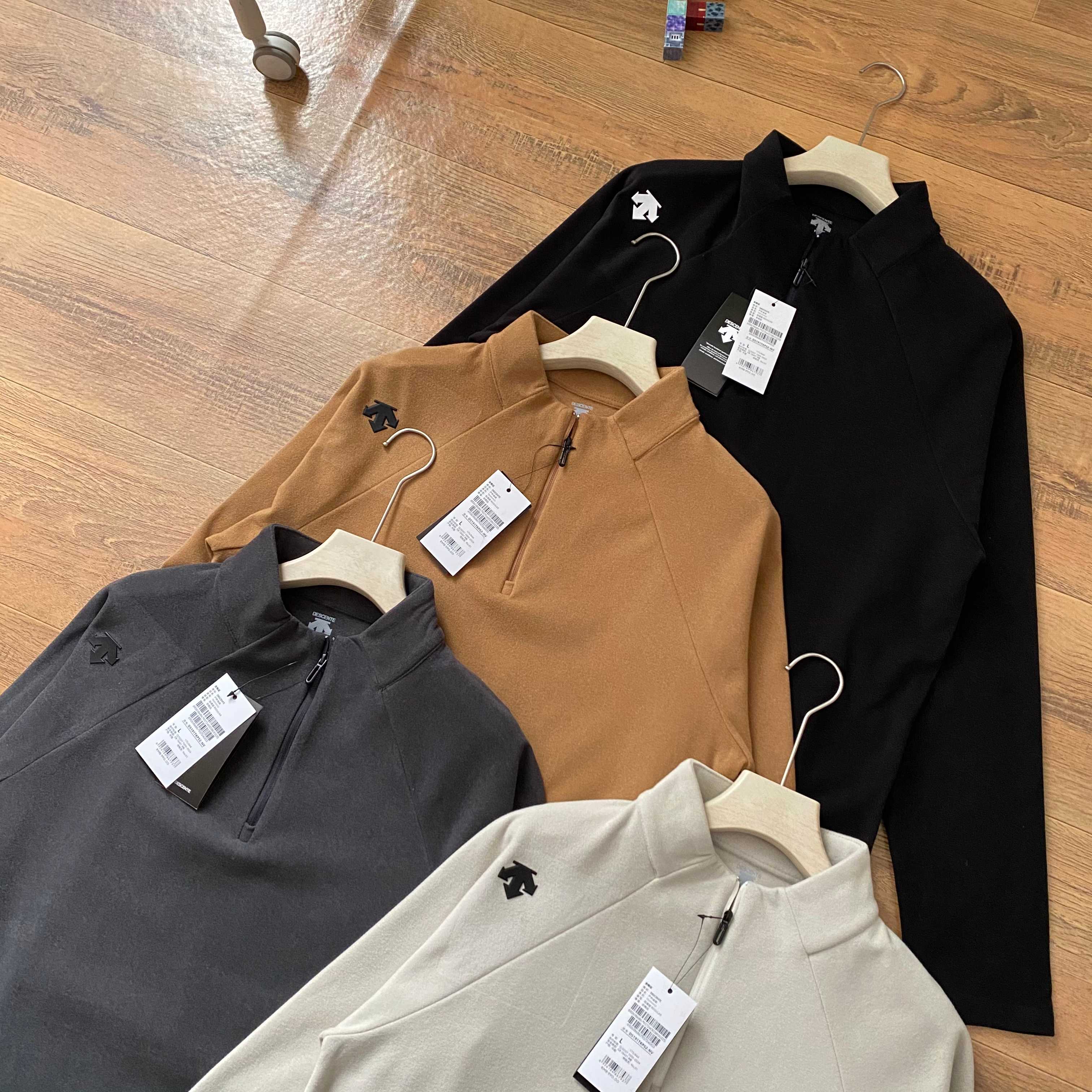 DESCENTE 迪桑特冬季调温防臭防静电弹性修身长袖纯色立领卫衣德绒半拉链保暖休闲运动衫
