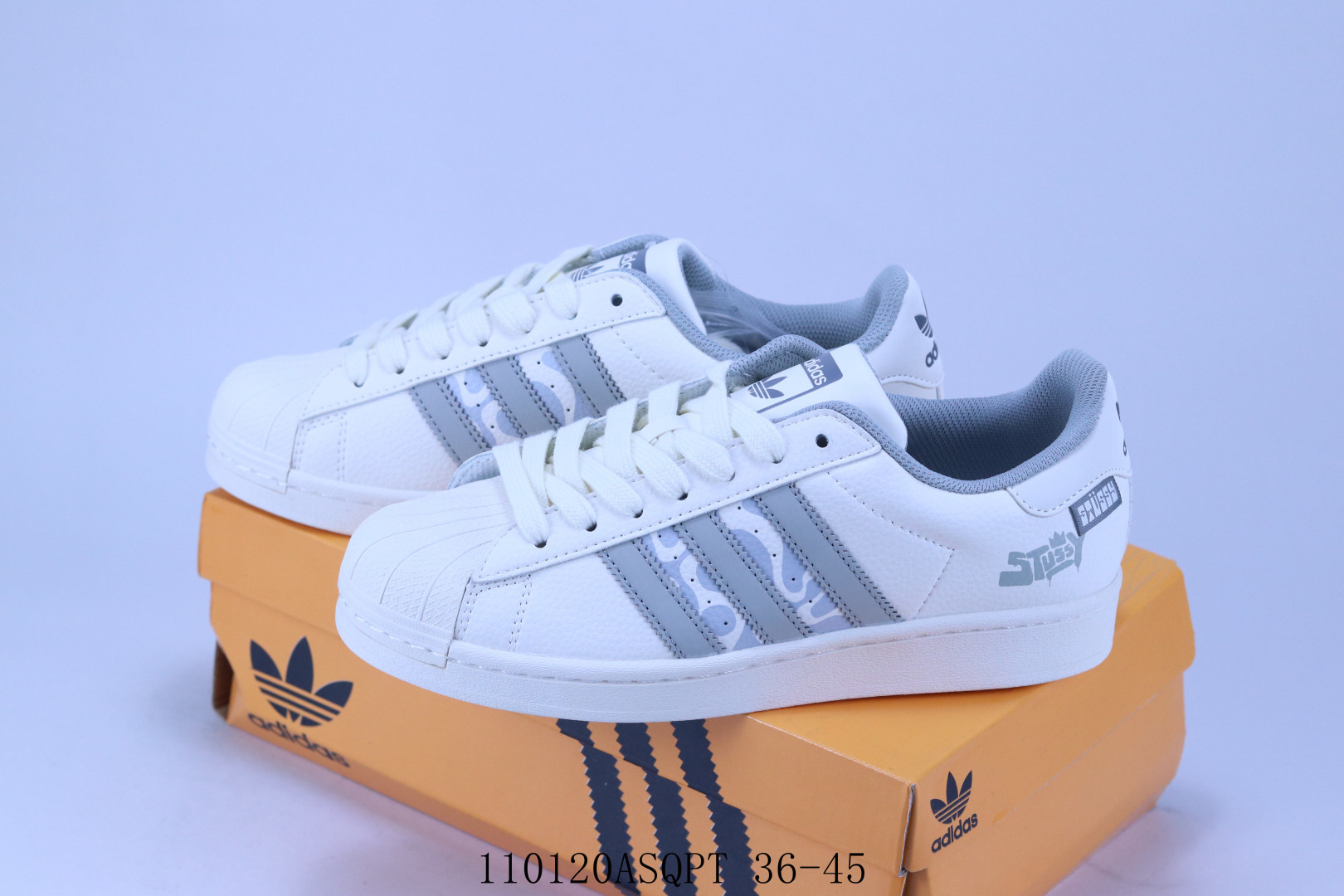 阿迪达斯adidas originals Superstar防滑耐磨轻便透气 低帮 贝壳头板鞋 斯图西 联名 110120ASQPT 36 45