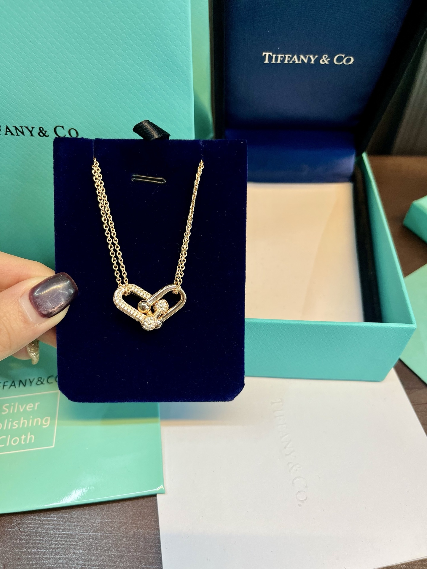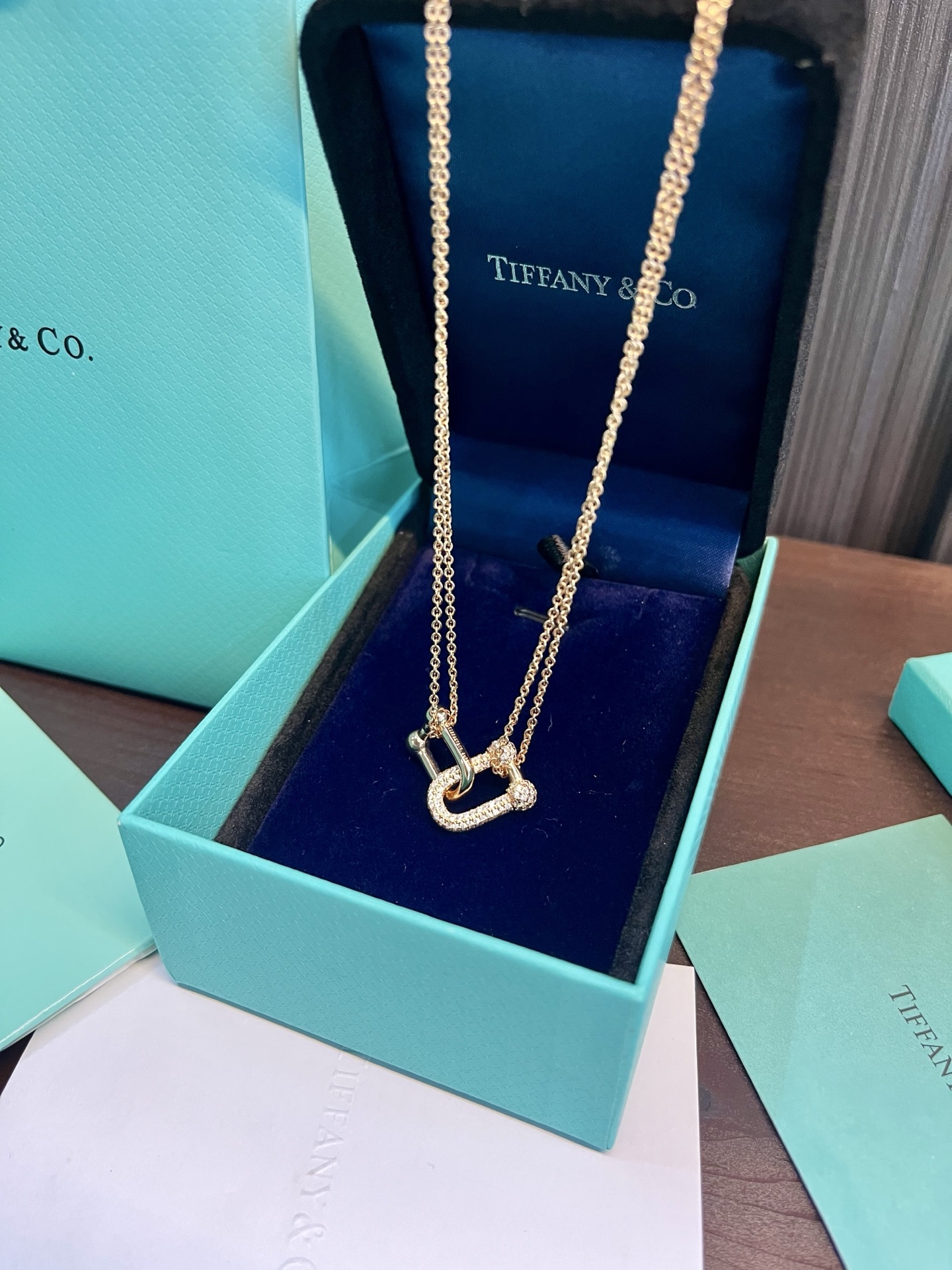 蒂芙尼双环项链 明星同款 字母强烈的图形线条 完美呈现Tiffany T系列的简约纯粹 璀璨美钻点缀迷人吊坠的优雅曲线 蒂芙尼 双环热推款 店内现货项链长45cm