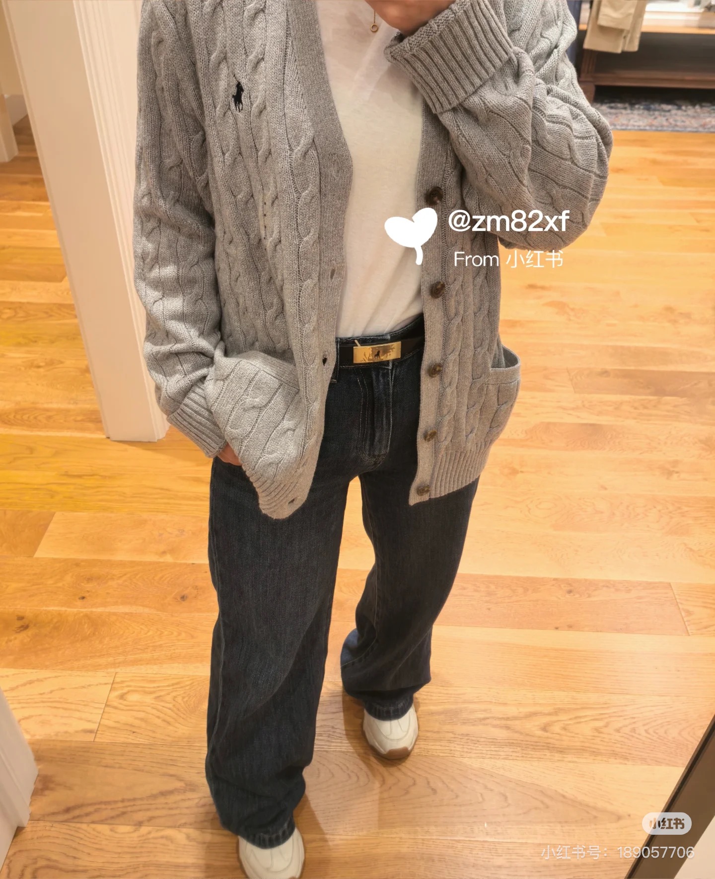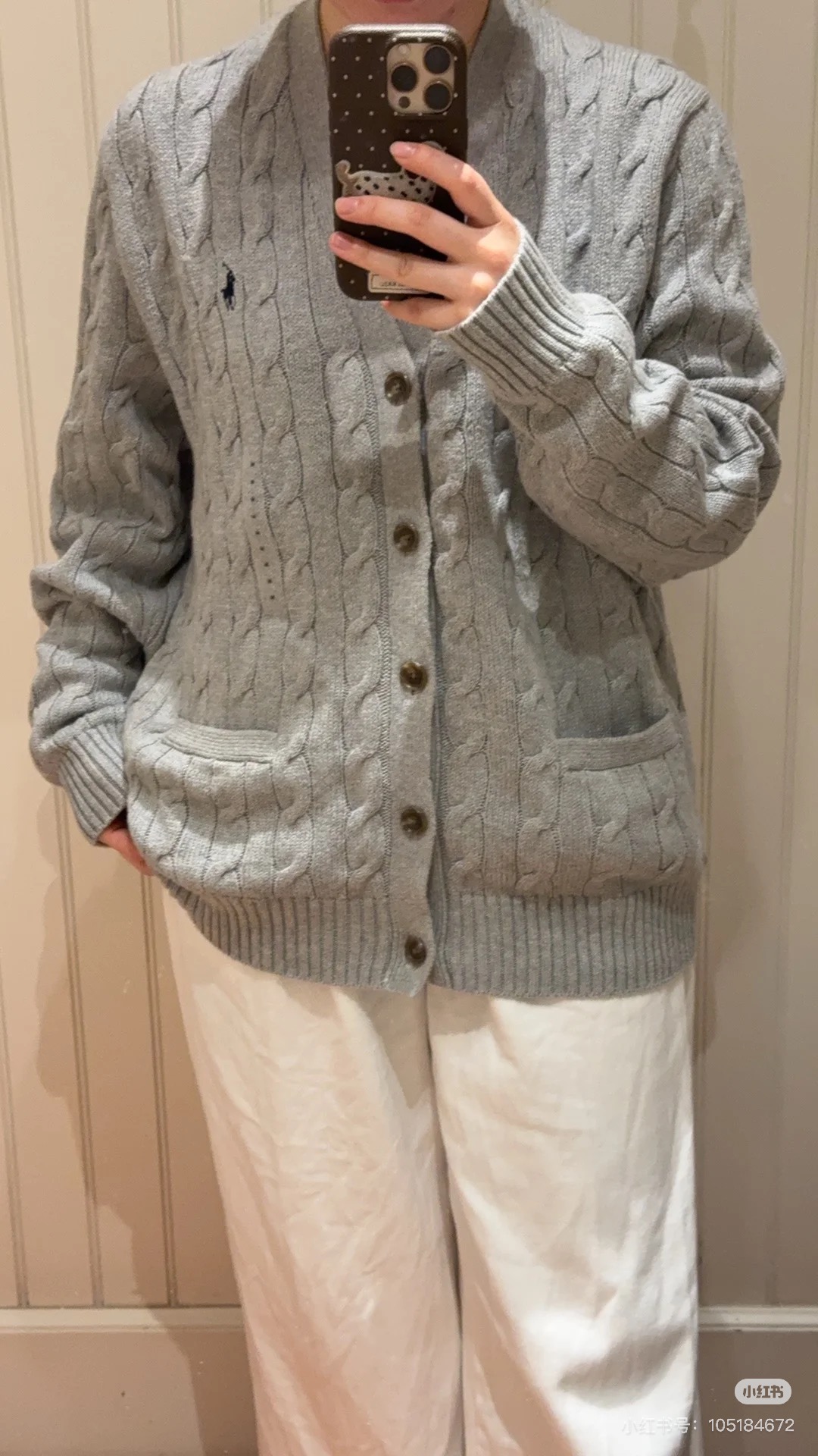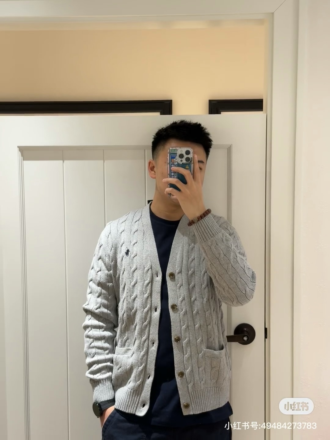 拉夫劳伦Ralph Lauren经典款纯色袖口撞色麻花胸口刺绣大开衫毛衣