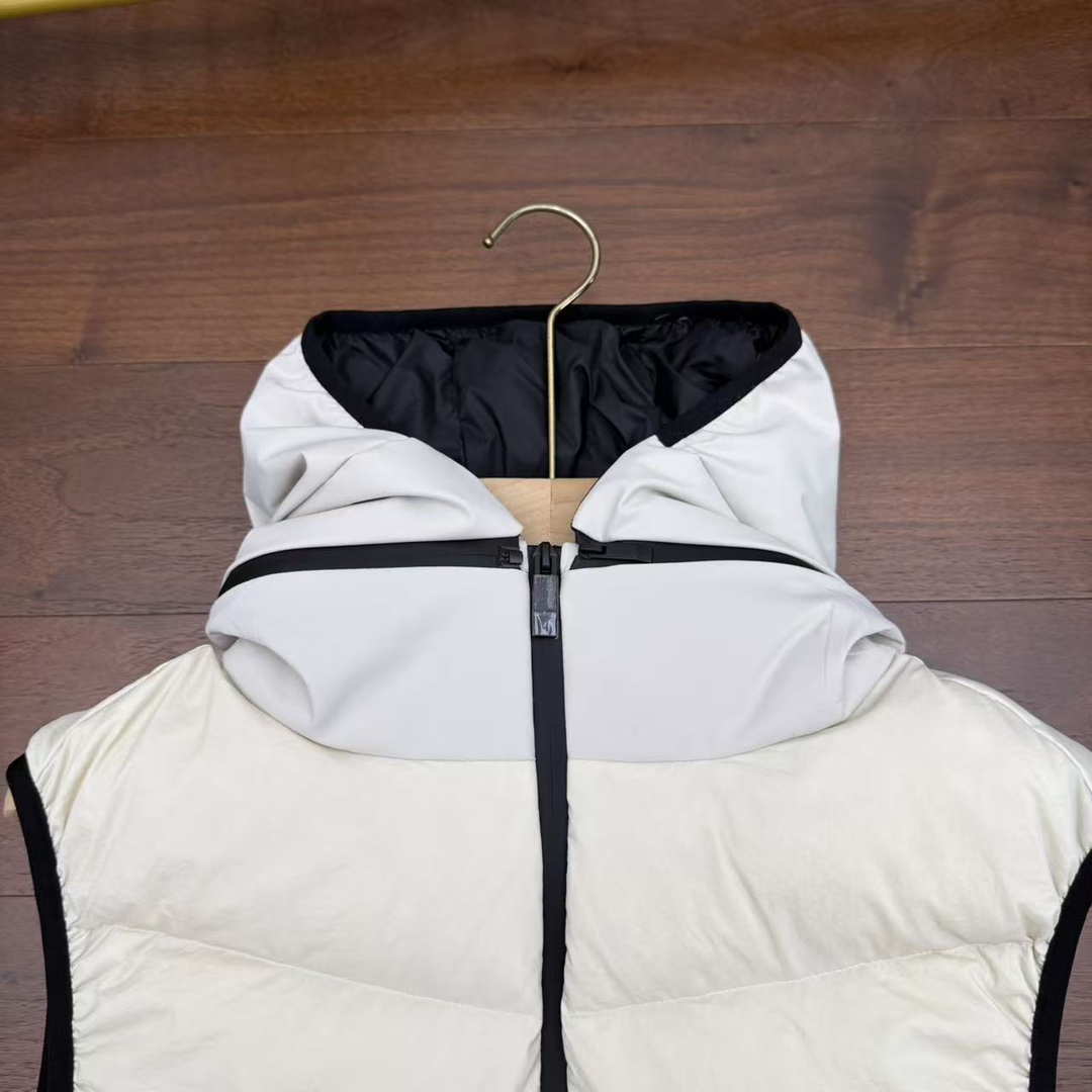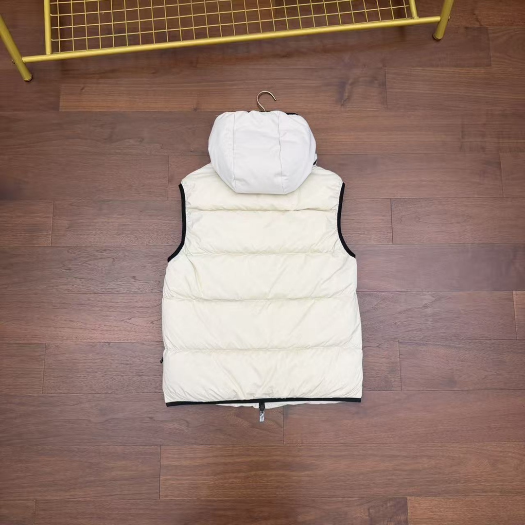 严选好货 Moncler蒙口新款男士可拆卸连帽羽绒马甲外套 官网同步在售 客供尼龙科技防风防水面料 内里90白鹅绒填充 轻盈蓬松 保暖舒适 可拆卸连帽设计 后领高频立体压花logo 胸前小标徽章点缀 袖口 下摆松紧包边 两侧拉链口袋 原版五金辅料 做工细节都非常不错 上身效果一级棒 喜欢的兄弟不要错过 颜色 米白色 黑色 尺码 1一5码