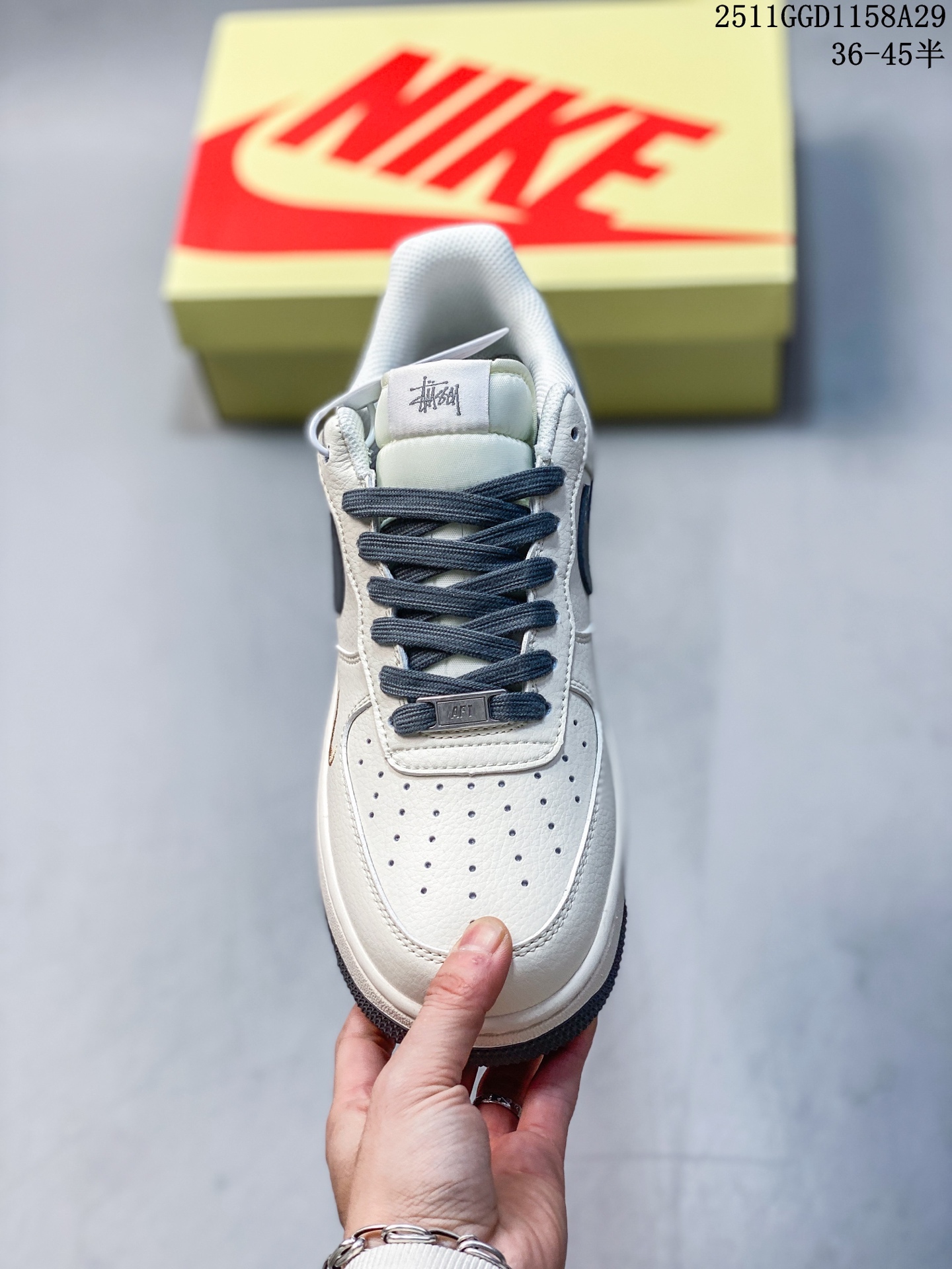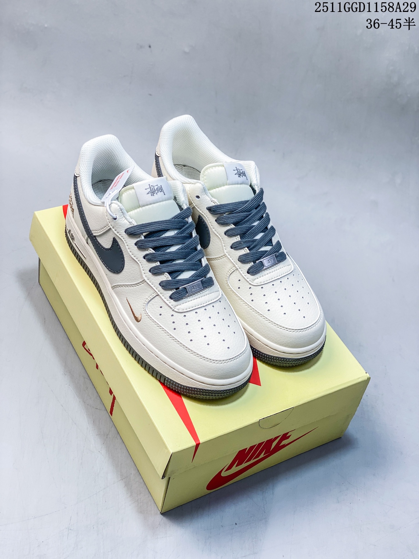 海外限量发售 公司级NIke Air Force 1 07 Low 斯图西联名 米深灰金标 空军一号 低帮 运动鞋 休闲鞋 折边针车 工艺难度大 原楦头原纸板 原装鞋盒 定制五金配件 内置全掌气垫 原厂鞋底