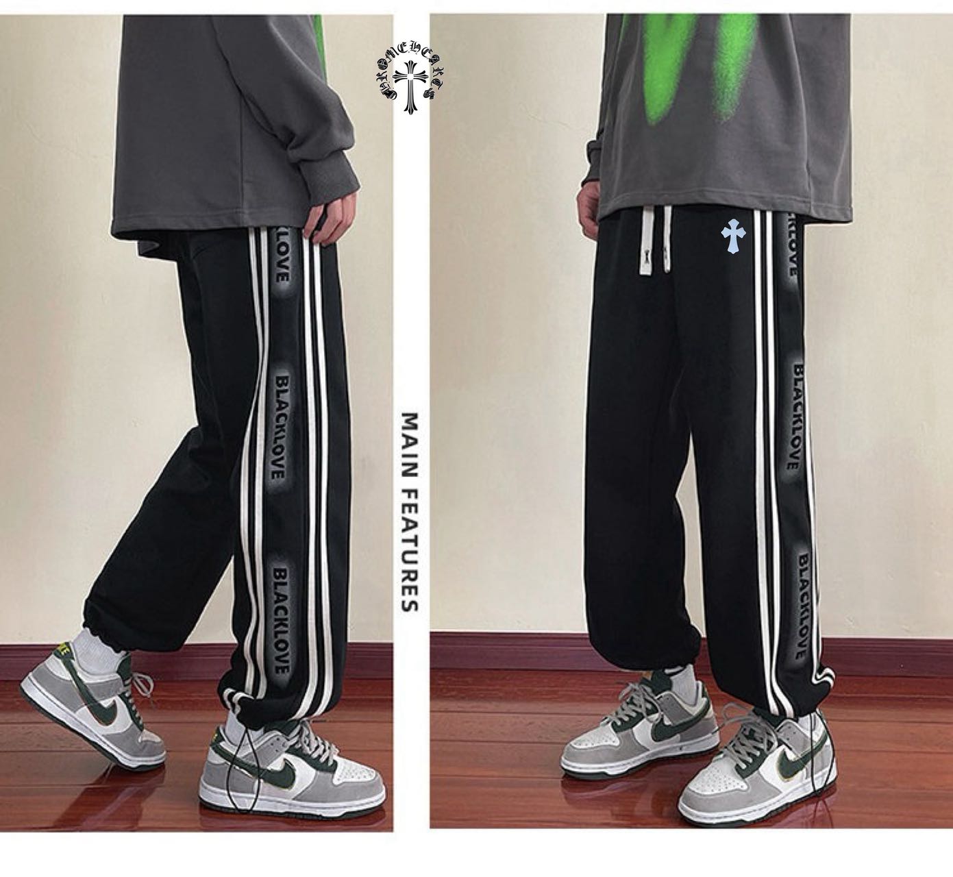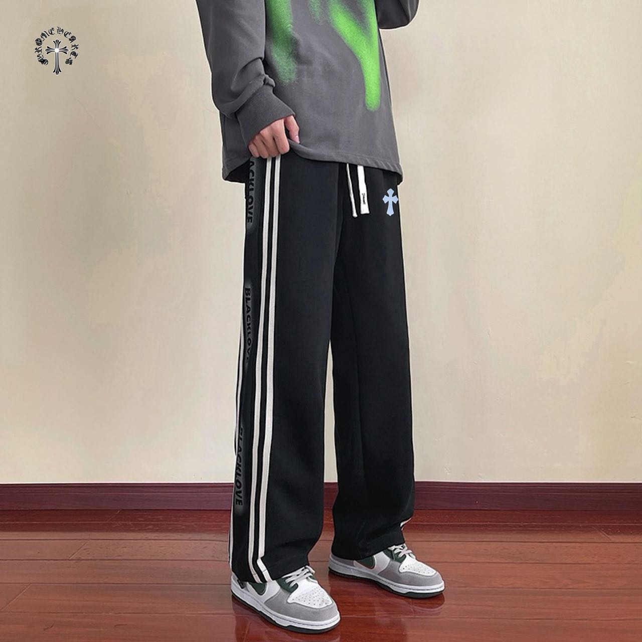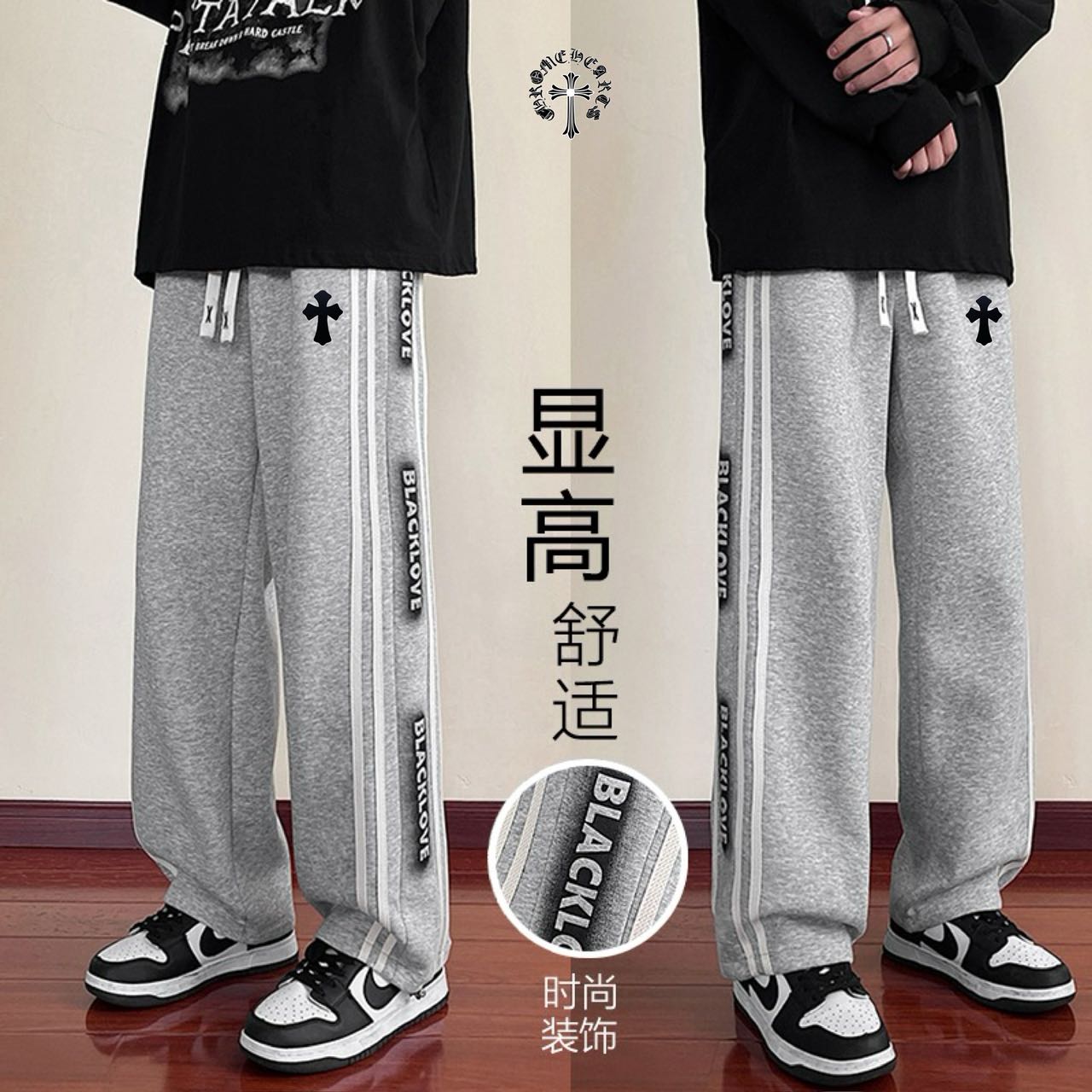 CHROME HEARTS克罗心海外版25ss新款两色高品质水洗磨毛拼接休闲运动裤