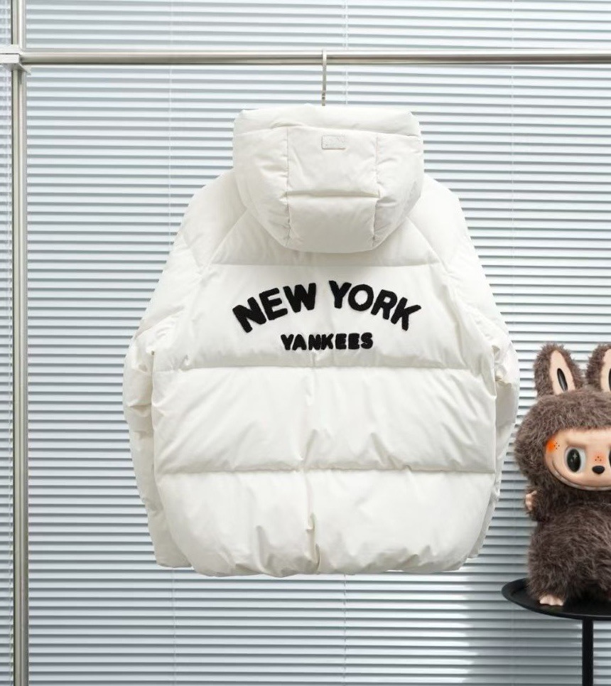 MLB 洋基队24年最新款张凌赫同款植绒贴皮logo四色棒球面包式羽绒服情侣款连帽羽绒服外套
