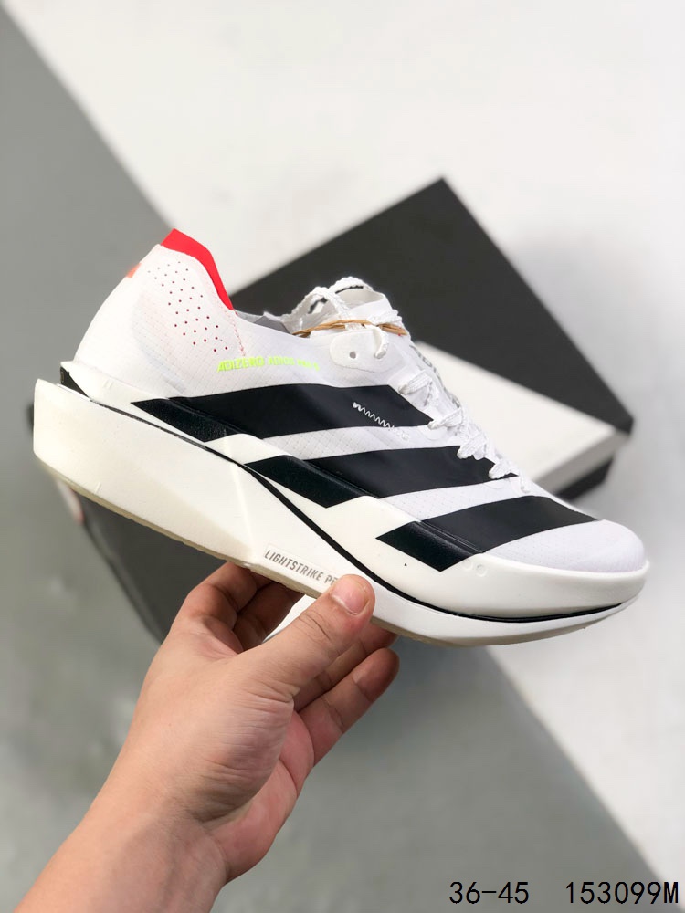 阿迪达斯 ADIDAS ADIZERO 5 0 运动舒适防滑耐磨 低帮跑步鞋 阿迪达斯革新力作 破纪录轻跑鞋 adiZero Adios Pro EVO 极致轻盈的Lightweight Upper设计 带来近乎裸足的舒适体验 中底采用尖端科技 Lightstrike Pro材料经过精细调校 实现卓越缓震与轻量化的完美结合