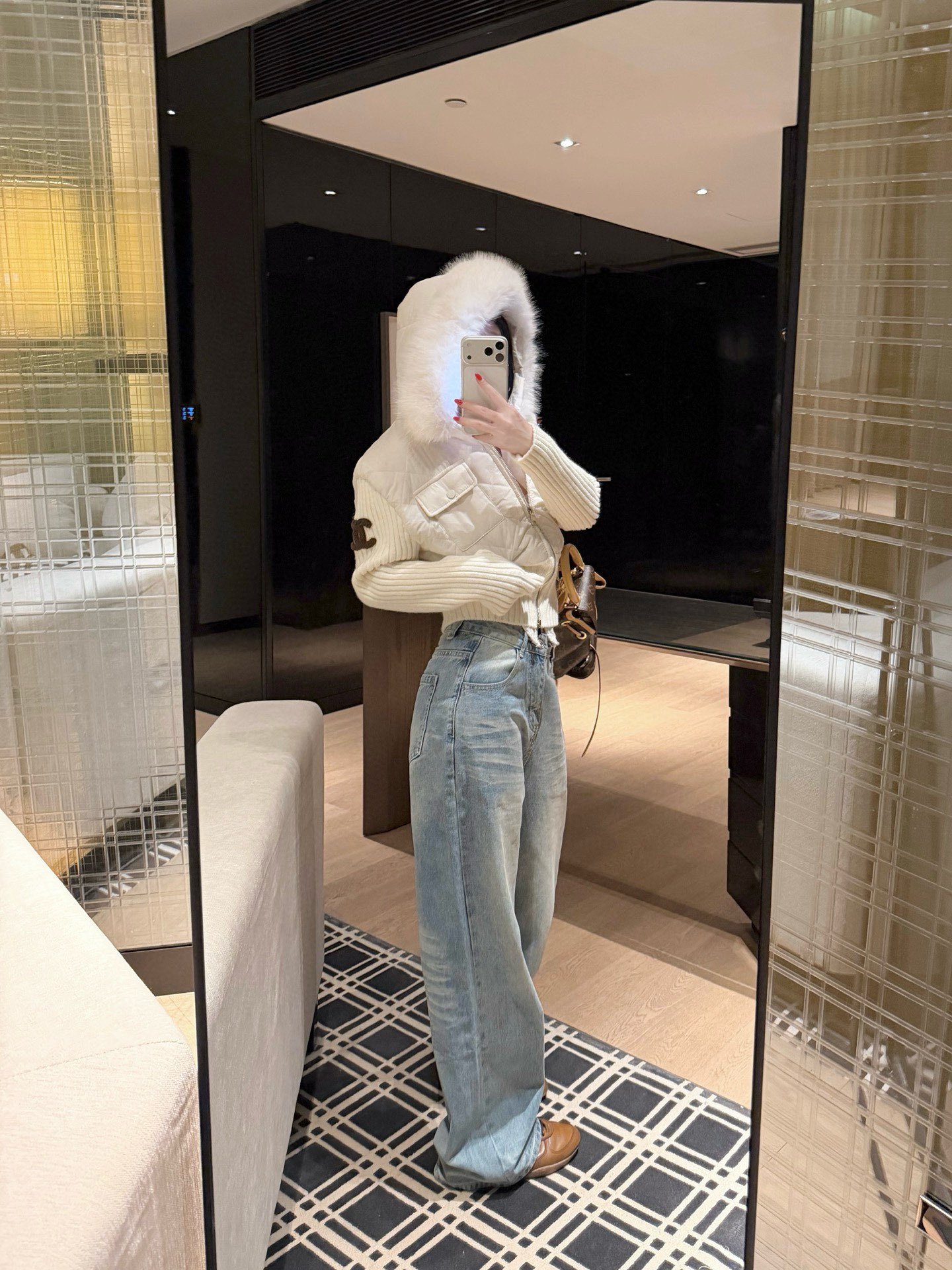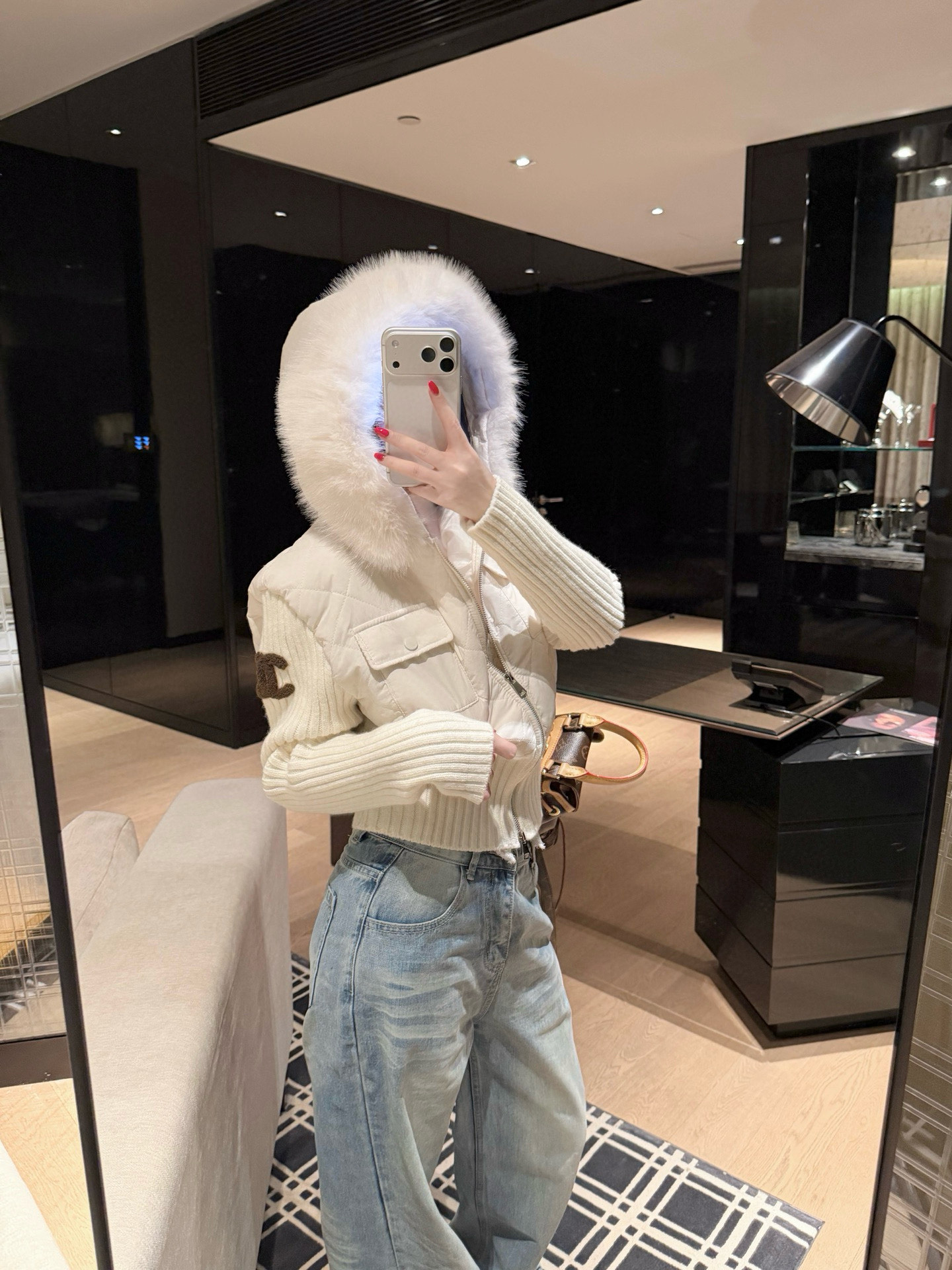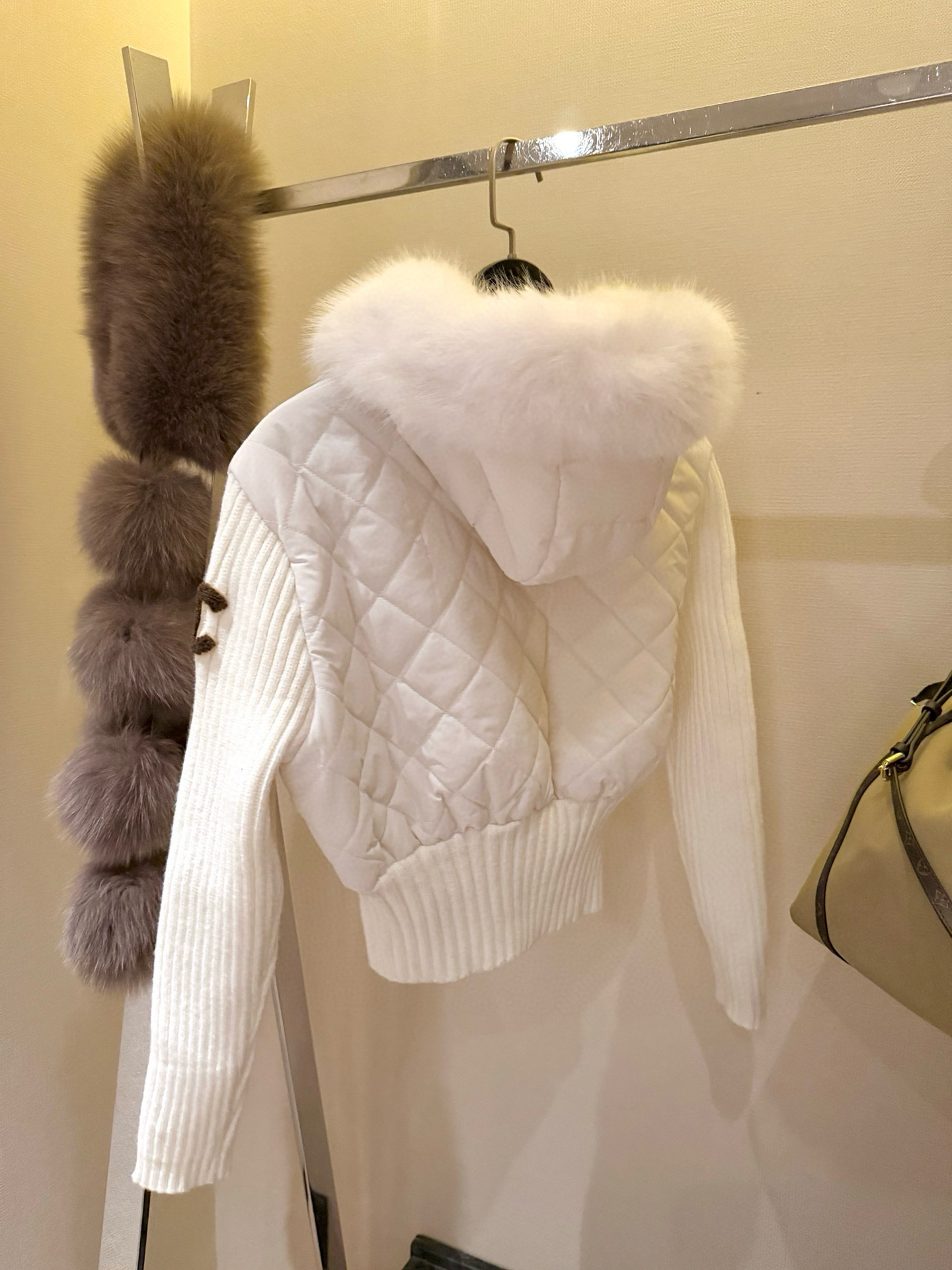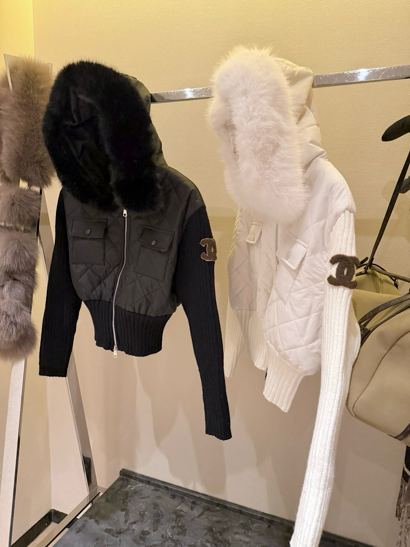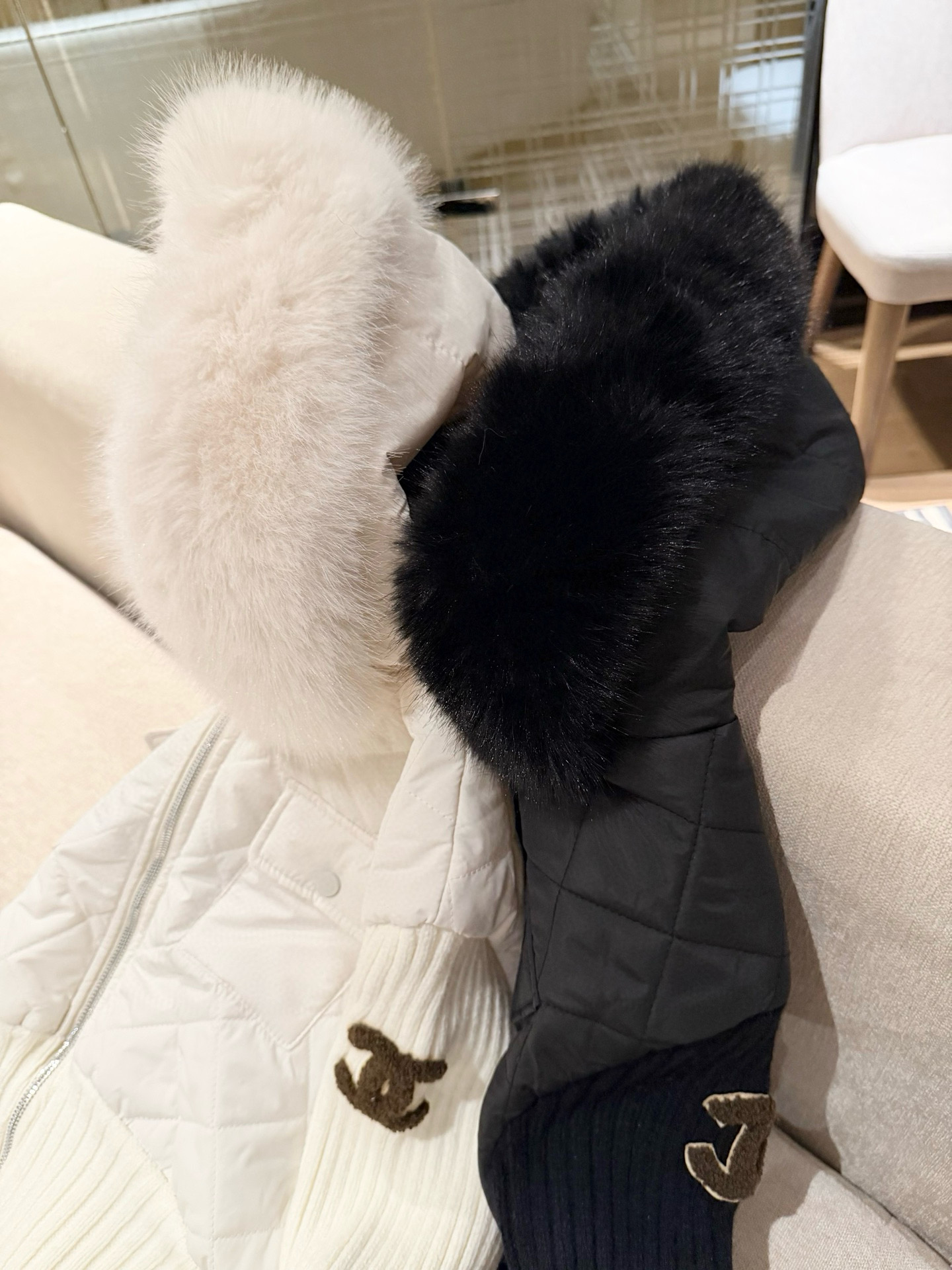 Chanel香奈儿小香双C立体毛巾绣花针织毛衣拼接双头拉链可拆卸毛领连帽菱格夹棉外套