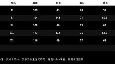 尺码 M 3XL