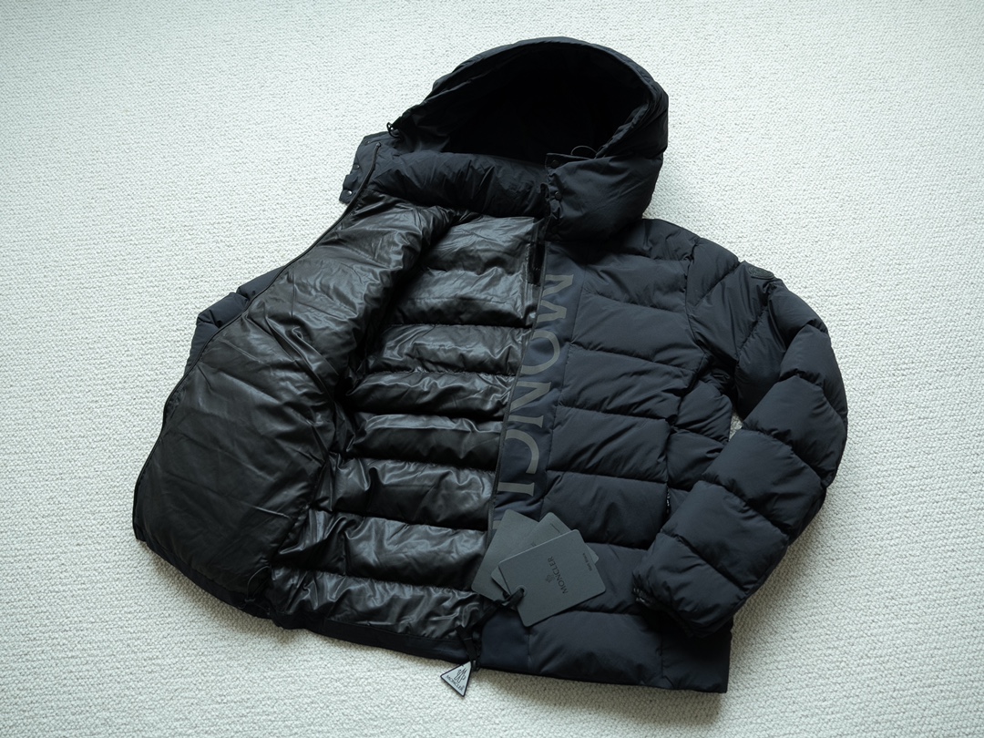 原版购入打版 超高还原度版 不做通货 国标90白鹅绒 充绒量每件平均280克制重量轻 蓬松度高 秒杀市面所有版本 定织原版面料 面料Longuesaison尼龙制成 提供出色的防水透气性且轻盈触感非常的柔软爽滑有光泽 门禁拉链处Moncler蒙口家的英文logo采用3M经典黑色高反光进口材料 彰显整体黑暗效果 高温压烫印花工艺 还原原版工艺 整件衣服 所有五金拉链 纽扣 按扣 都是按照原版一比一开模定制 带蒙家的激光雕刻Logo字母 拉链都是铜材质的 暗黑版本的辅料 领标也是黑武士版本特有的暗黑色系 领标织带全部都是黑标 手臂上蒙口M标采用软橡胶材质开模定制而成 所有细节都与原版一致 每件衣服 都带专柜同步的NFC芯片识别 任何细节都不容放过 完美还原99的标准来做货 只做顶级版本 十星强推款式
