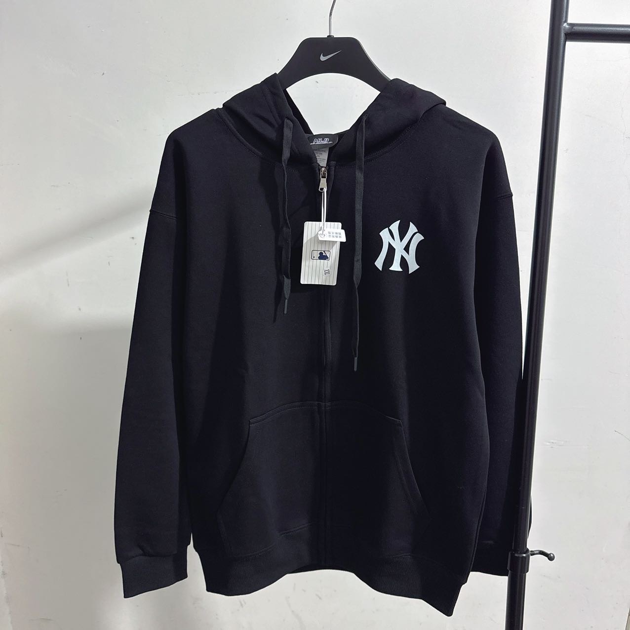 连帽开衫篇 防伪标识版拉链连帽开衫毛圈360克原标吊牌 MLB 洋基队NY复古勋章美式开衫卫衣连帽外套灰色情侣款
