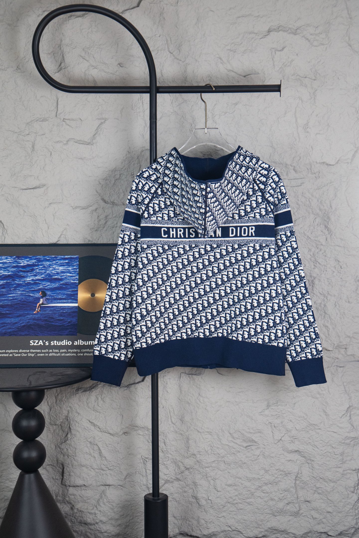 DIOR 迪奥25FW 经典老花字母双面穿羊绒连帽针织外套针织连帽卫衣