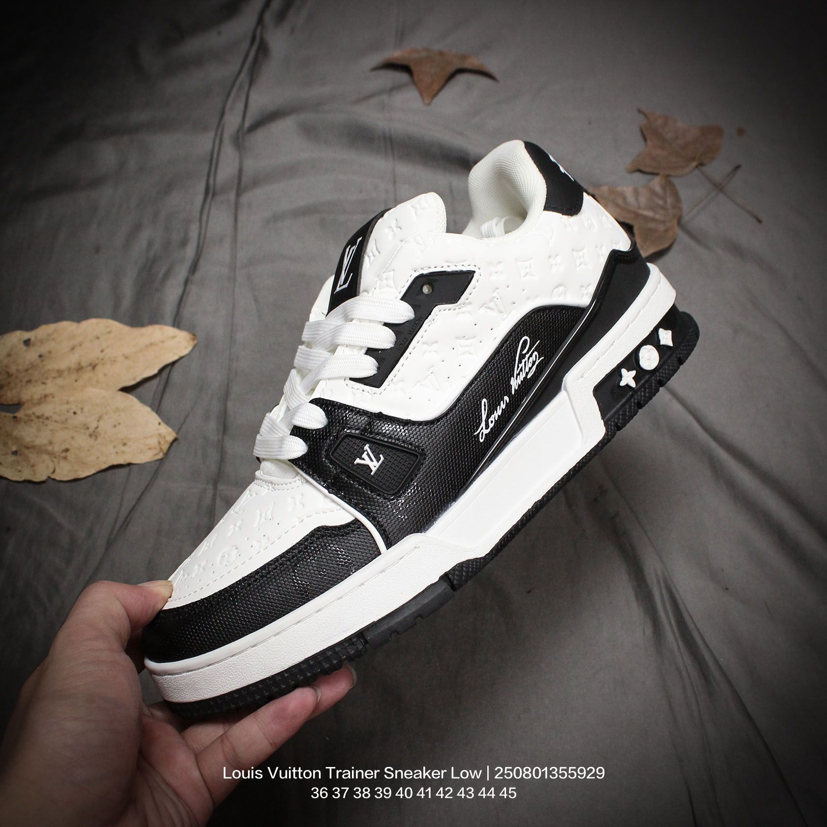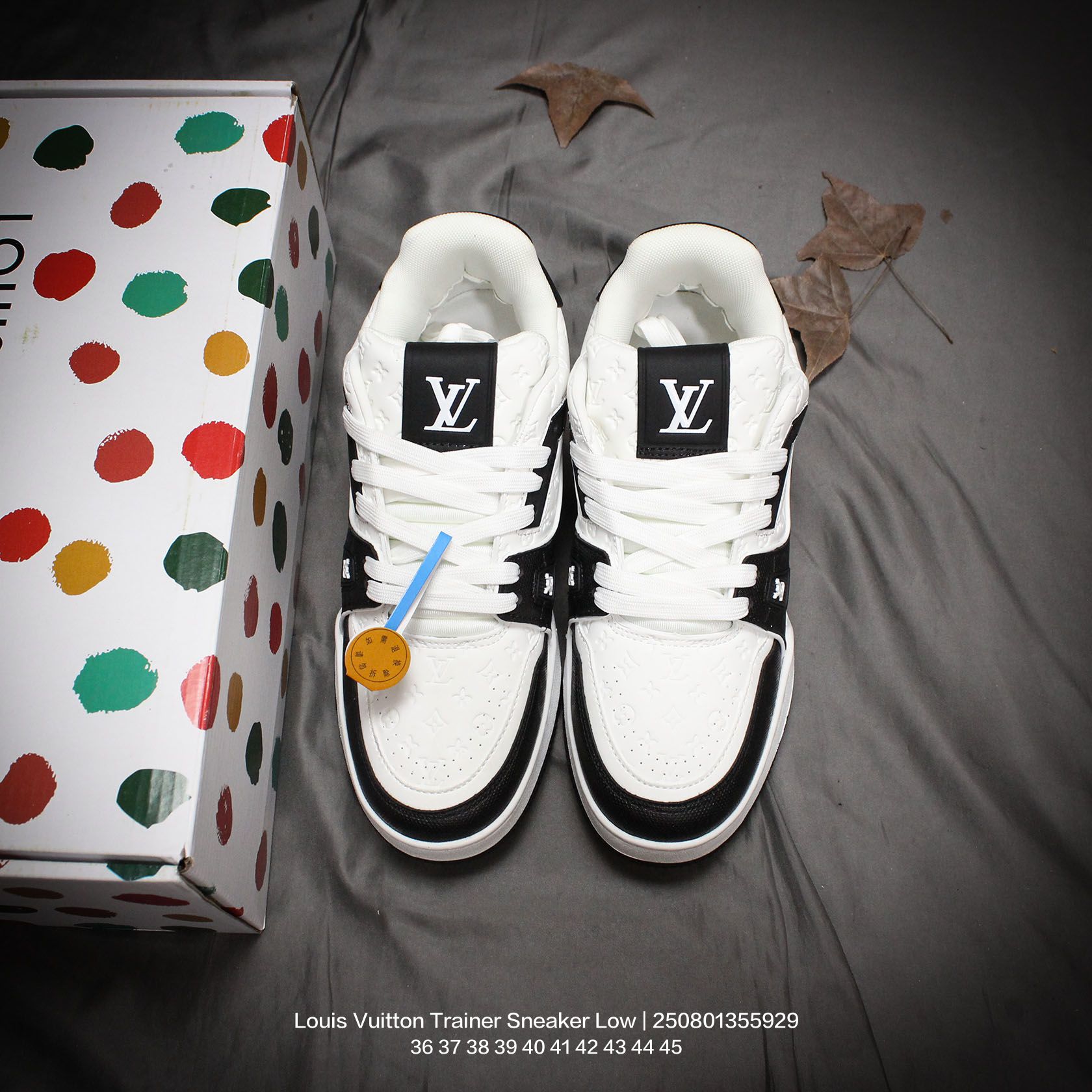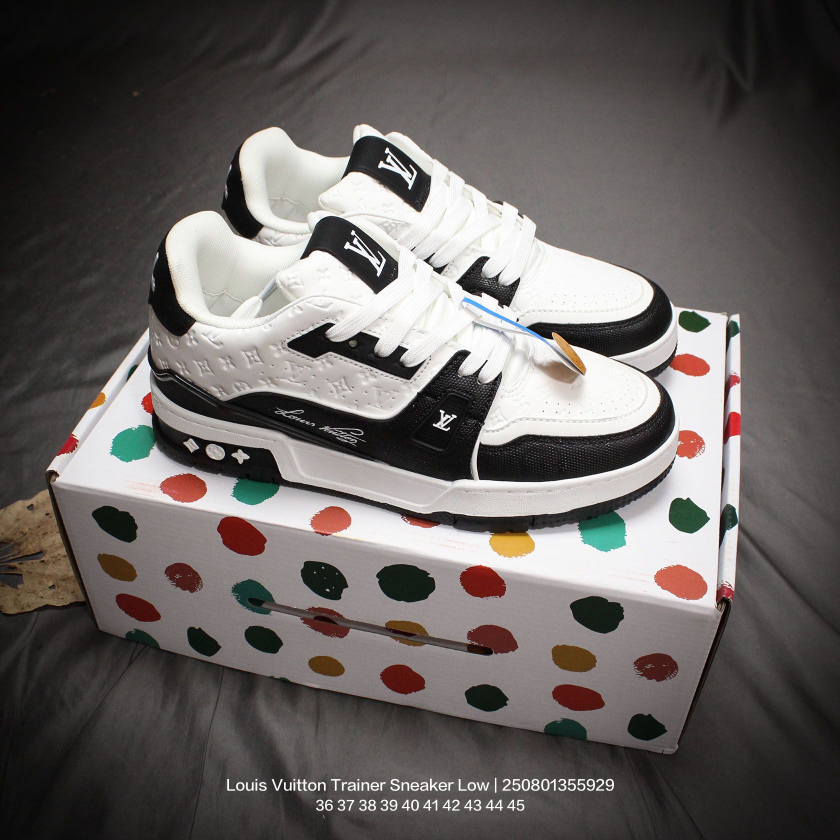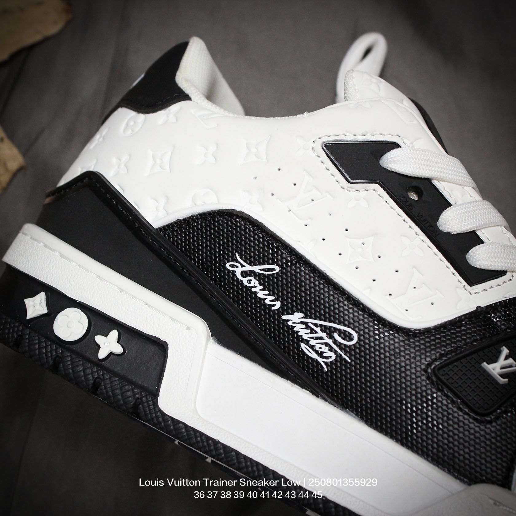 Louis Vuitton 路易威登 男女鞋配置厚实抽屉礼品鞋盒 采用荔枝纹纤维革组合粒面牛剖革鞋面材质 鞋垫嵌入软脚感EVA物料 外置TPR光泽隔色鞋底法国巴黎百年奢侈品牌LV路易威登Louis Vuitton Trainer Sneaker Low 运动系列低帮复古百搭休闲运动文化篮球板鞋