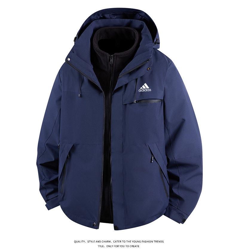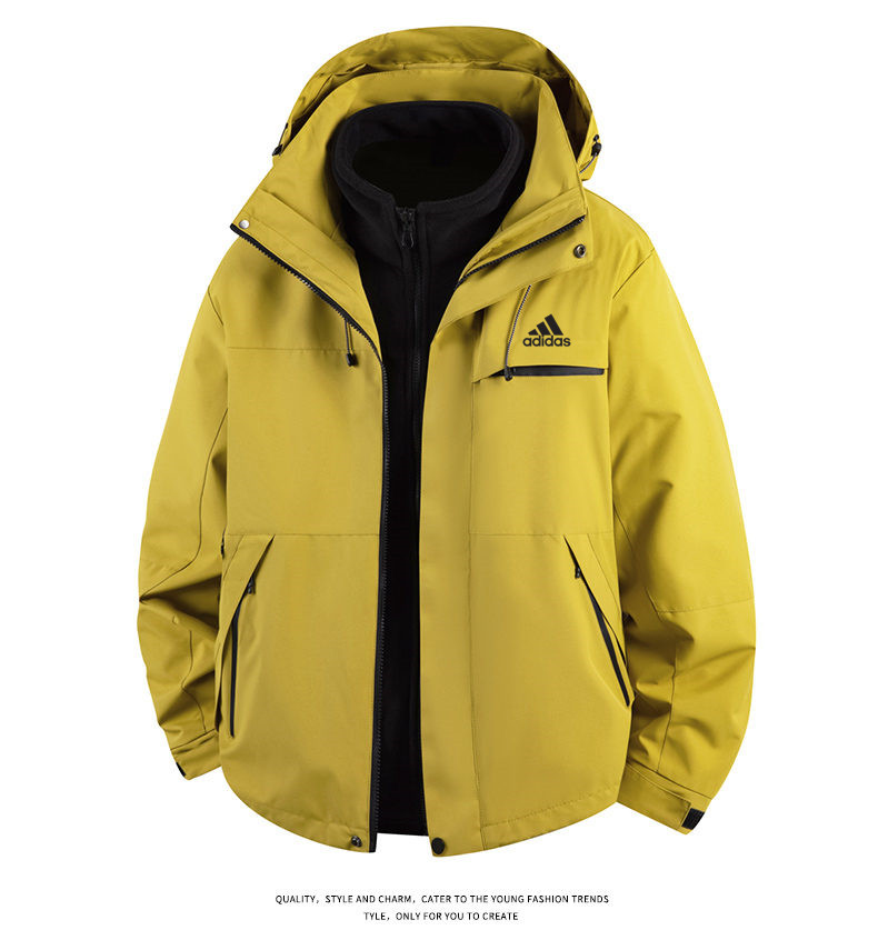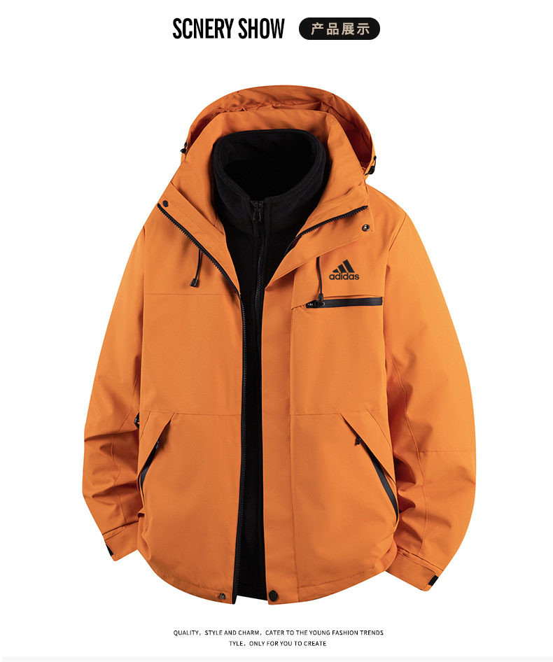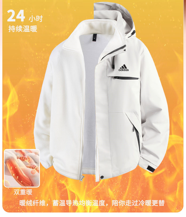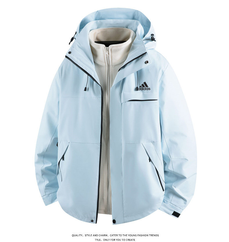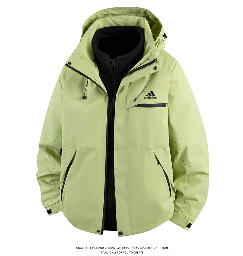 Adidas 阿迪达斯 三叶草 三合一防风防水冲锋衣男女同款外套夹克 三合一 爆款休闲冲锋衣登山服连帽拼纯色单冲