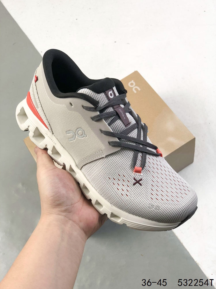 On昂跑 Cloud x 4 0舒适百搭防滑耐磨低帮休闲跑步鞋 采用人体工程超薄透气网织布鞋面材质 搭镂空CloudTec 科技泡棉缓震 4 5cm厘米 加厚中底