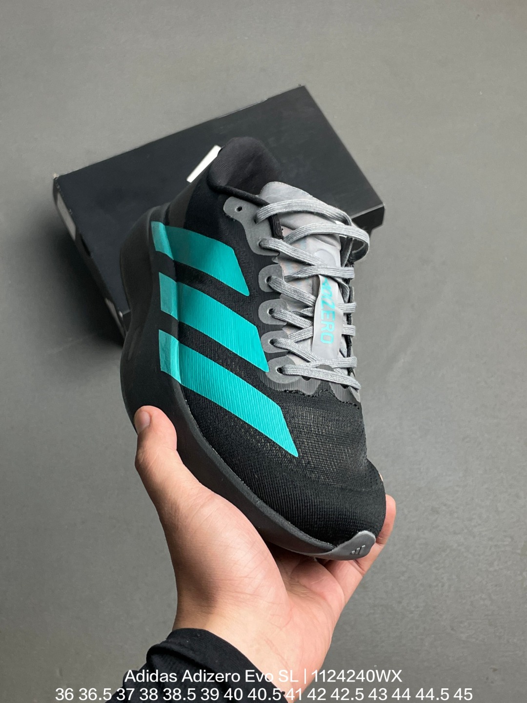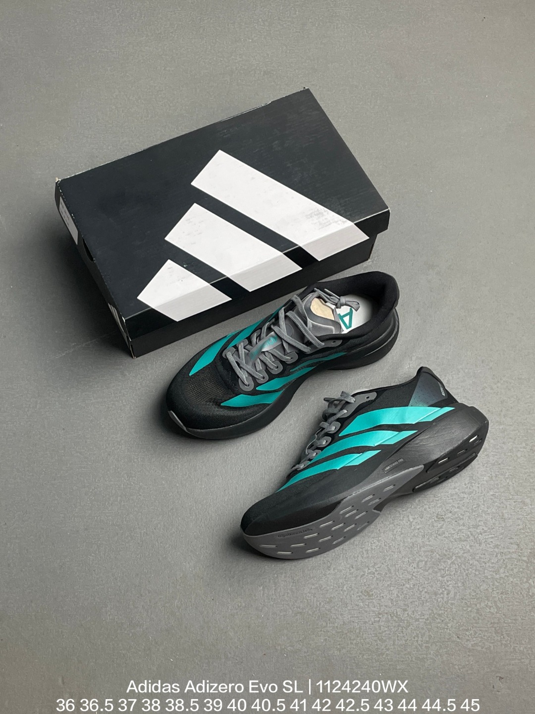 Adidas 阿迪达斯 采用呼吸网织物热熔面料材质 中底搭载Lightstrike高密度发泡 前掌单块Lightstrike Pro避震科技 外搭马牌橡胶橡胶防滑底片全新极简设计语言 阿迪达斯Adidas Adizero Evo SL White Blue Fusion 零度进化版系列低帮轻便透气竞速休闲运动慢跑鞋