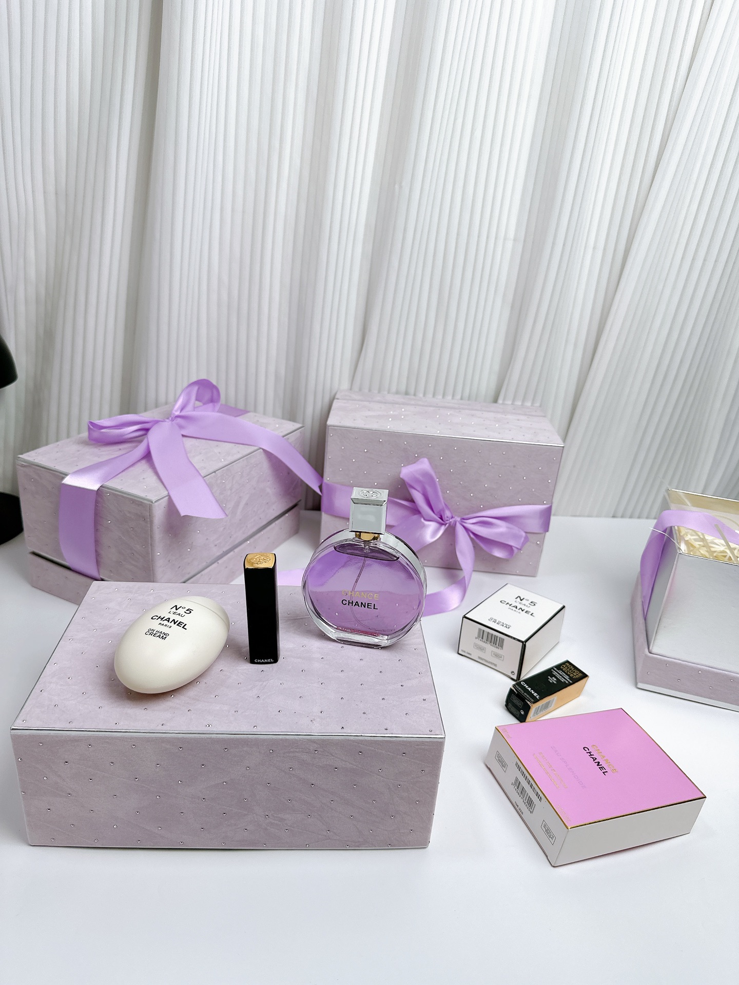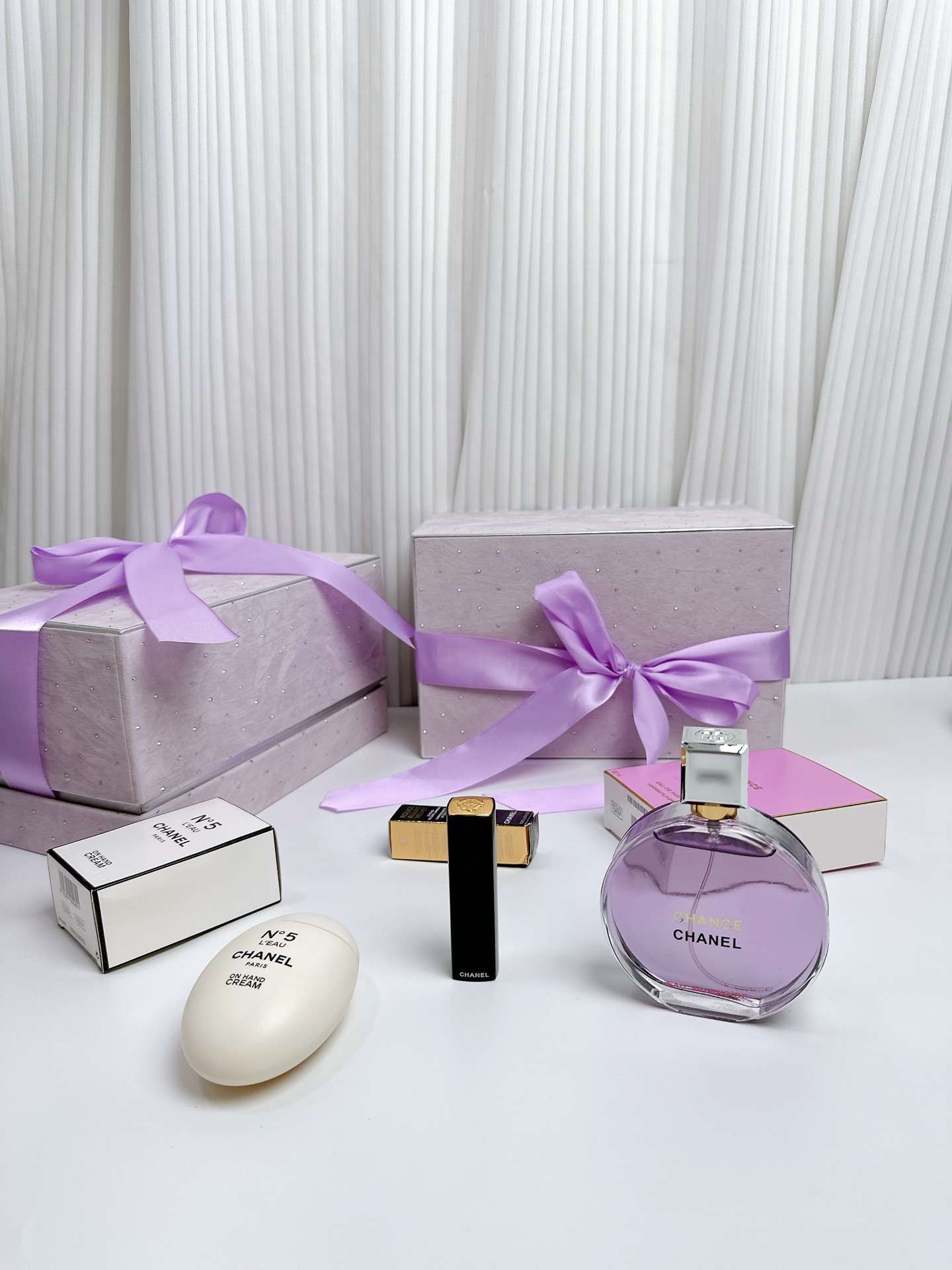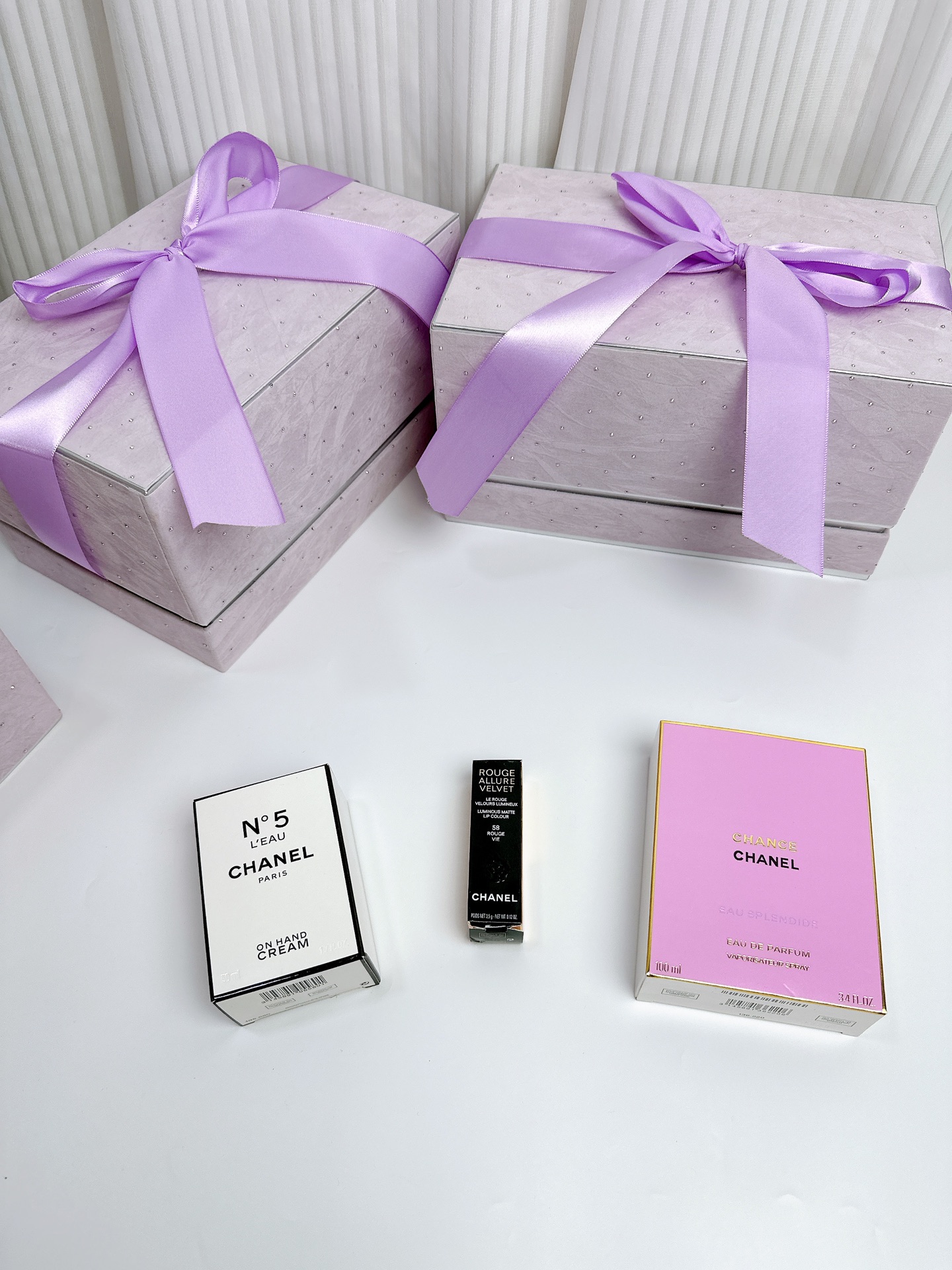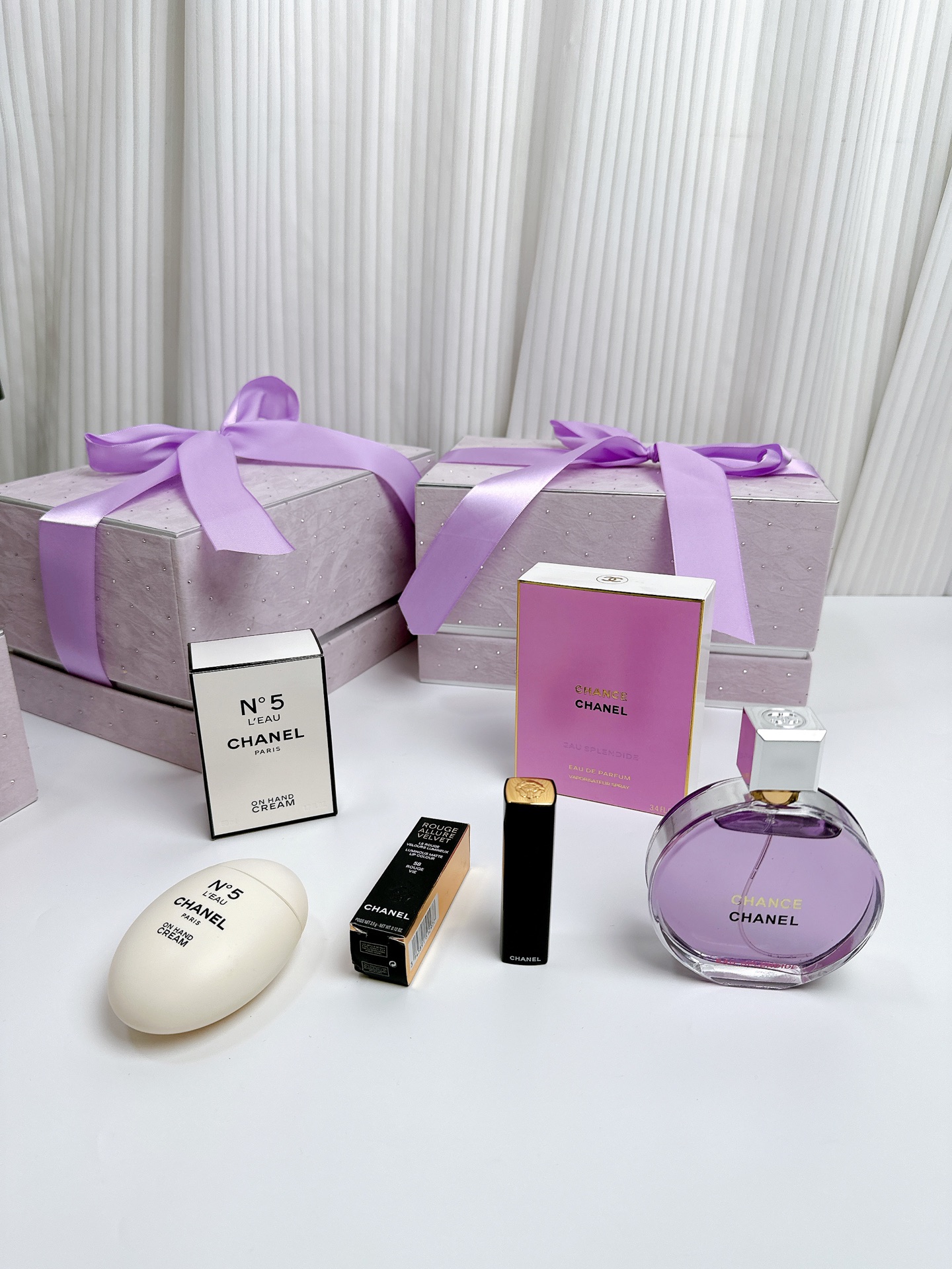 圣诞礼物独家主推 高品质 CHANEL香奈儿梦幻紫彩妆礼盒 套盒内含 香奈儿紫邂逅香水100ml狮子丝绒按压口红58 色香奈儿N5鹅蛋护手霜 梦幻丝带水钻礼盒包装 送到心坎里的礼物