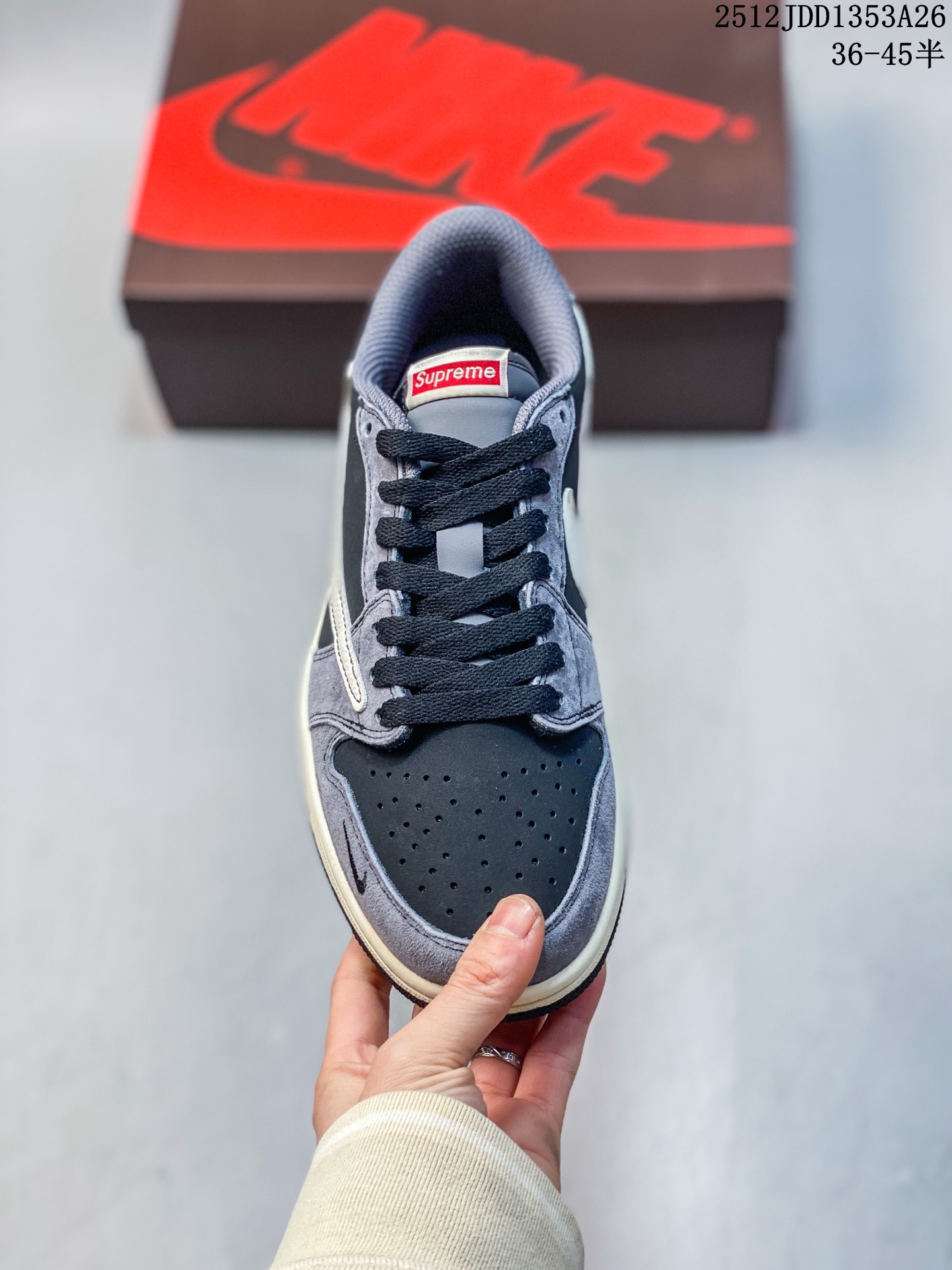 Travis Scott x Fragment Design x Jordan Air Jordan 1 Low OG SP 巴黎世家联名 奶白猪八灰蓝勾 多方联名合作融合了Travi翻毛蓝勾s Scott 独特的音乐风格 藤原浩个性的设计风格以及Jordan品牌的经典元素 使其成为一双具有独特身份和价值的鞋子 清新而立体的外观加上联名标识更突出了其独特身份 这种配色方案显示出活力和时尚感 在视觉上引人注目 鞋身的质感和细腻的细节处理使其显得高端而格调十足 这款 倒钩 联名是设计与创意完美结合 融合多方的个性风格是一款备受瞩目的潮流鞋款 低帮休闲板鞋 定制鞋盒 大厂纯原品质出货 超高清洁度 皮料切割干净无任何毛边 细节完美