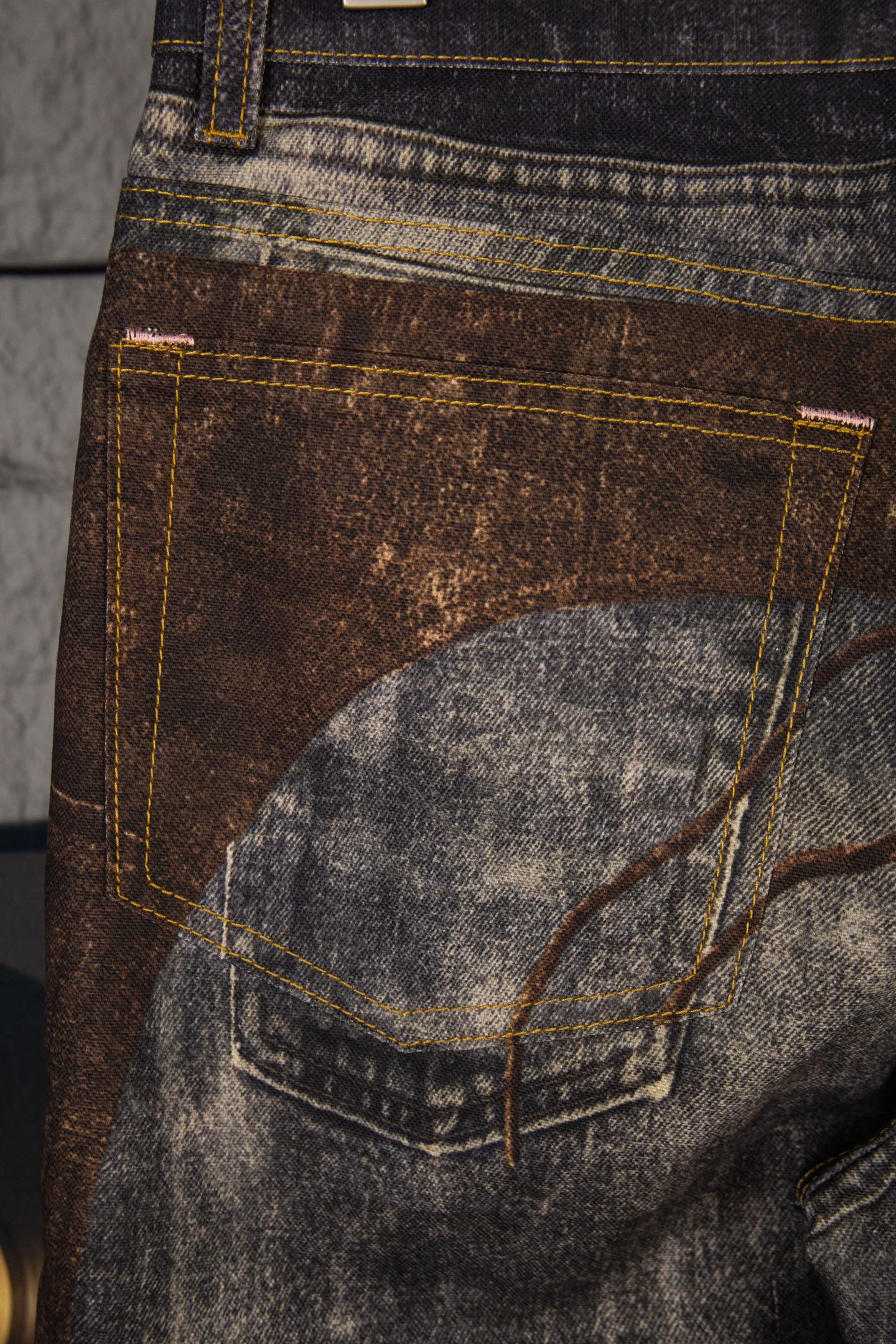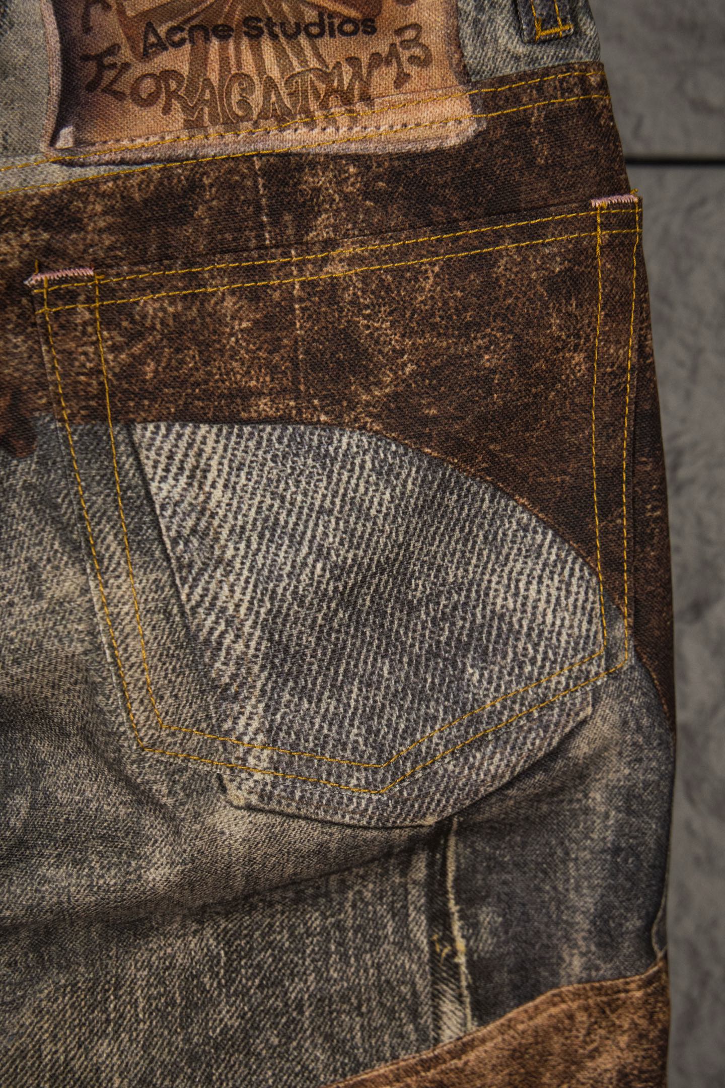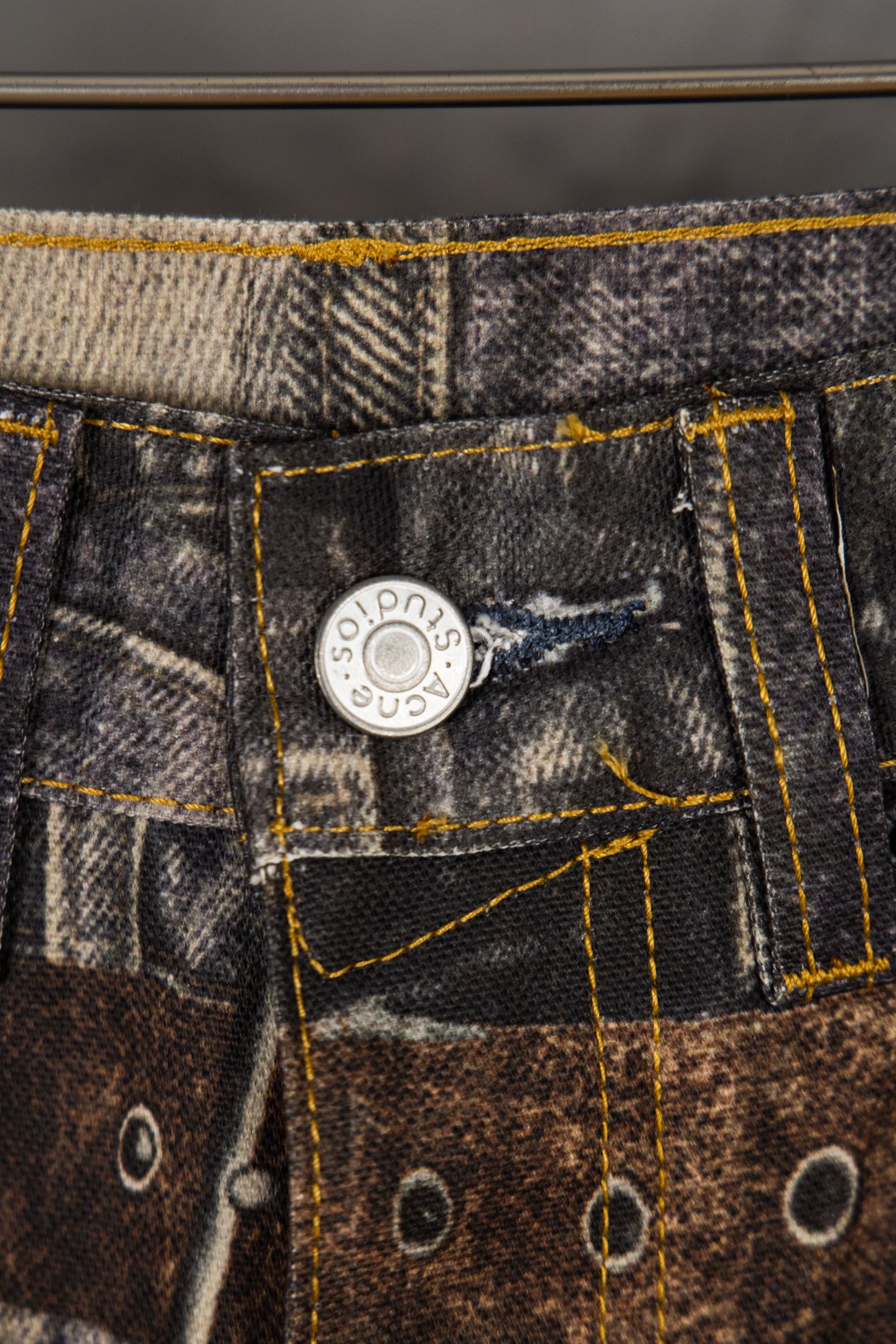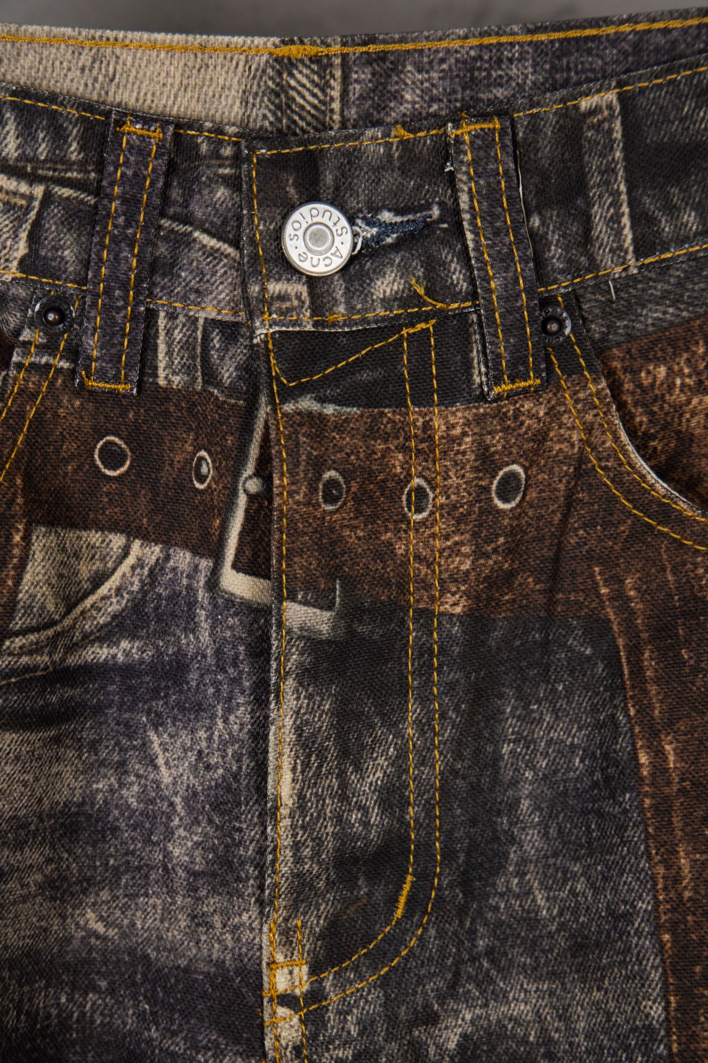 顶级Acne Studios FW25 dirty重工西部错视喷墨仿旧排扣效果 3D印花错视纽扣印花宽松牛仔裤男女同款