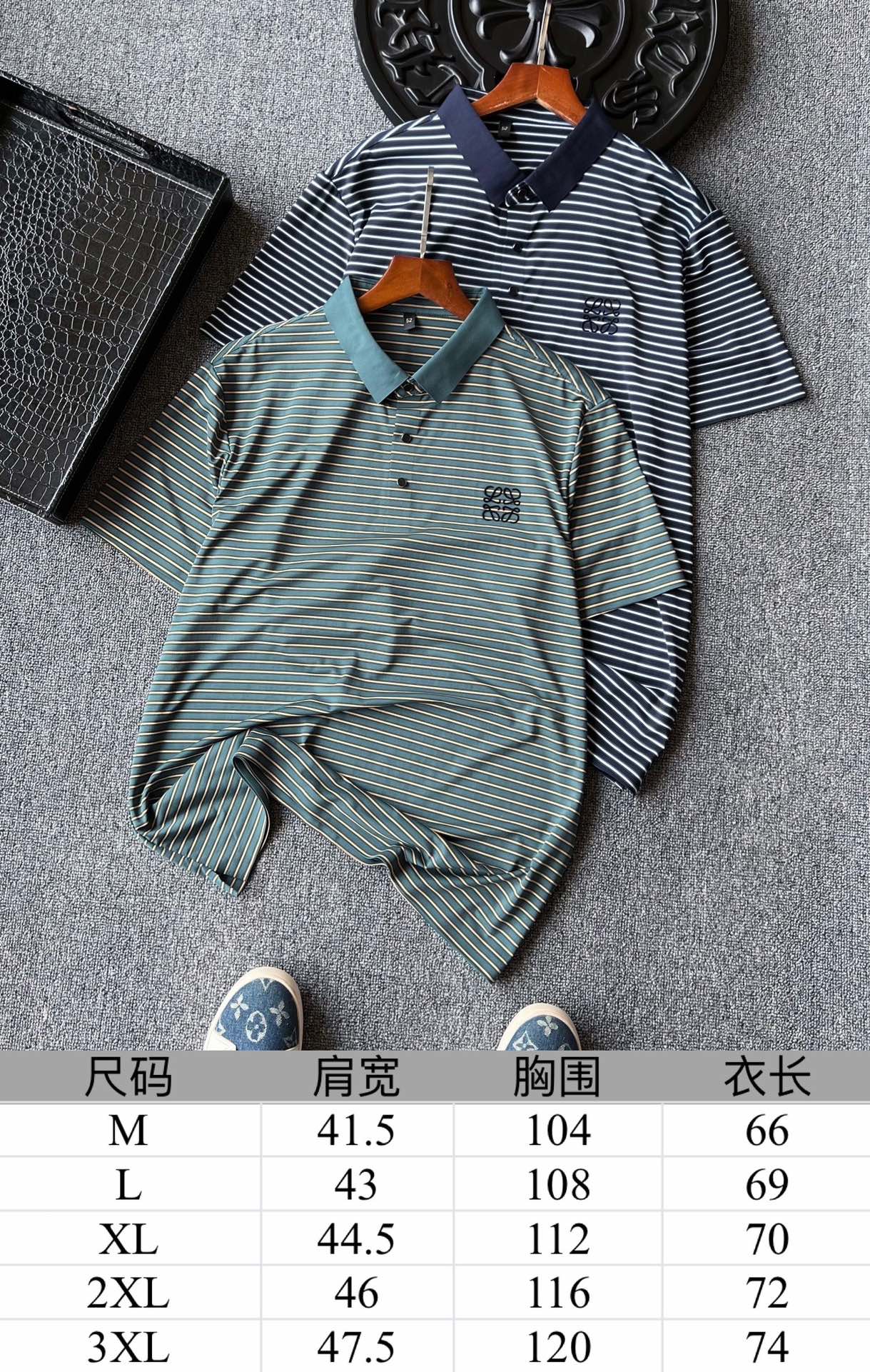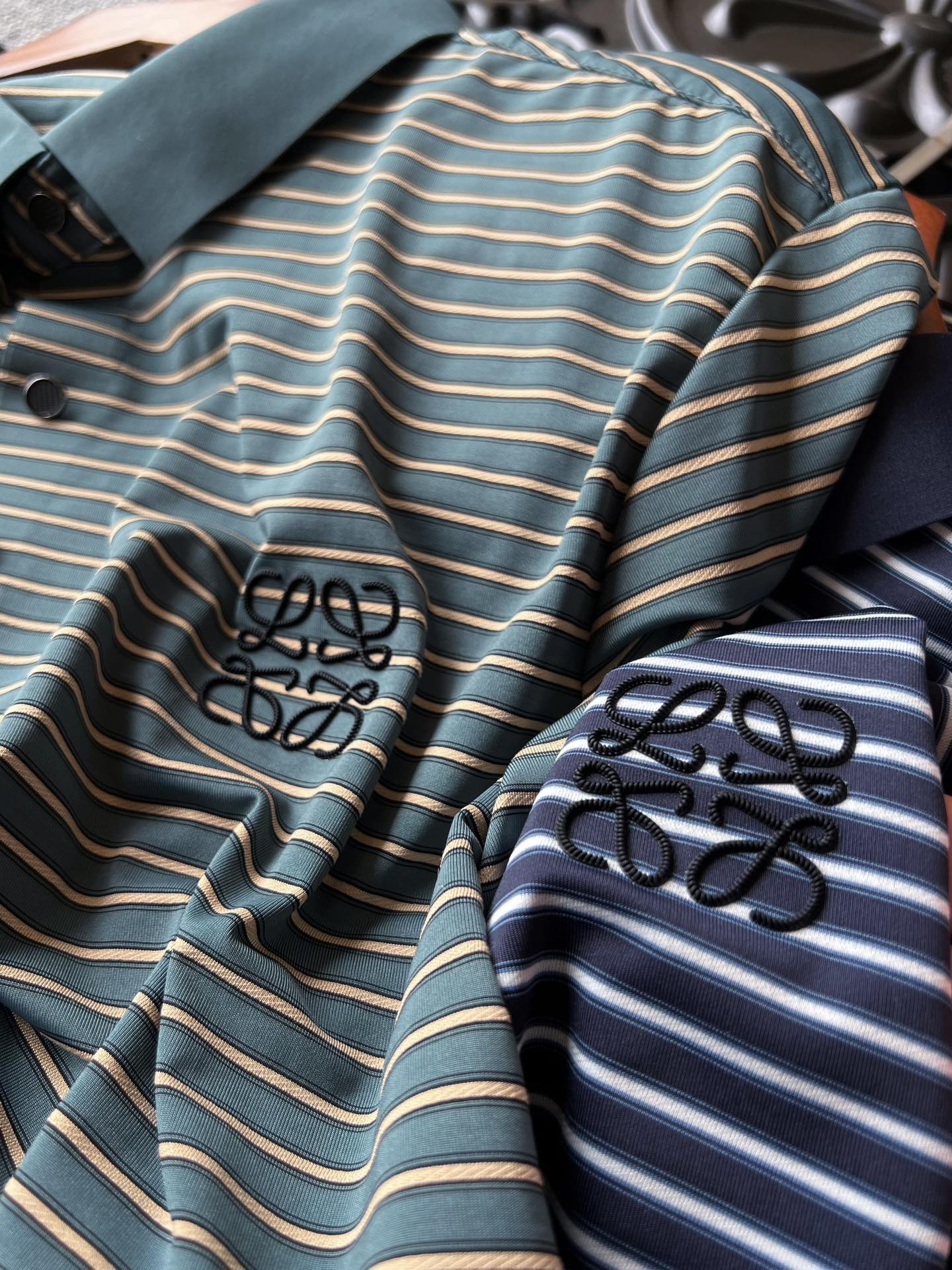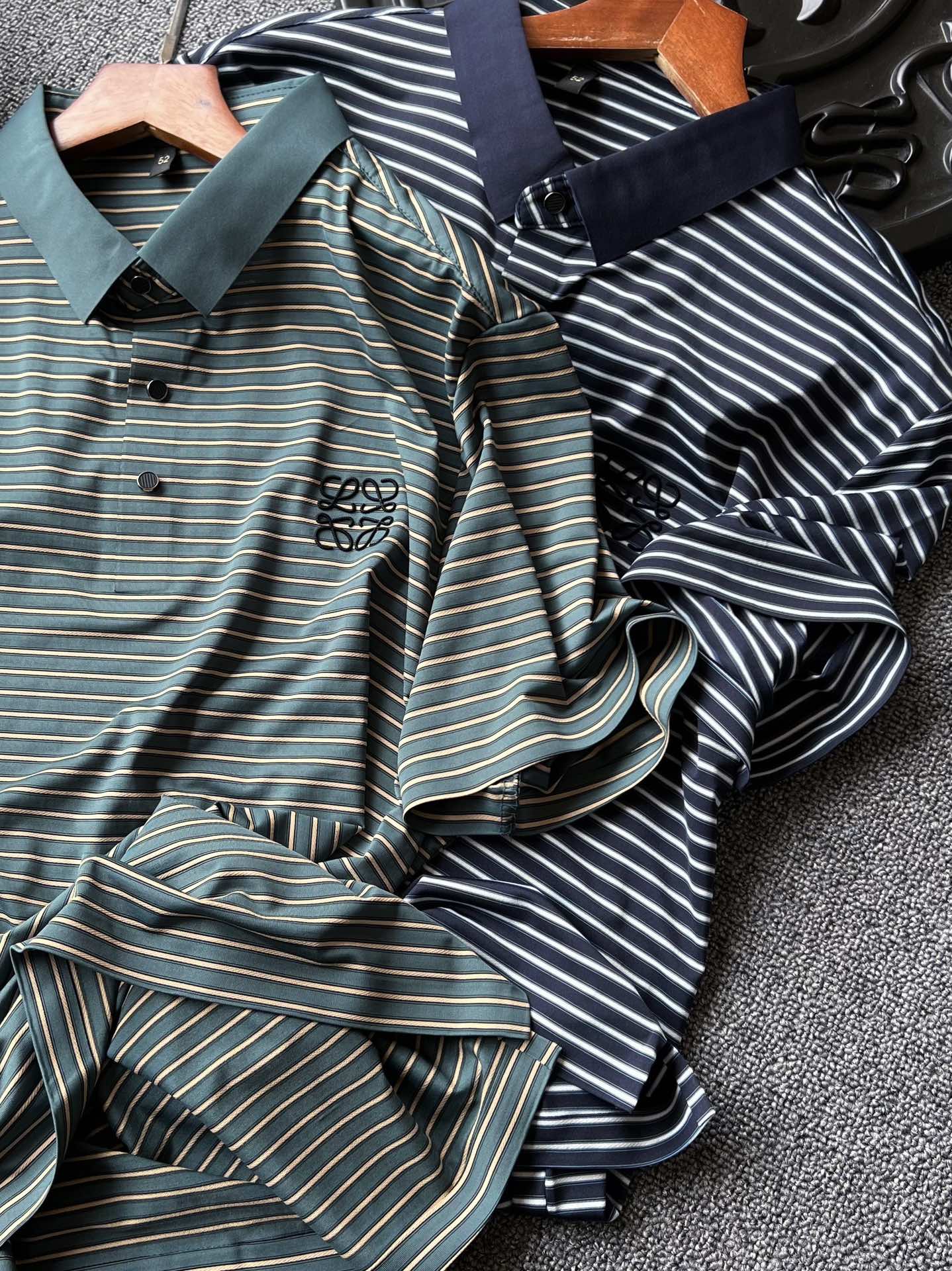 细节细节再细节 Loewe家专柜新品色织冰氧锦棉短袖Polo衫 特调稀缺的绿黄和兰白双配色特别精致 胸前3D浮雕立体进口硅胶罗意威小标 细品表层纹理清晰可见肌理 从领口门襟到双袖下摆全部做了无缝进口压胶锁边 做到永久不变形