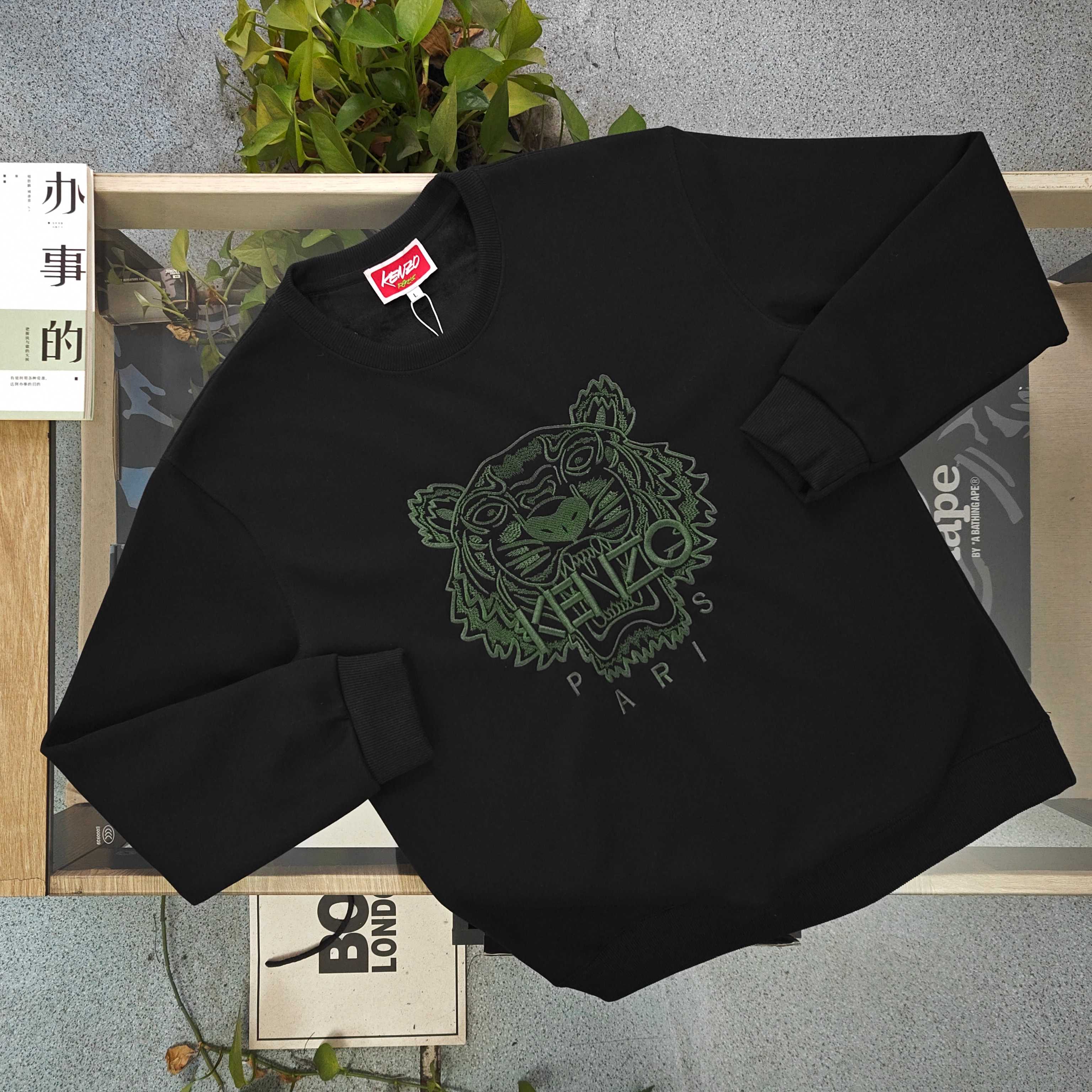 2025新款KENZO高田贤三经典大刺绣绿色老虎头图案logo绣花休闲情侣加绒水貂绒卫衣 高品质 高密度重工刺绣胸前几十万针精工刺绣 细节相当到位 面料依然选用420g的纯棉加厚 超柔水貂绒 保暖透气 舒适吸汗 不是一般的棉绒能比的 做工细腻 这款冬日主打是KENZO PARIS系列的招牌 炸街神器 回头率超高 男女同款