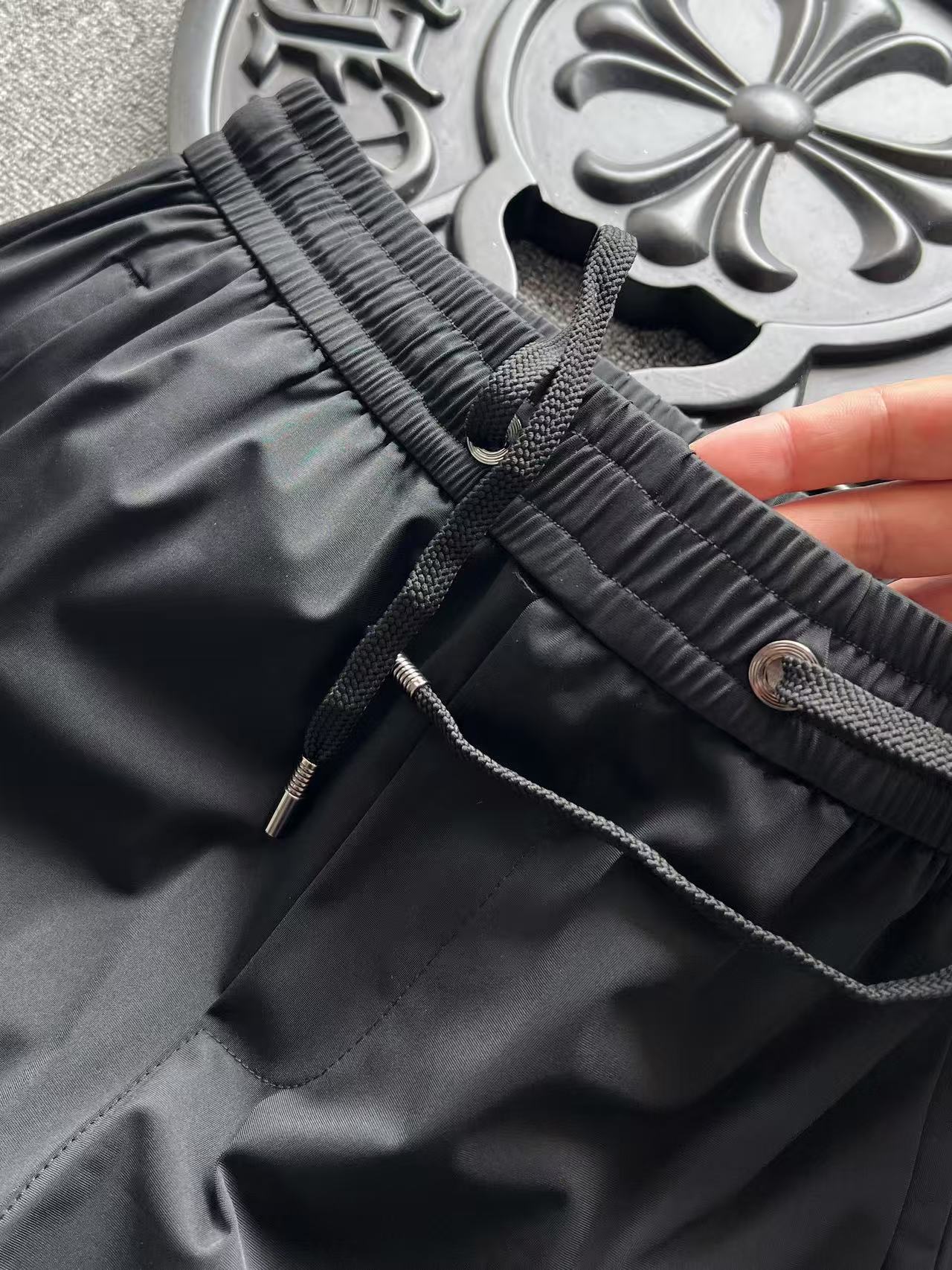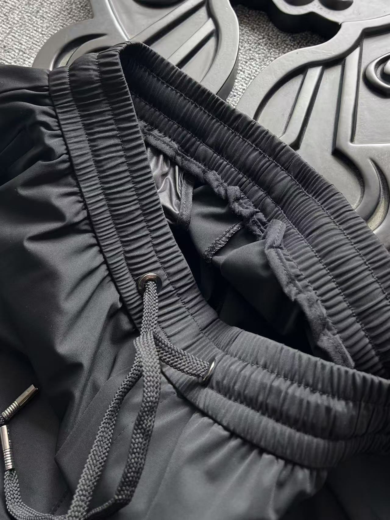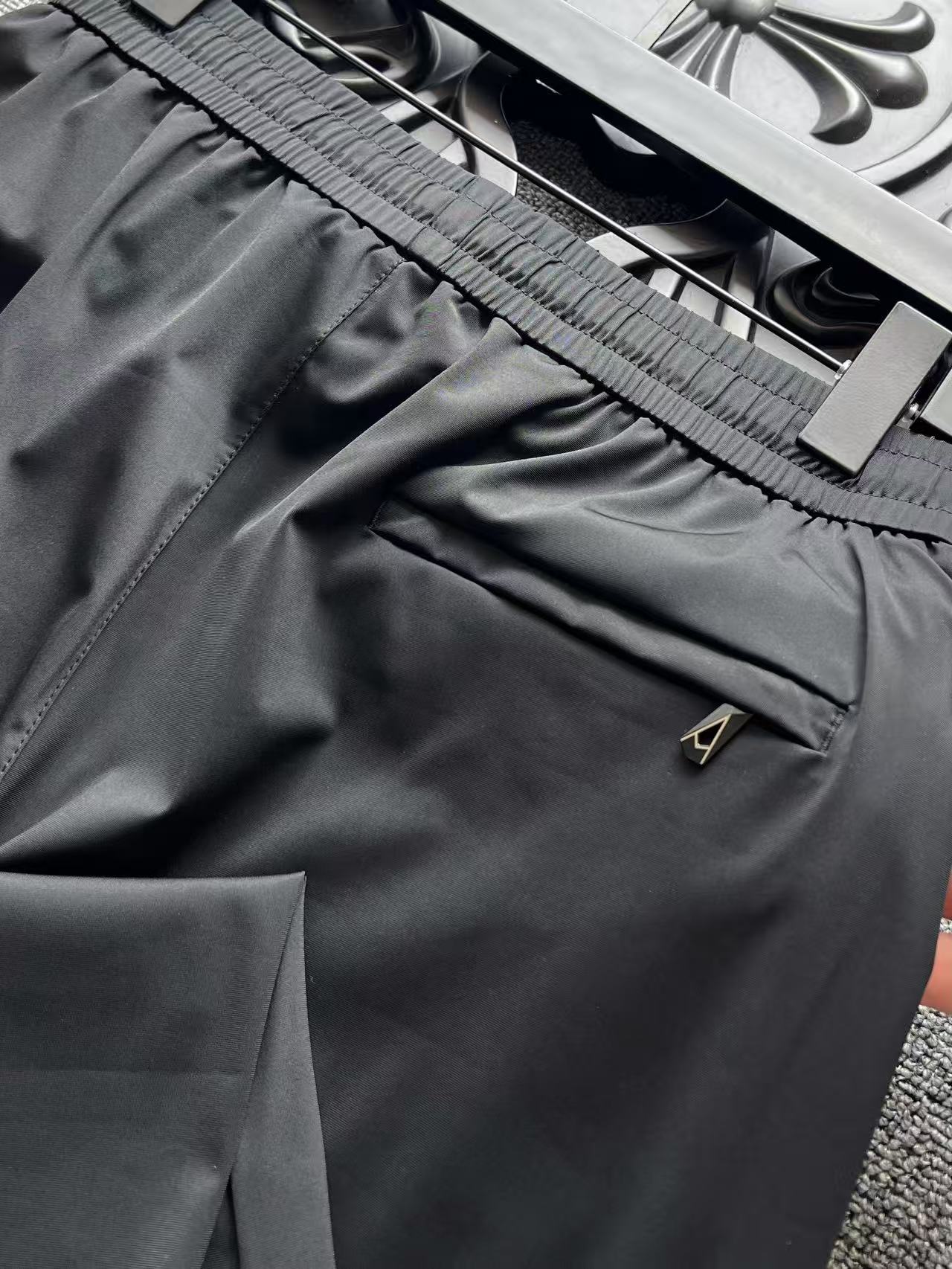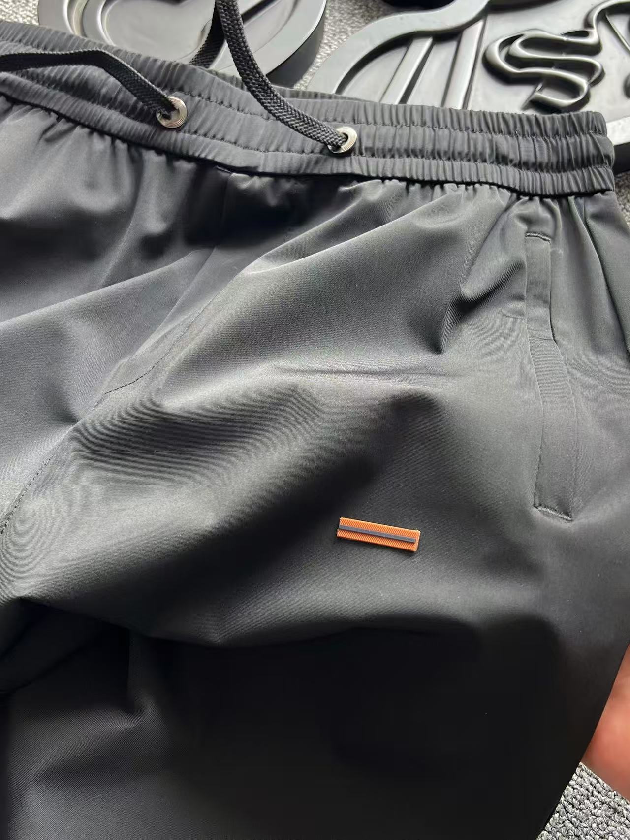 细节细节再细节 杰尼亚家商场新品高端松紧裤 裤前标志性杰尼亚棕黑棕组合浮雕立体硅胶线条 摸起来带有层次感 十分精致 腰口金属抽绳孔细节 双侧以及后内嵌式口袋设计都带有暗拉链设计 保证随身携带手机等不丢失