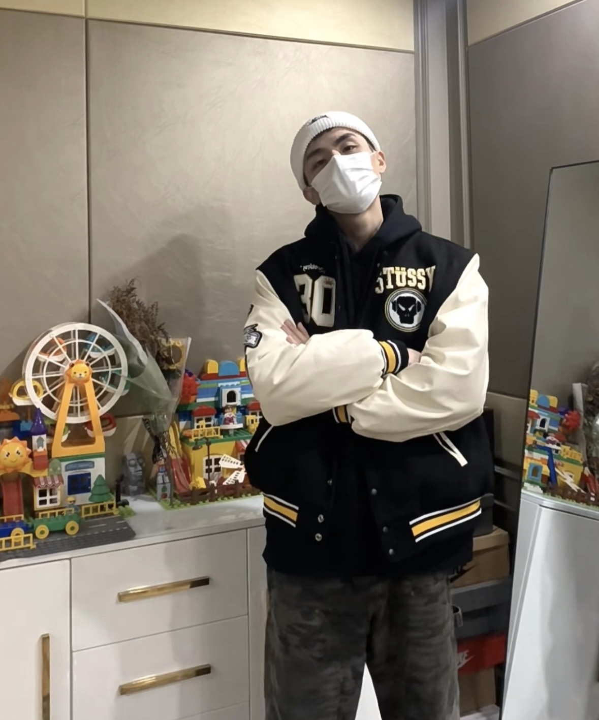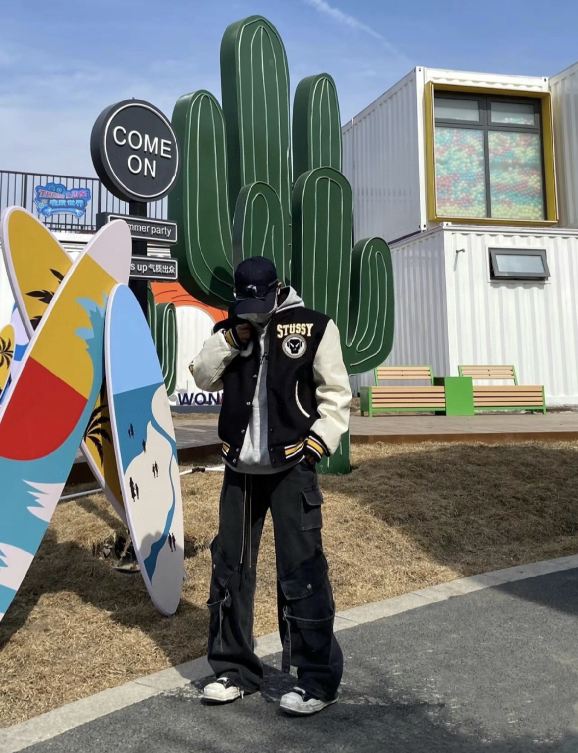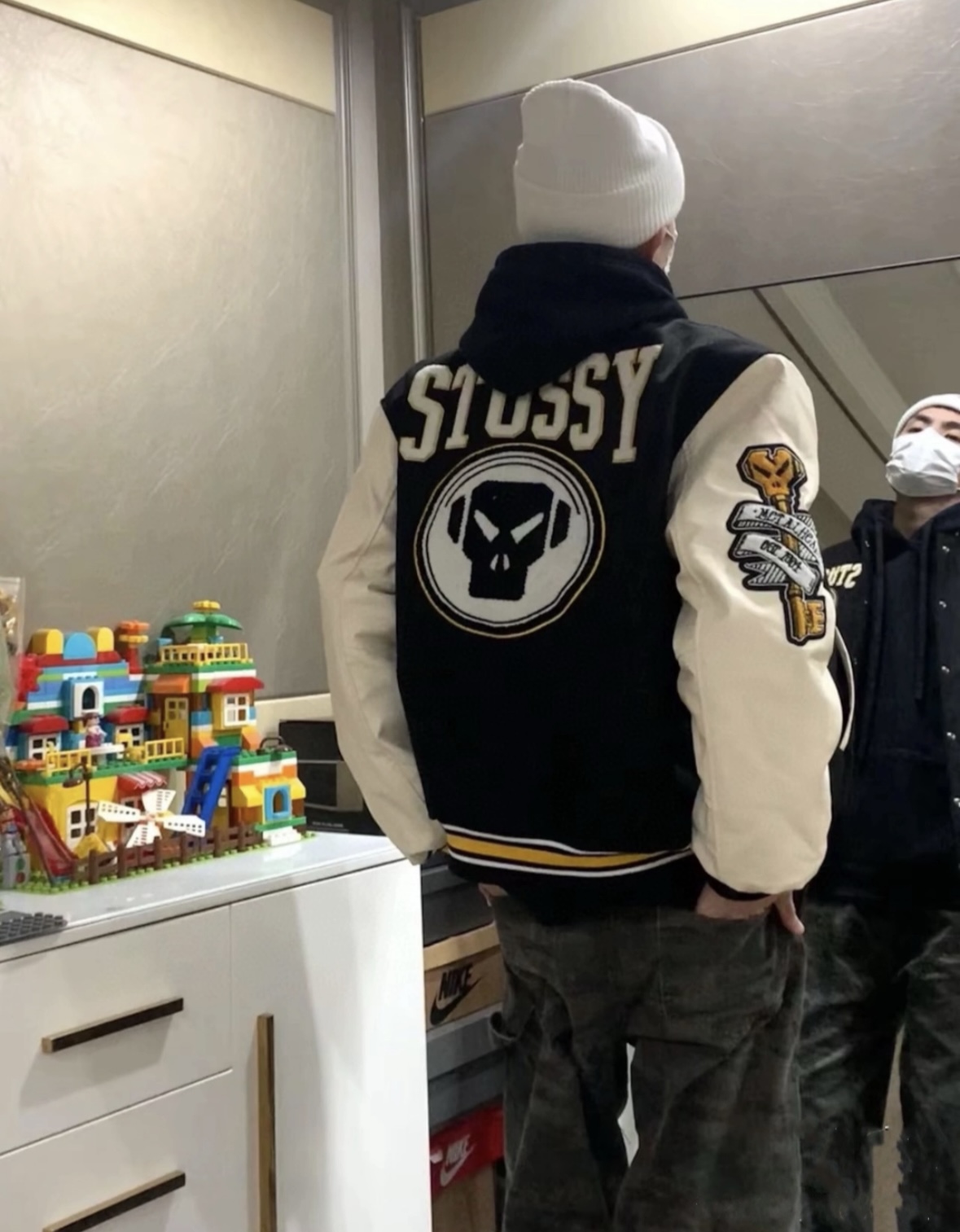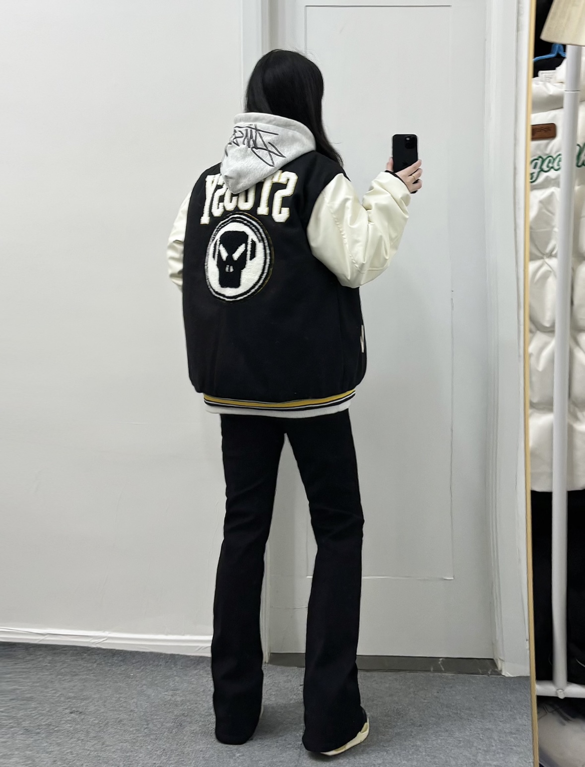 加厚棉服版本 薄款夹克 斯图西毛巾刺绣棒球服 无水印上身效果图