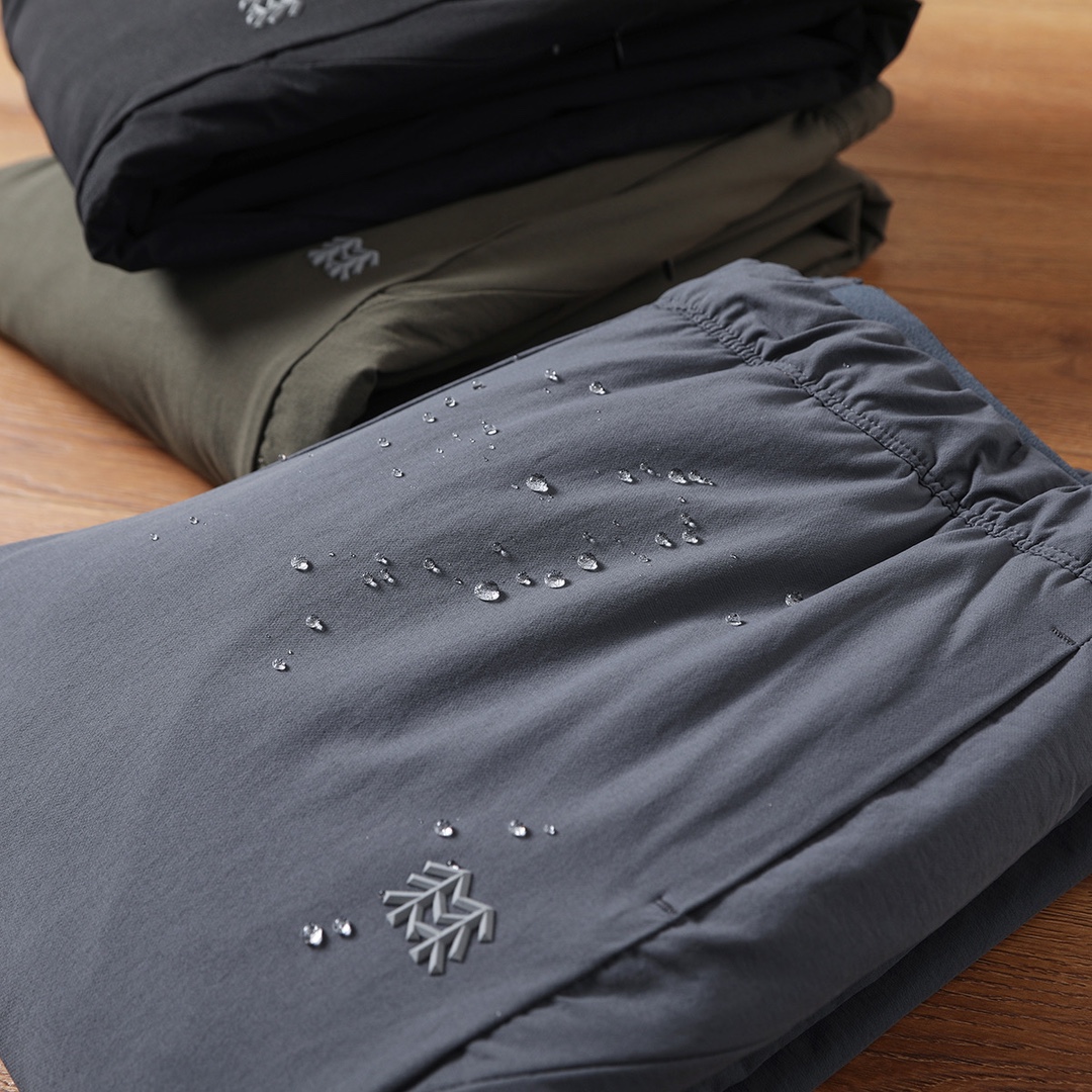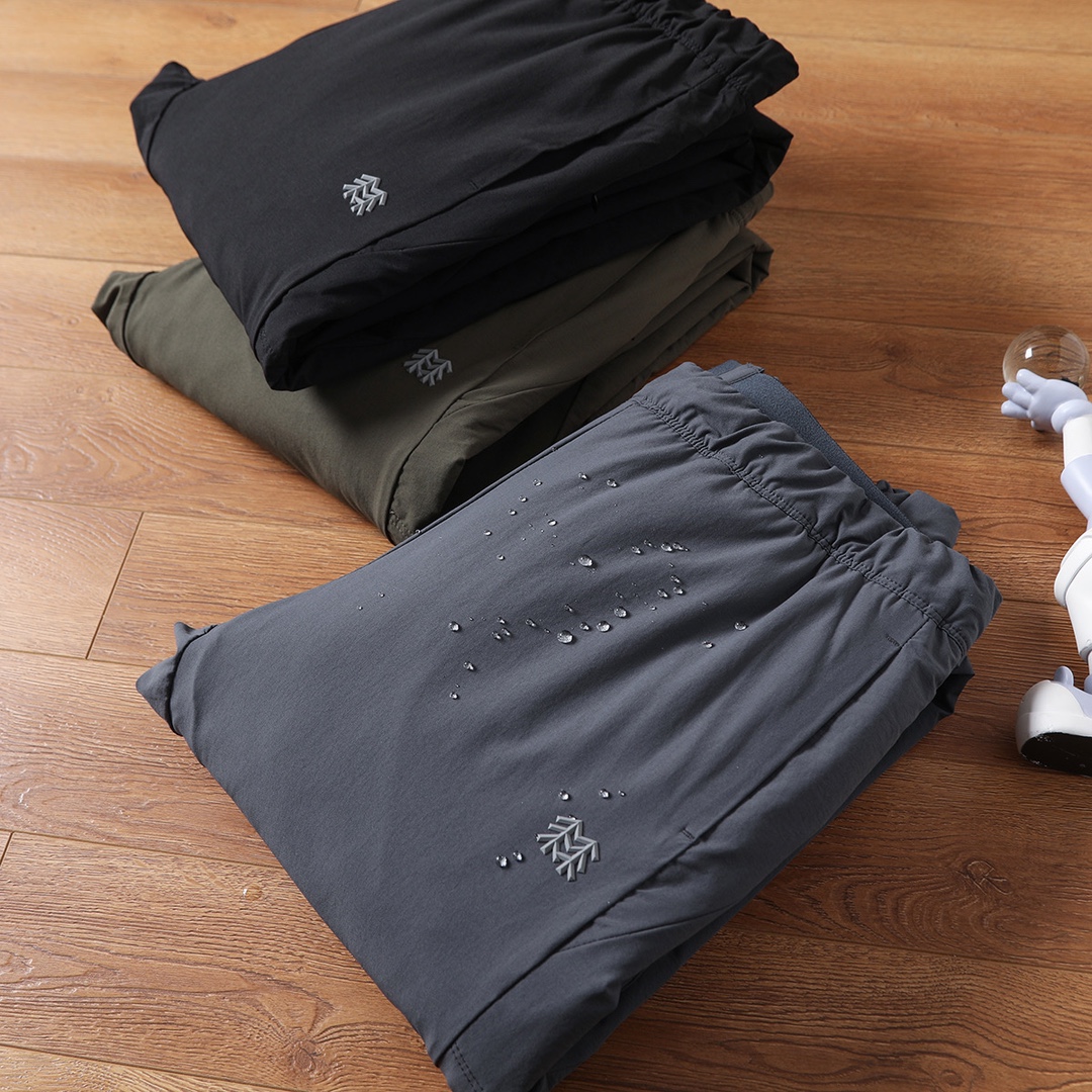 采用高品质运动属性GORE TEX高密梭织面料制成的运动休闲羽绒裤长裤 面料轻质舒爽 同时具有防风透湿与防泼水功能性 90白鸭绒填充 大身SENSITIVE PLUS 梭织面料拼接 四面微弹力 高密防风 反面磨毛细节 更亲肤保暖 同时具有防风与防泼水透气功能 内里THINDOWN高品质羽绒填充 轻盈保暖 不显臃肿