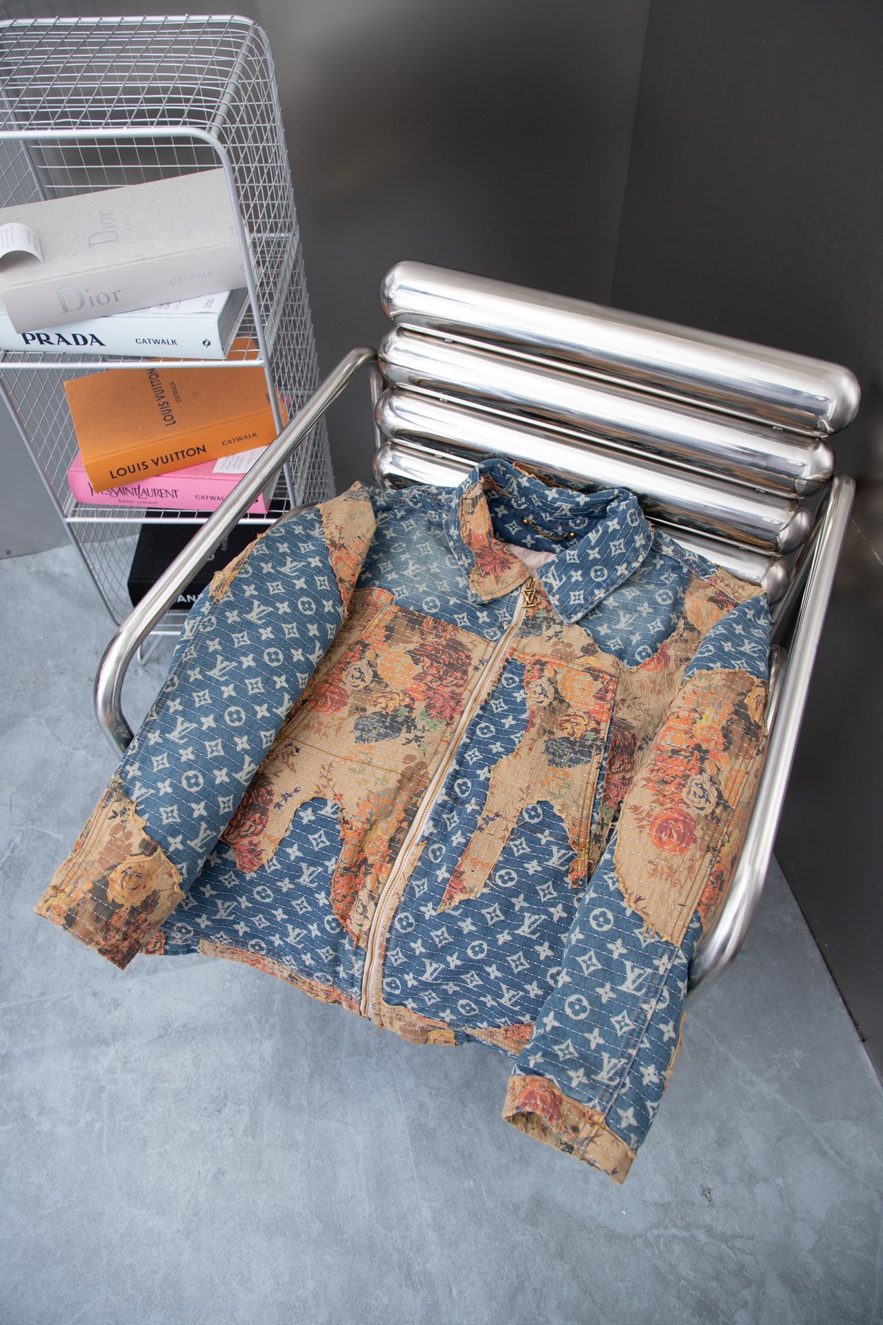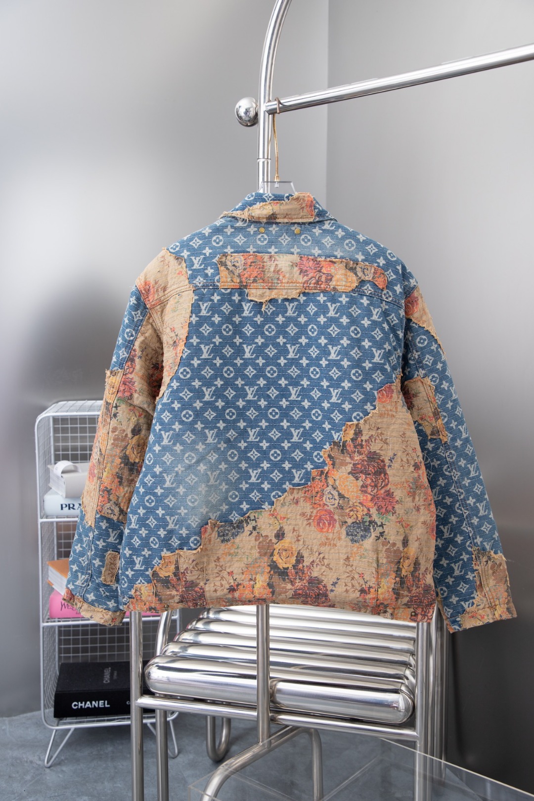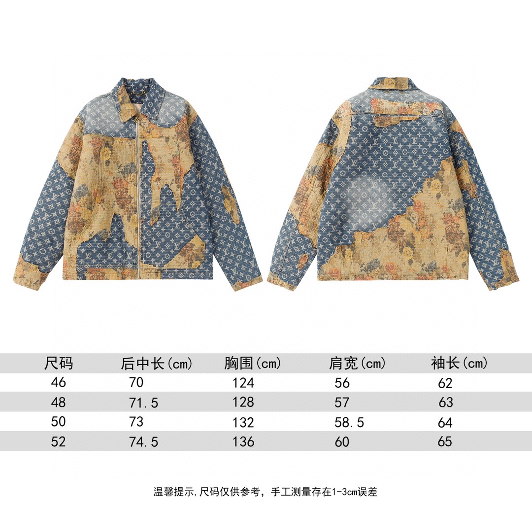 本款工装牛仔夹克呈现仿佛历经沧桑的破坏效果 与高定风格廓形碰撞鲜明对比 丹宁帆布铺陈 Monogram 图案 花卉嵌饰采用日本 Boro 技法手工打造 LV 拉链头完善细节 内里夹棉标准版型