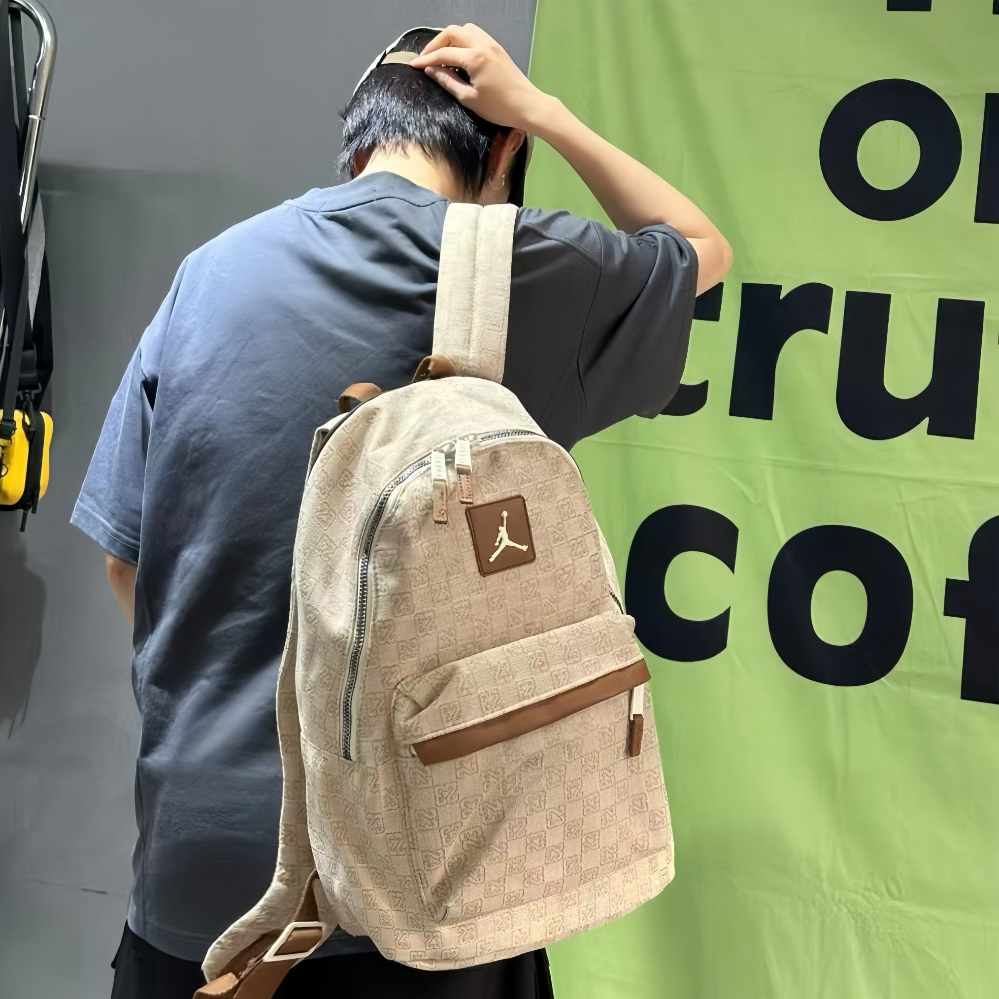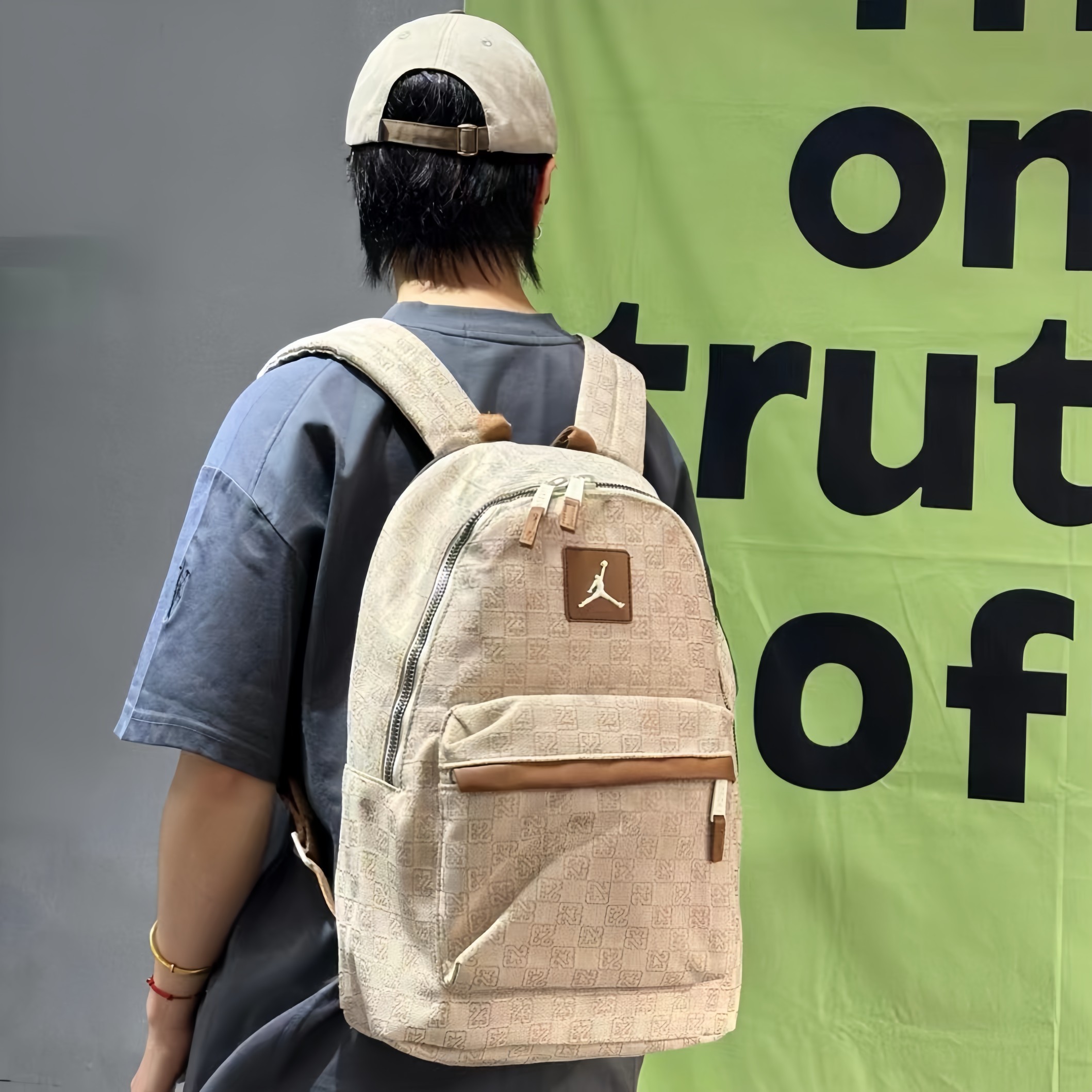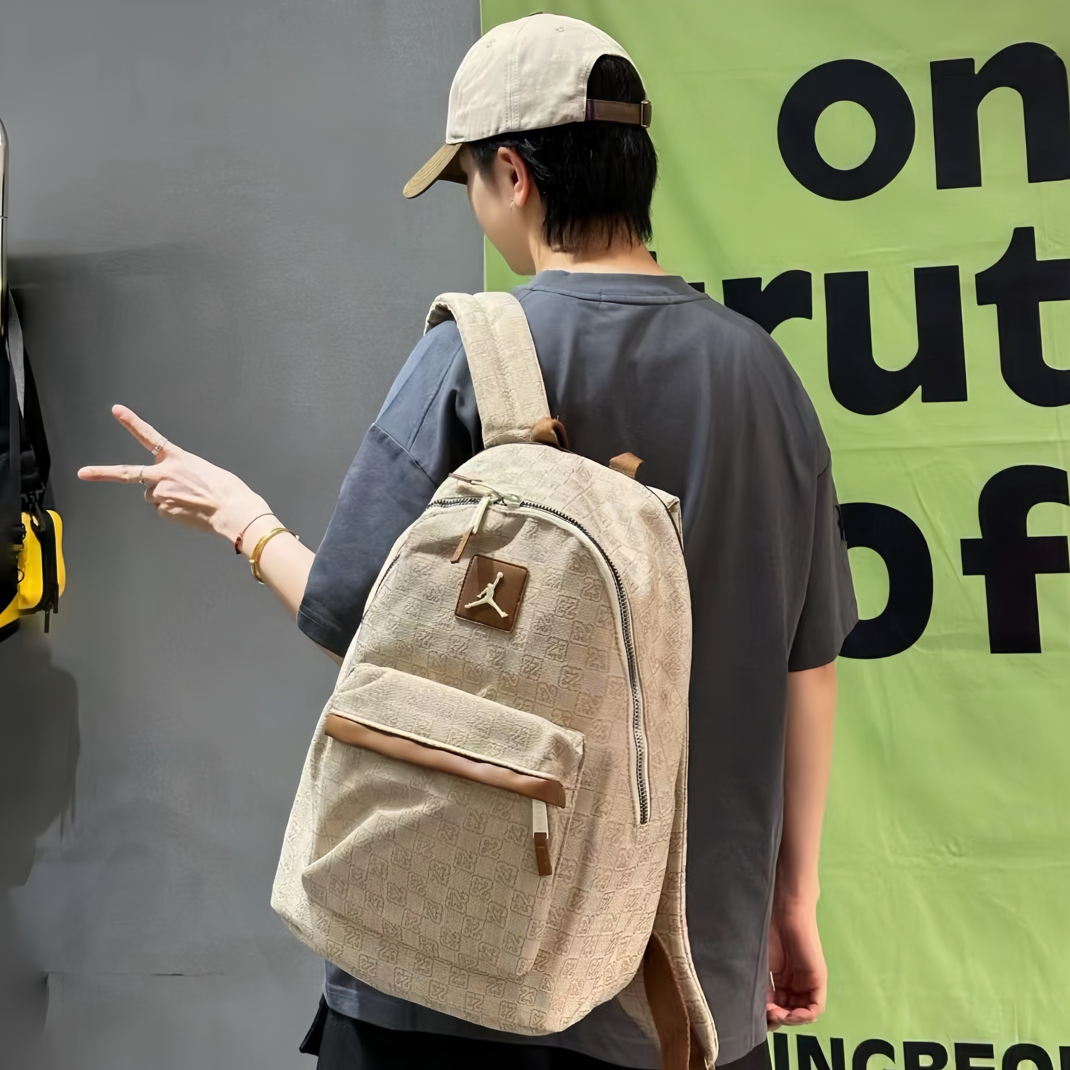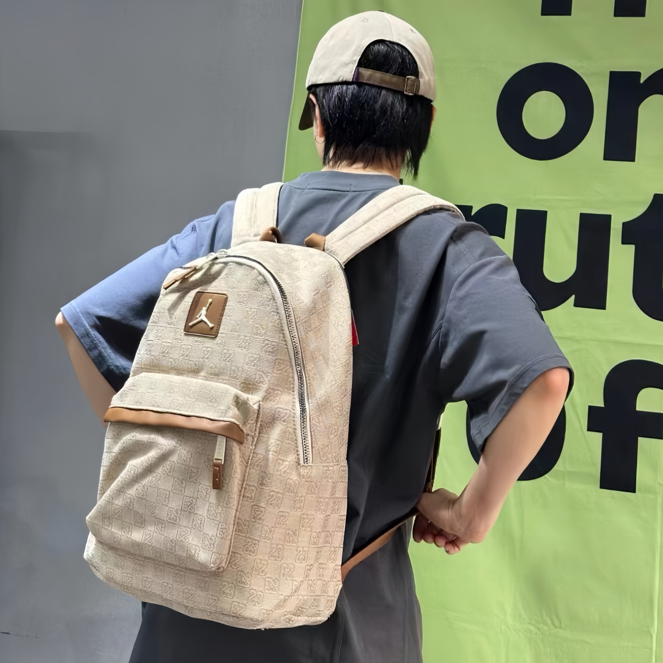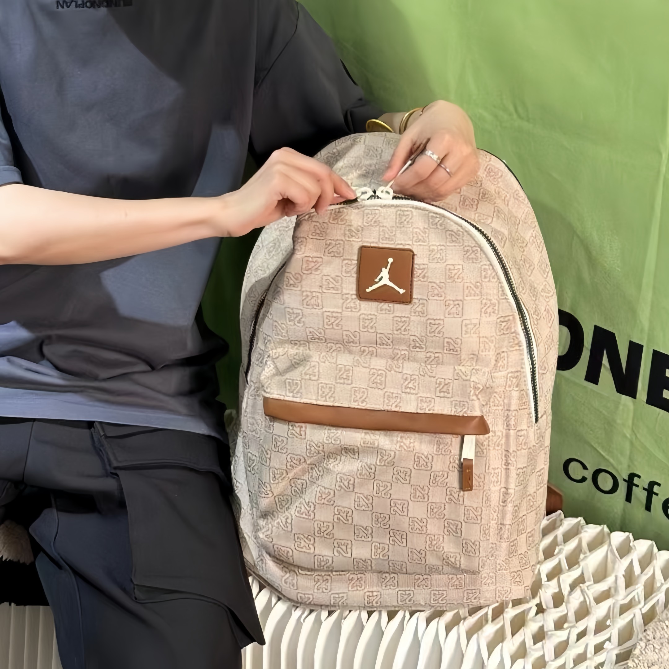 AJ乔丹老花帆布满印双肩包单肩包学生书包男女同款