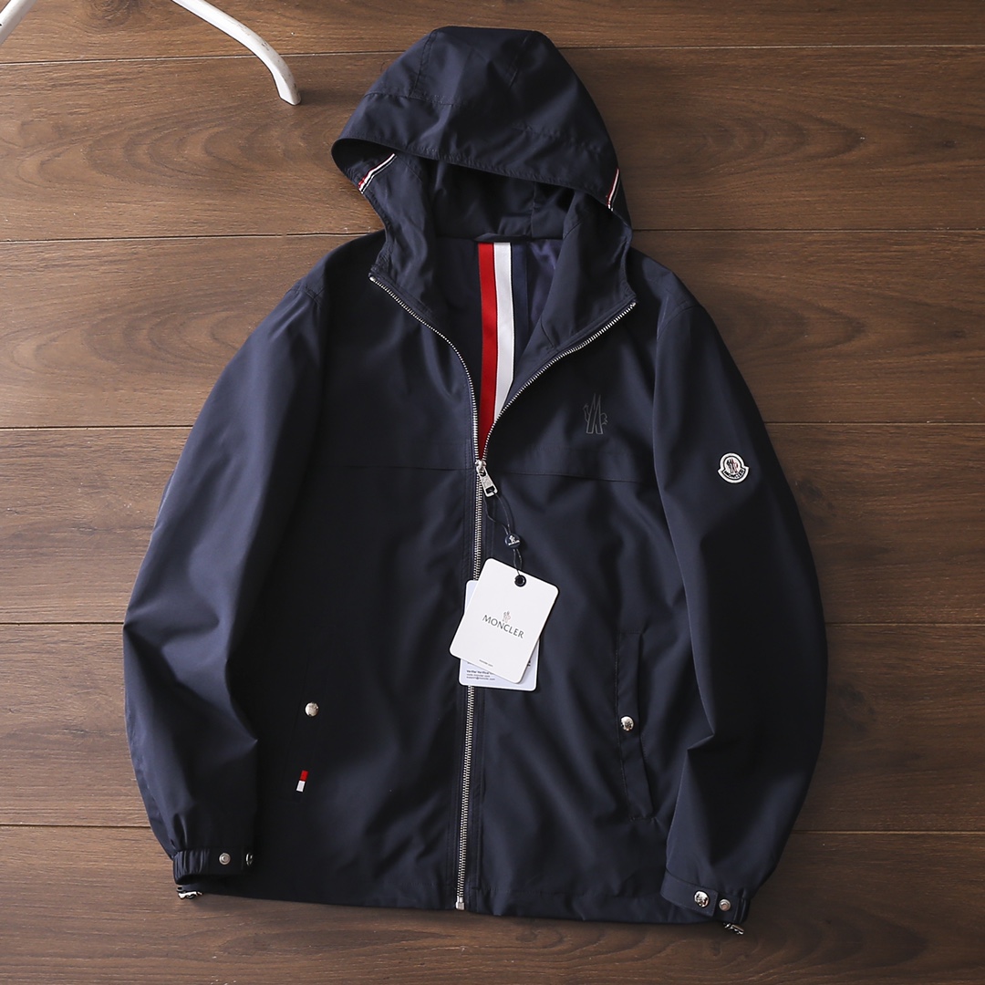 严选好货 蒙口Moncler新款男士连帽夹克外套 公司订单货源 客供再生尼龙面料 内里内衬 舒适耐穿 立体裁剪版型 袖臂小标徽章点缀 两侧盖袋口袋 按扣松紧防风袖口 内里织带拉条 原版五金辅料 做工细节都无可挑剔 上身效果一级棒 喜欢的兄弟千万不要错过 颜色 黑色 藏青色 尺码 L一4XL