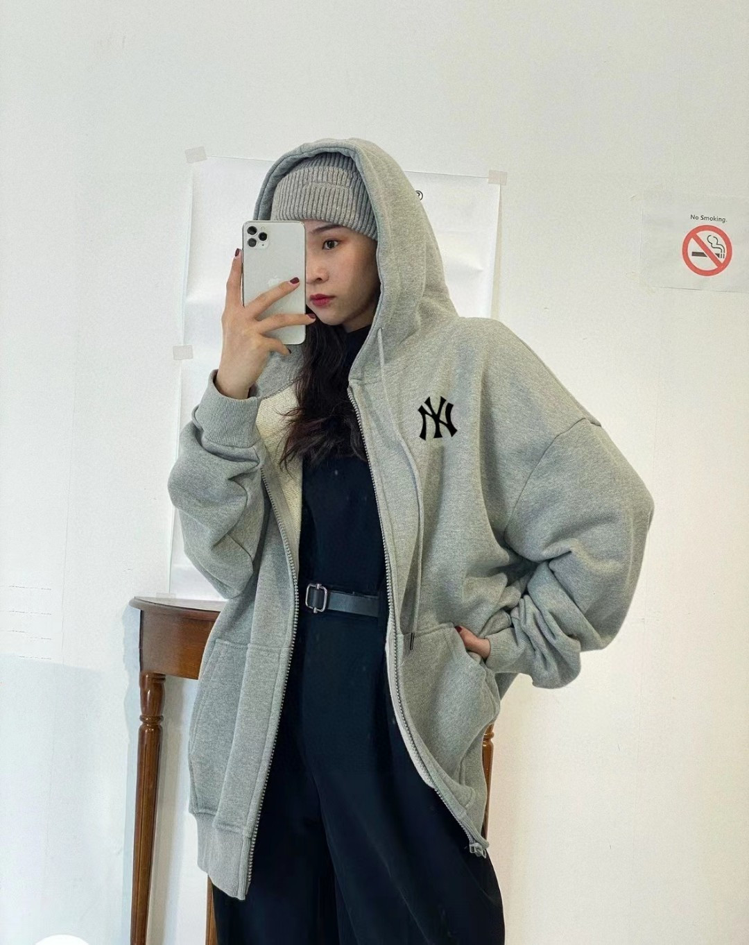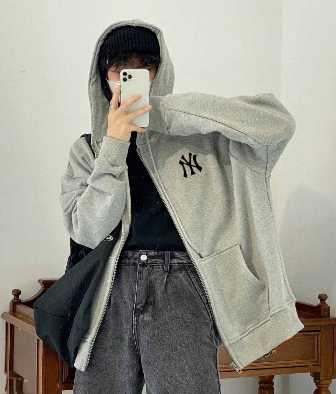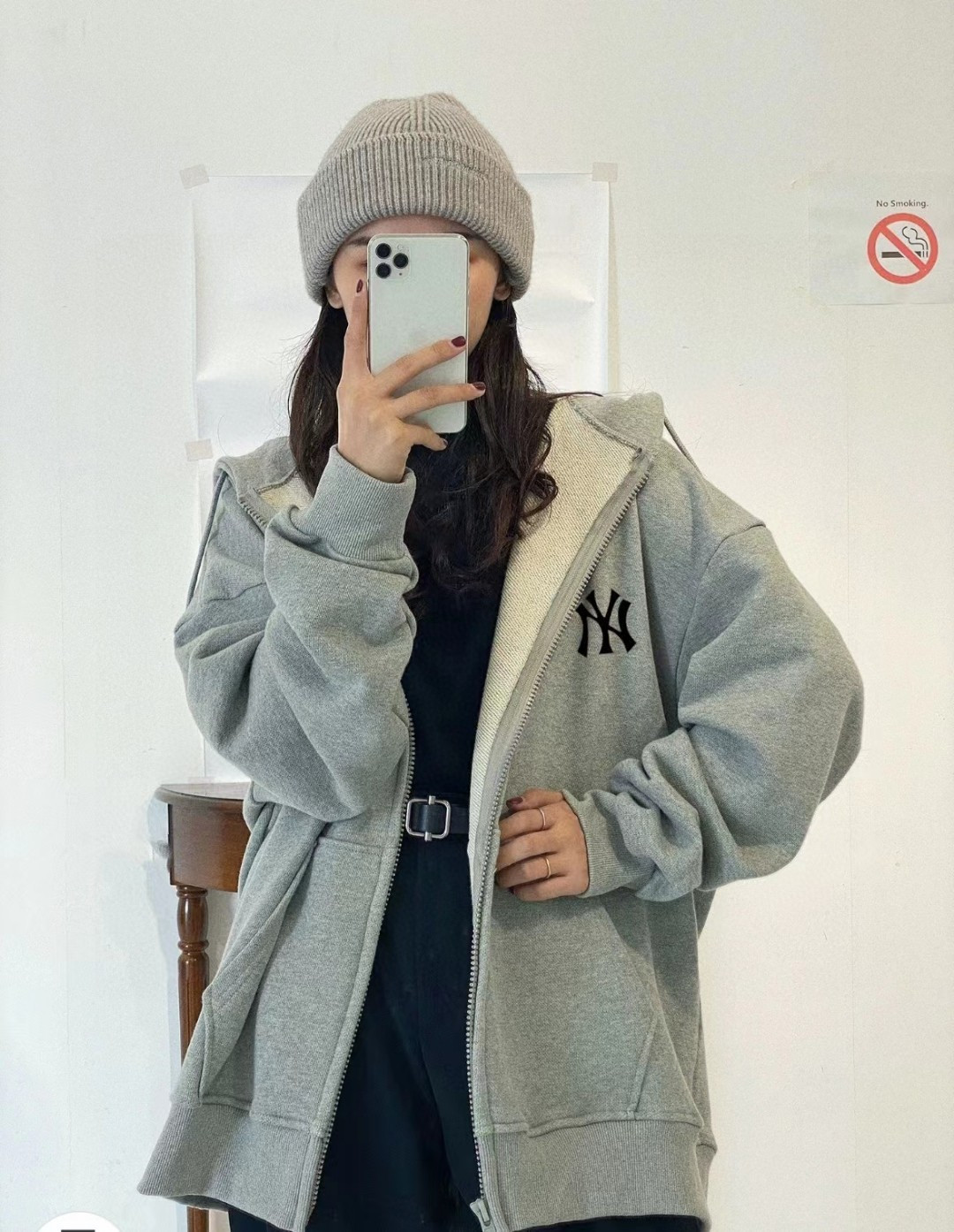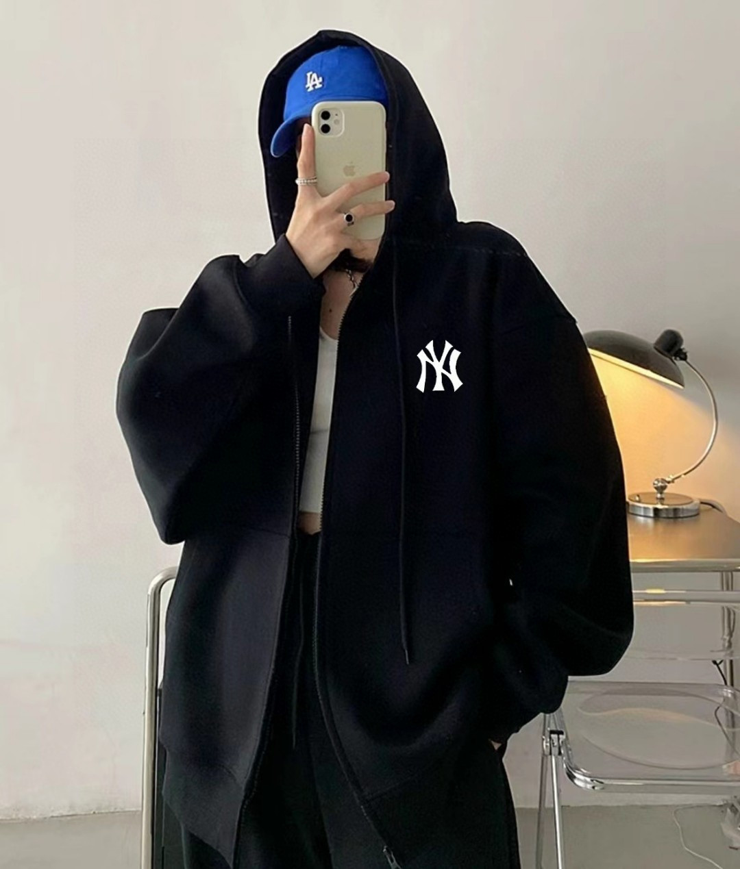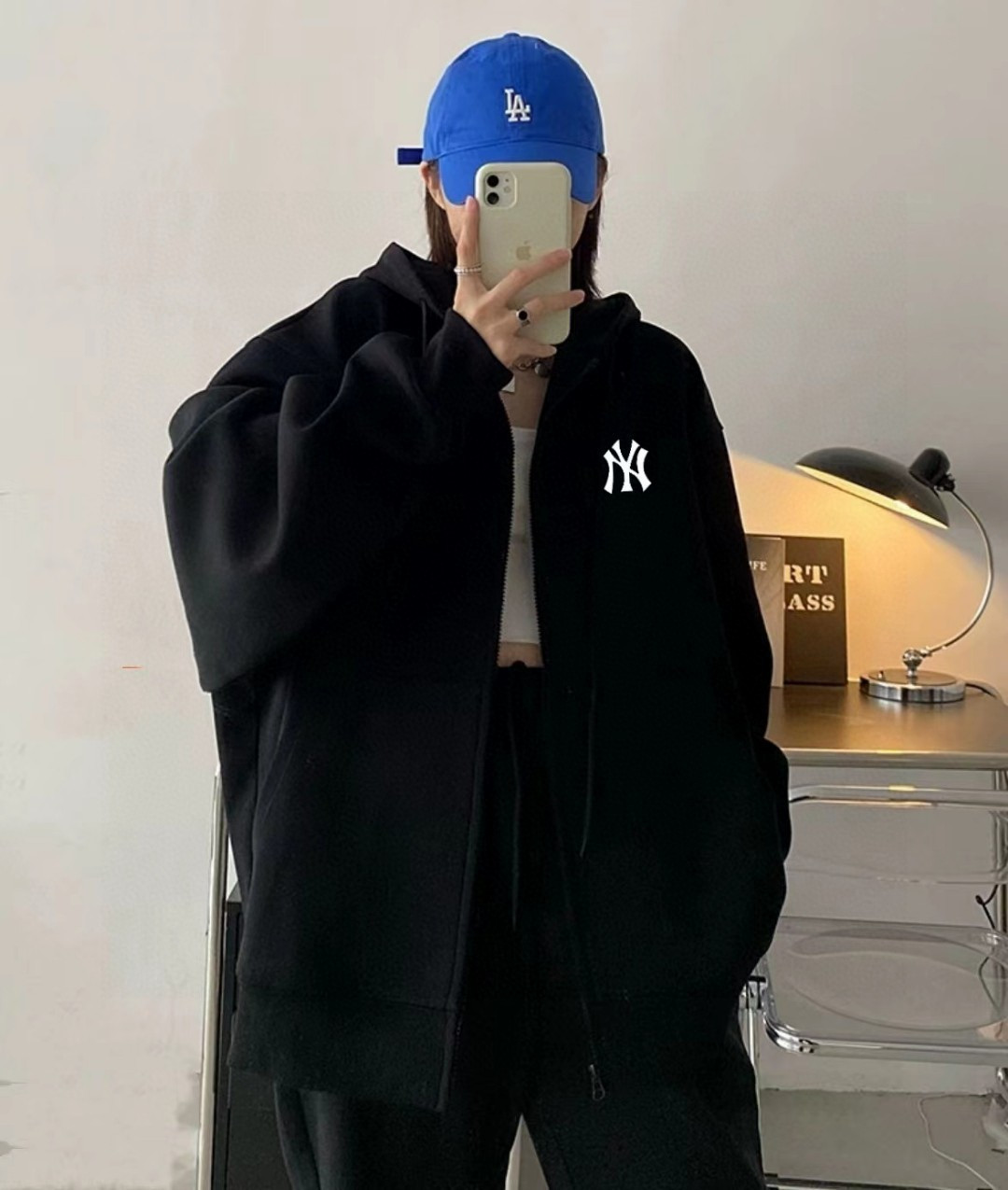 售后年后 加绒版本 原版质量MLB LA洋基队刺绣基础款落肩宽开衫卫衣连帽外套情侣款