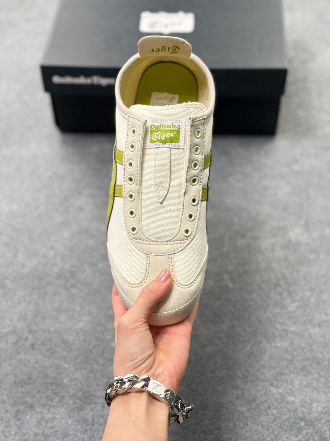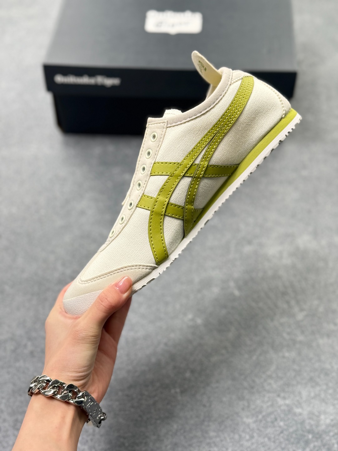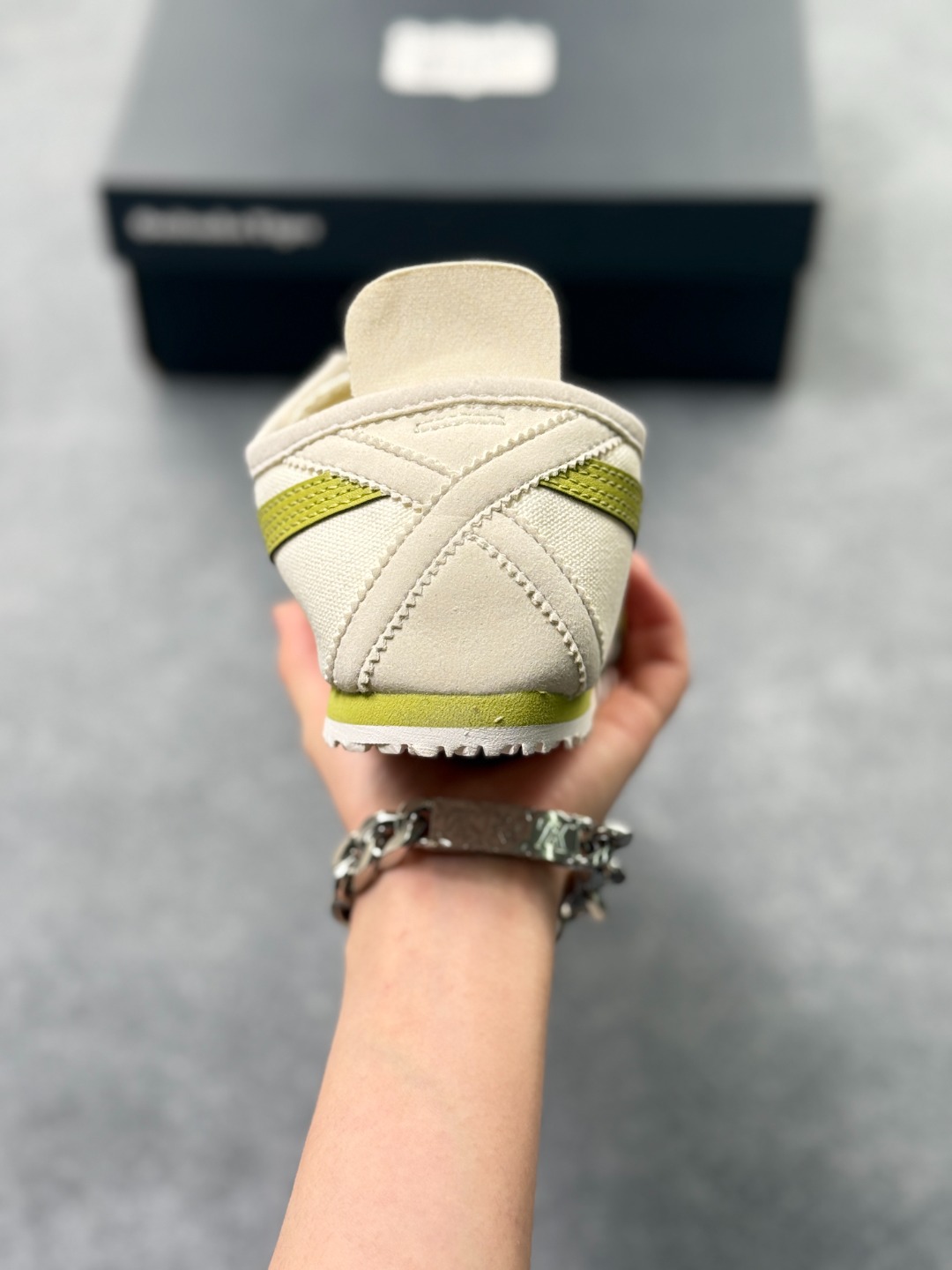 材质与设计 鞋面采用帆布鞋面 部分款式为拼接设计 既保证了透气性 又增强了耐用性 鞋型纤细 基于上世纪60年代的经典跑鞋风格 低帮设计搭配标志性的鬼塚虎条纹 简约时尚 后跟部分通常有X型部件设计 增强稳定性