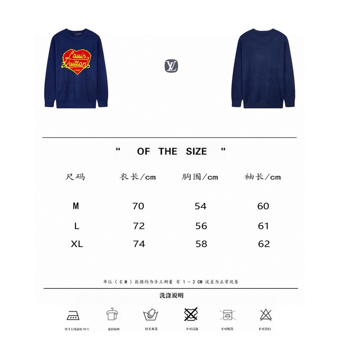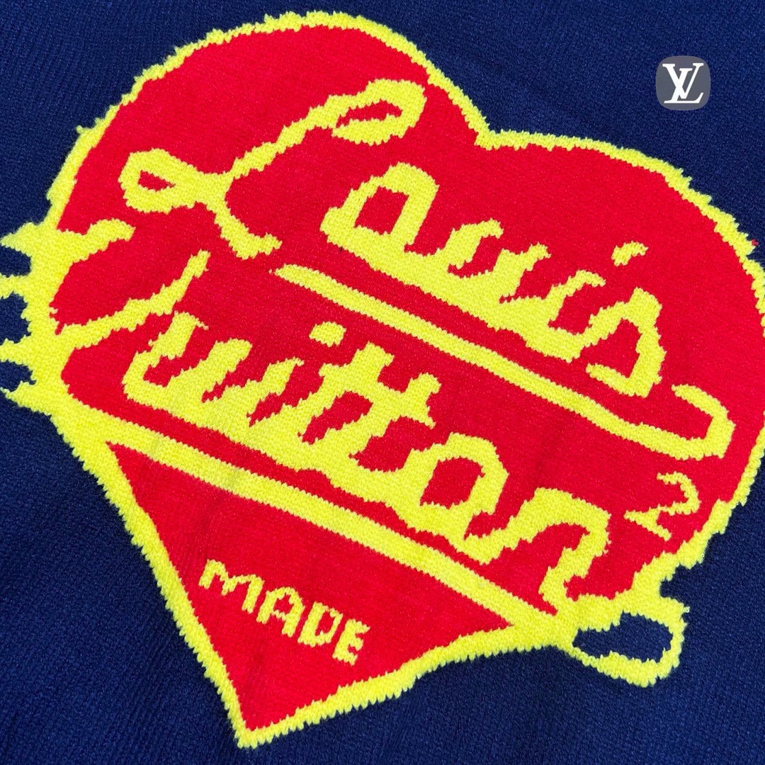 Louis Vuitton 市面唯一正确版本 克重超足 Lv路易威登 x NIGO联名合作款爱心提花休闲圆领毛衣购入原版开模打造 全套定制辅料 细节决定成败
