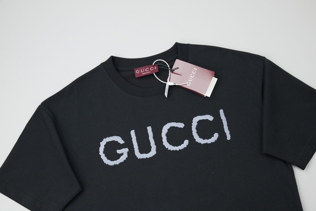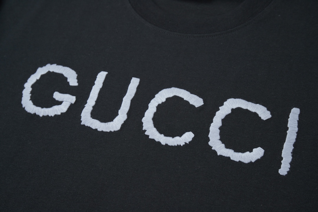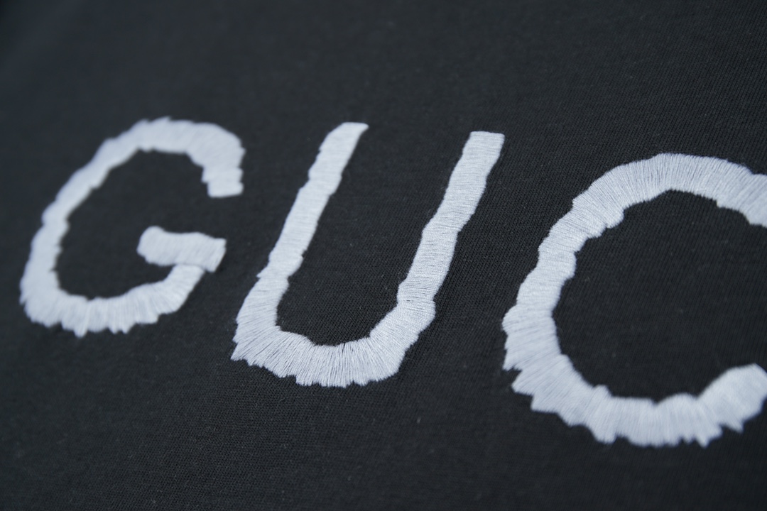 高版本 GU CI 2025 SS新款短袖 Gu字母稀线绣花短袖 轻奢主义 男女日常通勤穿搭必备单品 正确版本 欢迎对比 详细特征 采用320克100 纯棉双纱面料 同缸定染特种加粗32支双股1X1螺纹环保活性染 进口田岛机器稀线绣花GU字母logo 双针车线跨缝工艺 原版主唛水洗吊牌防潮纸包装 颜色 白色 黑色 尺码 S M L XL